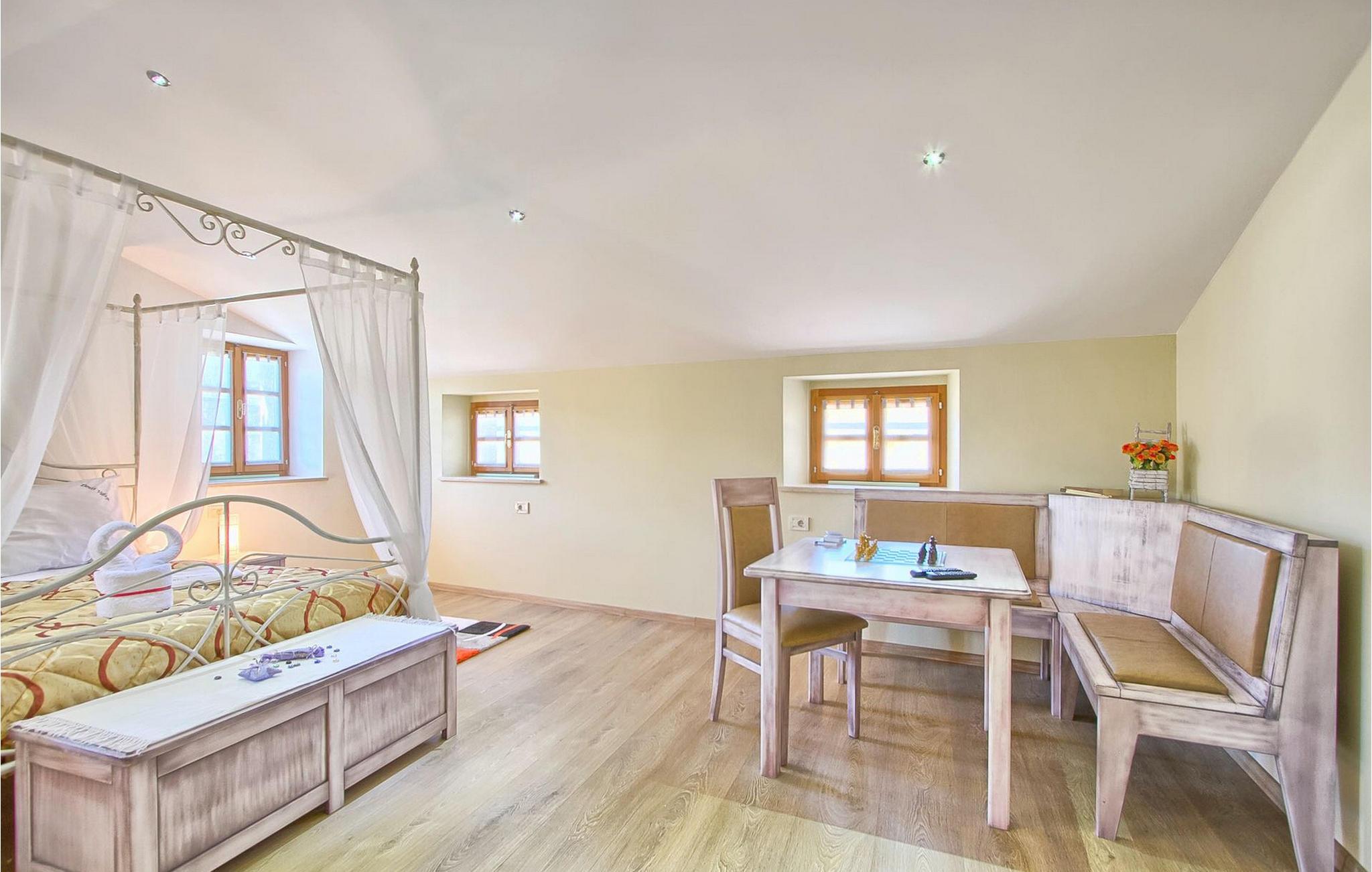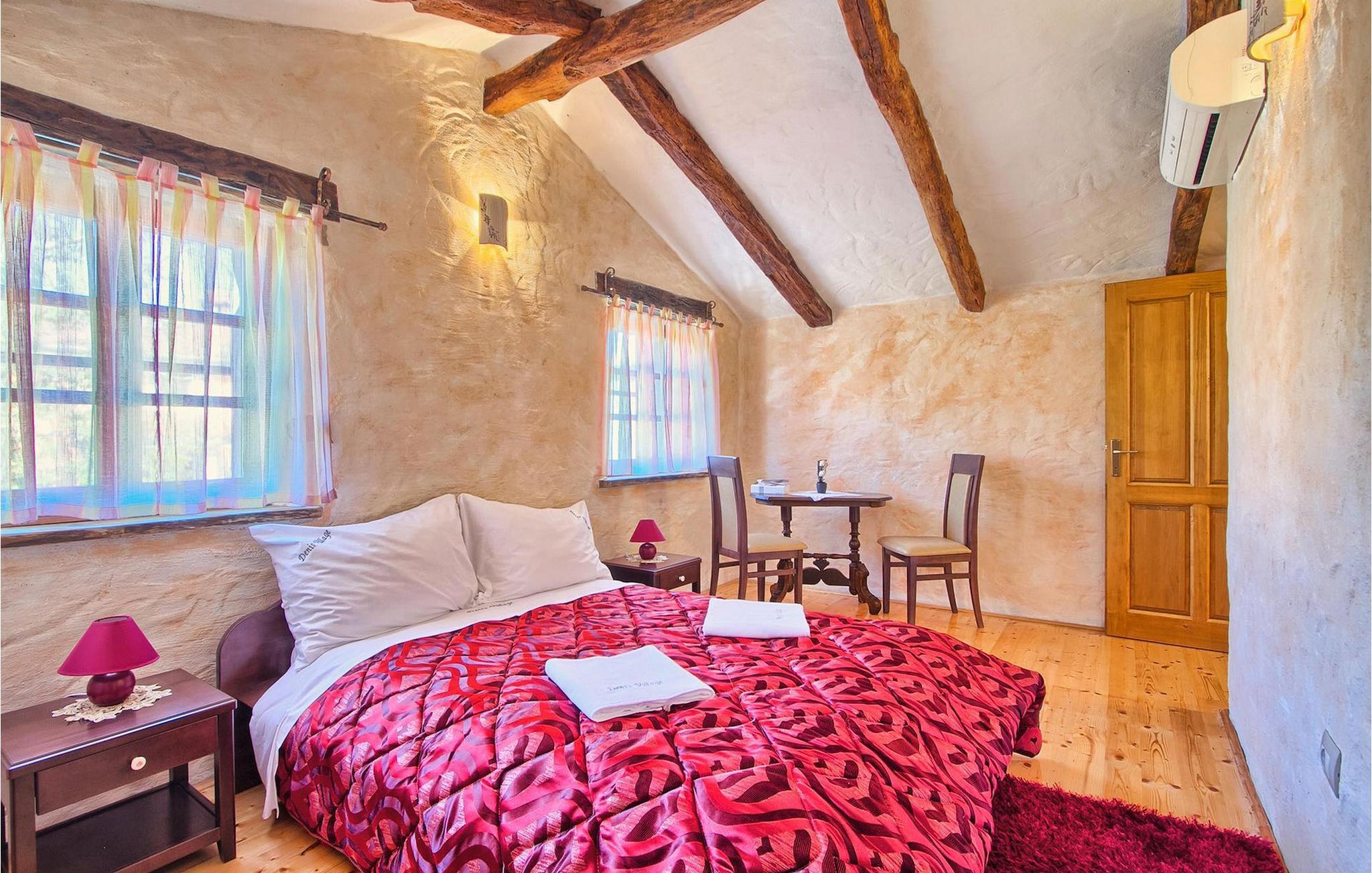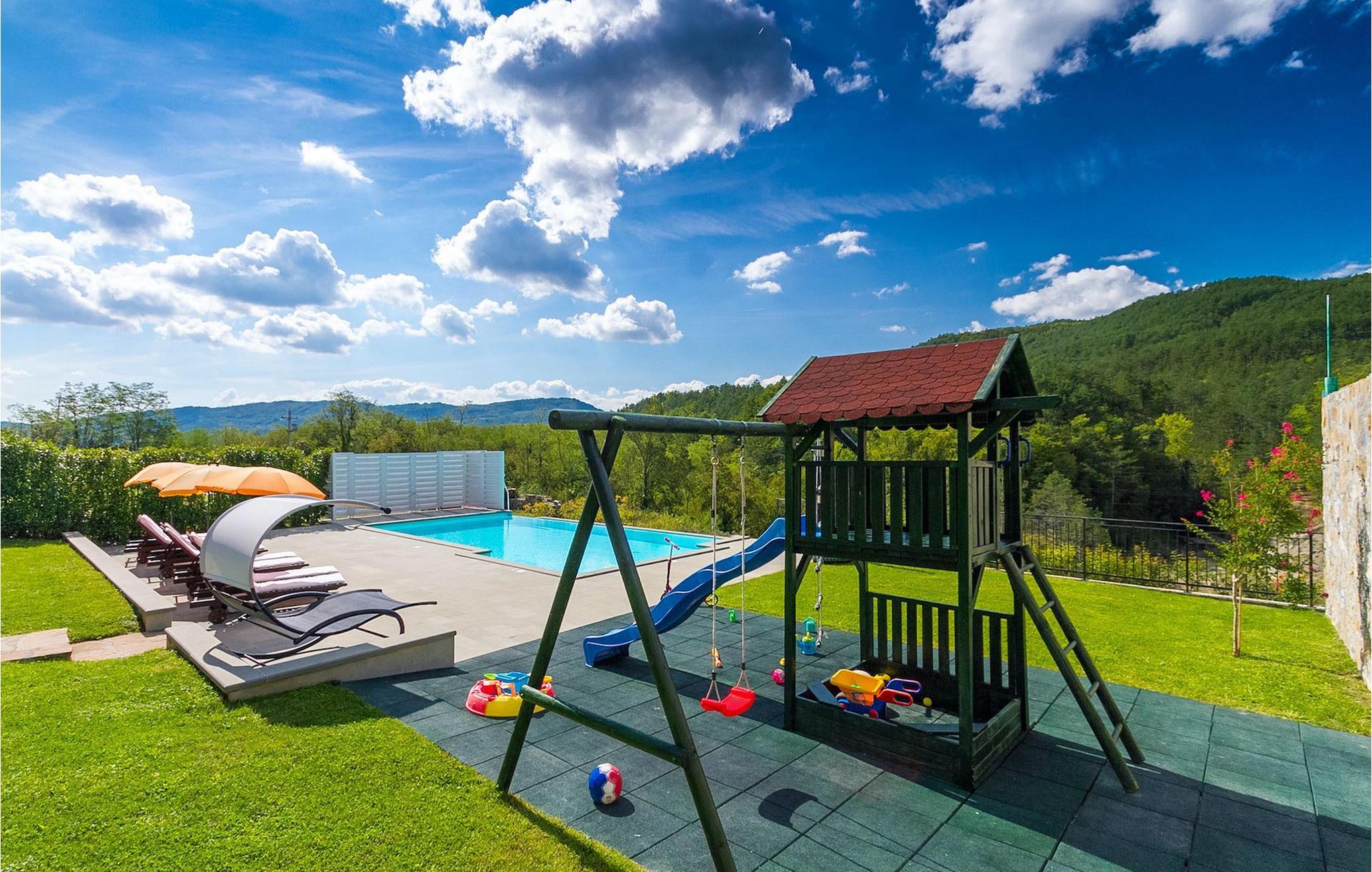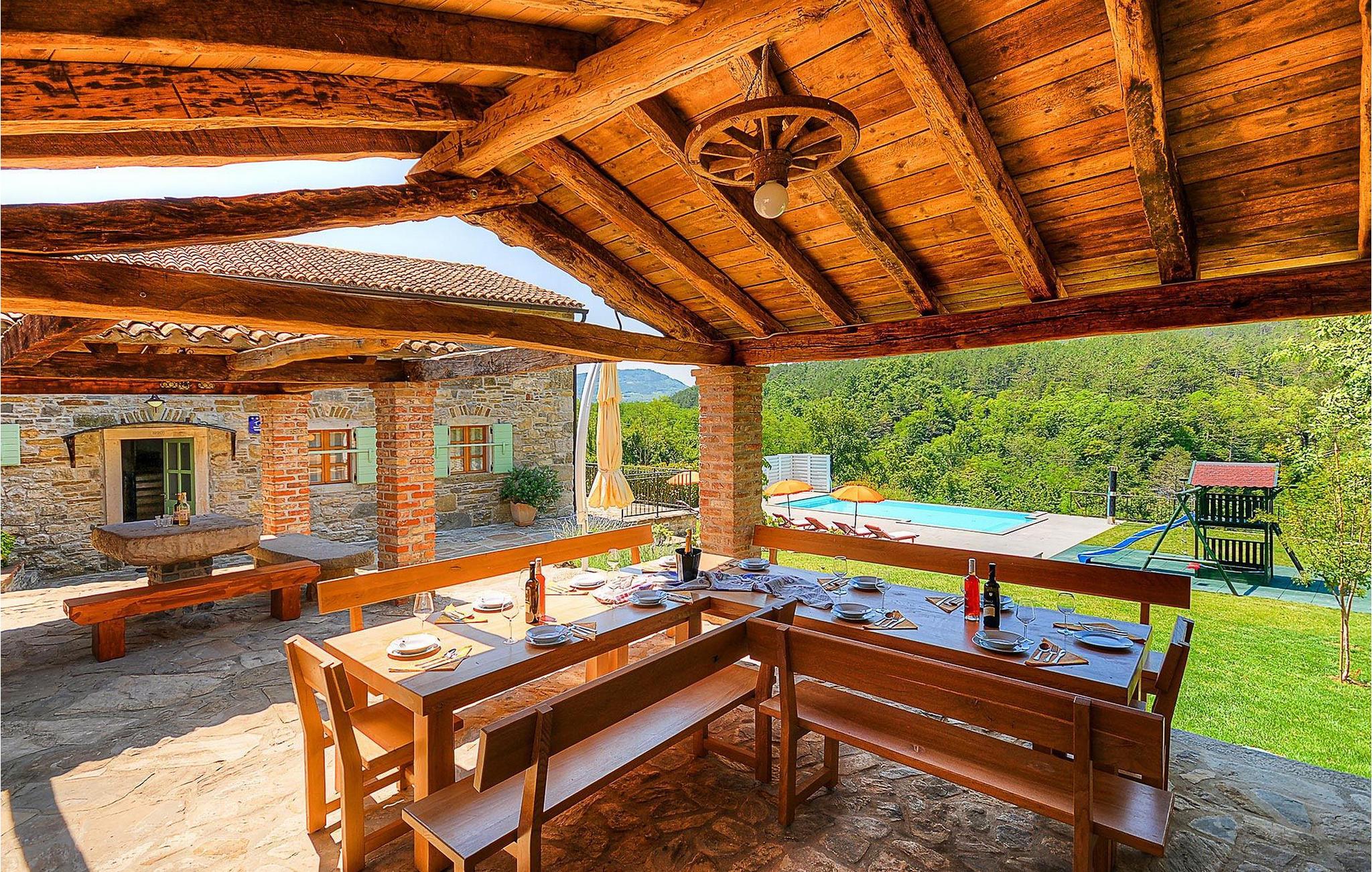 En nænsomt restaureret gammel stenejendom omgivet af drømmeagtig natur. Villa Denis består af fire individuelt indrettede huse og er ideel til familieferier, der giver privatliv og sikrer afslapning. Det første hus med lysegrønne skodder har et rummeligt åbent opholds-, spise- og køkkenområde samt et soveværelse med dobbeltseng og eget badeværelse i stueetagen. Der er yderligere 3 soveværelser med dobbeltsenge med private badeværelser på øverste etage. Det 2. hus med mørkegrønne skodder har køkken og spiseplads i stueetagen samt 1 soveværelse med dobbeltseng og 1 soveværelse med 2 enkeltsenge på øverste etage med fælles badeværelse. Det 3. hus med blå skodder har 1 soveværelse med dobbeltseng og 1 soveværelse med 2 enkeltsenge med et fælles badeværelse i stueetagen og et køkken, spisestue og opholdsstue på øverste etage med direkte adgang til terrassen med et andet udendørs opholdsområde. I stueetagen af 4. hus med røde skodder er der spillelokale, fitnessrum og separat toilet. To soveværelser med dobbeltsenge med private badeværelser er placeret på første sal, og der er yderligere 2 soveværelser med dobbeltsenge (et med en ekstra enkeltseng) begge med eget badeværelse på anden sal. Udenfor er der en indbydende infinity pool, en dejlig have, udendørs spiseplads og køkken med grill. Mens du skødesløst nyder udsigten over de omkringliggende hundredeårsskove, kan din yngste more sig på legepladsen. Villaen er beliggende lige uden for den antikke by Buzet. Buzet ligger i den nordlige del af Istrien nær grænsen til Slovenien. Dens historiske kerne, der stammer fra middelalderen, ligger på en bakketop over en frugtbar dal af den længste flod i Istrien - Mirna. I dag er Buzet almindeligt kendt som 'trøflernes by', da skovene langs Mirna-floden er særligt rige på denne guddommelige knold. Ifølge nogle synspunkter er den hvide trøffel i Istrien lige så god som den mest berømte hvide trøffel fra den italienske region Alba. Til ære for denne trøffel arrangeres hvert år Trøffeldage i september og oktober. Den anden weekend i september finder også en stor folkefest i Buzet sted med en særlig attraktion – en kæmpe omelet (almindeligvis kendt som 'fritada' eller 'fritaja') med over 2.000 æg og 10 kg trøfler er tilberedt i en kæmpestor pande. Denne begivenhed markerer officielt begyndelsen på Trøffeldage i Istrien. I Buzets omgivelser er der nogle meget velbevarede middelalderbyer. En bil anbefales.