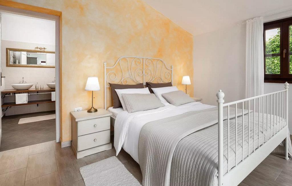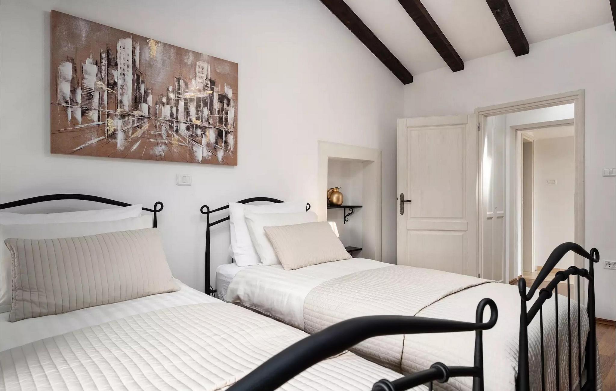Omgivet af maleriske skove, ikke langt fra byen Buzet, ligger den charmerende Villa Garibaldi. Tiden ser ud til at stå stille her. Nostalgikere og elskere af svundne tider vil være glade her. Træets varme nuance i kontrast til den lyse sten og det hyggelige interiør, der til dels består af historiske møbler, skaber en smuk atmosfære, der inviterer til ophold. I alt tre komfortable soveværelser kan op til 8 personer finde afslapning. Det åbne opholds- og spiseområde overbeviser med sin enkle elegance. I det fuldt udstyrede køkken kan du tilberede lækre retter ligesom derhjemme. Spis i den rummelige spiseplads med direkte udgang til den overdækkede terrasse med opholdsstue. Villaens lille, men fine højdepunkt ligger på første sal. Drik din morgenkaffe på balkonen, som vil fortrylle dig med sin betagende udsigt over den omkringliggende natur. Udendørsområdet byder på et fuldt udstyret sommerkøkken med en kulgrill, hvor du kan tilbringe dejlige sommeraftener med din familie og venner, og byder på masser af plads til rekreation. Forfrisk dig selv i den private pool og nyd den store have. Villaen er beliggende lige uden for den antikke by Buzet. Buzet ligger i den nordlige del af Istrien nær grænsen til Slovenien. Dens historiske kerne, der stammer fra middelalderen, ligger på en bakketop over en frugtbar dal af den længste flod i Istrien - Mirna. I dag er Buzet almindeligt kendt som 'trøflernes by', da skovene langs Mirna-floden er særligt rige på denne guddommelige knold. Ifølge nogle synspunkter er den hvide trøffel i Istrien lige så god som den mest berømte hvide trøffel fra den italienske region Alba. Til ære for denne trøffel arrangeres hvert år Trøffeldage i september og oktober. Den anden weekend i september finder der også en stor folkefest i Buzet sted med en særlig attraktion – en kæmpe omelet (almindeligvis kendt som 'fritada' eller 'fritaja') med over 2.000 æg og 10 kg trøfler er tilberedt i en enorm pande. Denne begivenhed markerer officielt begyndelsen på Trøffeldage i Istrien. I Buzets omgivelser er der nogle meget velbevarede middelalderbyer. Villa Garibaldi er et perfekt tilflugtssted for dem, der ønsker at flygte fra hverdagens hektiske tempo. En bil anbefales.