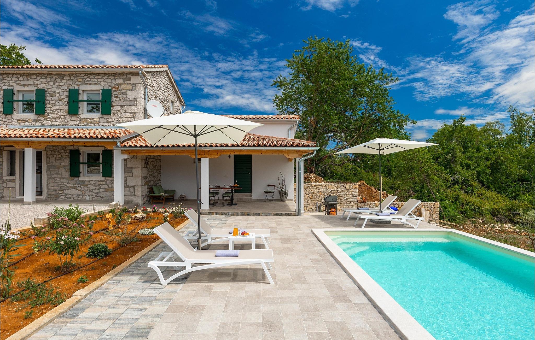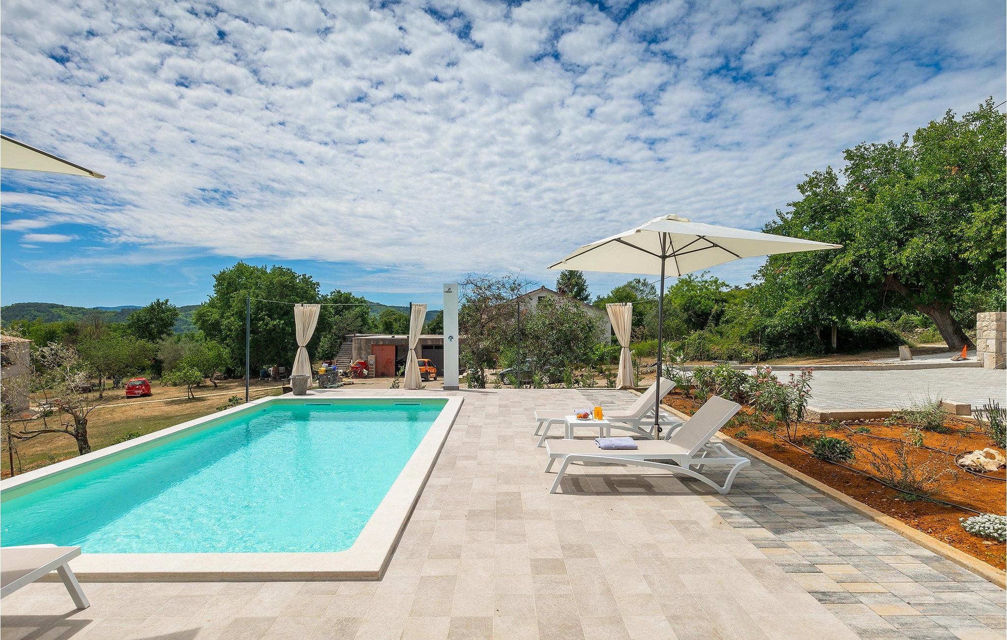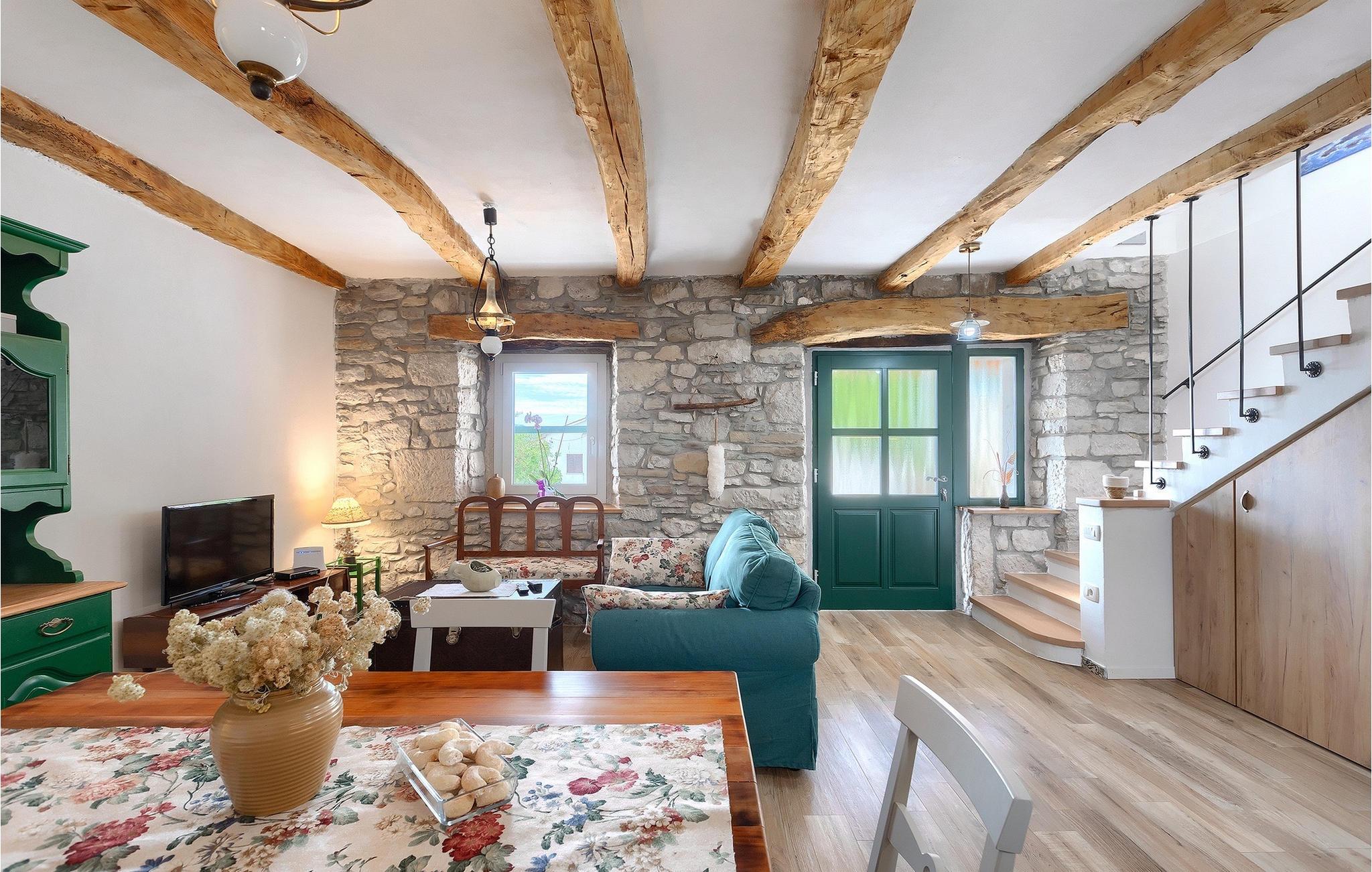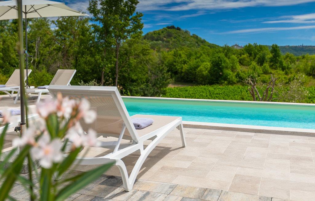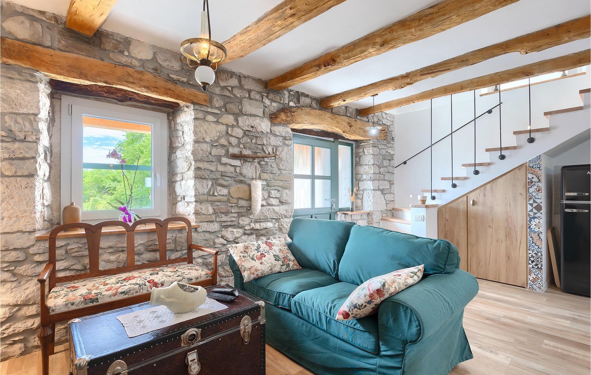 Denne idylliske traditionelle villa ligger i den middelalderlige og romantiske by Buzet. Alt er indrettet i en meget varm stil, så du vil føle dig hjemme. Villa Klara kan rumme op til 4 personer i dette hus. Husets udendørsareal er på 1300 m2, hvor du kan svømme i den private pool eller nyde solens stråler på liggestole. Mens du tilbereder traditionelle istriske retter på grillen med dine kære, kan du nyde den smukke udsigt fra den overdækkede terrasse på vinmarkerne og oliventræerne, der omgiver dette hus. Første sal er indrettet i rustik stil og består af fuldt udstyret køkken, spisestue og stue med naturligt lysindfald. På første sal er der desuden toilet og 1 badeværelse, samt direkte udgang til villaens terrasse. Trappen fører til 2. sal, hvor der er to rustikt møblerede soveværelser med dobbeltseng, dekoreret med en stenmur og antikke møbler, der giver denne villa sin unikke karakter. Book Villa Klara og sørg for en unik ferie i det smukke istriske landskab!Denne villa er beliggende nær Buzet, en af de middelalderlige maleriske byer i Istrien, omgivet af floden Mirna, kendt for sine stier med oliventræer og vinmarker, århundreder gammel arkitektur ideel til gåture og sightseeing. Takket være den rige vegetation langs Mirna-floden er Buzet også kendt som "Trøflernes by", så du bør ikke gå glip af søgen efter trøfler. Når du udforsker Buzets gader og dens omgivelser, vil du støde på bryggerier og traditionelle vinbarer, hvor du bør prøve lokale specialiteter: Istrisk malvasia, prosciutto og pasta med trøfler. For dem, der ønsker at holde en aktiv ferie, byder dette område på adskillige aktiviteter: Besøg i bjerglejren Raspadalica, hvor du kan nyde gratis klatring, paragliding eller cykling, eller vandre- og cykelture på de velkendte stier i denne region. Hum, der er kendt som den mindste by i verden, er bestemt et anbefalet sted at lære denne lille bys charme og unikke karakter at kende. Vandløbet i floden Mirna med sine vandfald og turkise bassiner i den gamle bydel i Kotli er bestemt et naturfænomen, der er perfekt til en dagstur.
