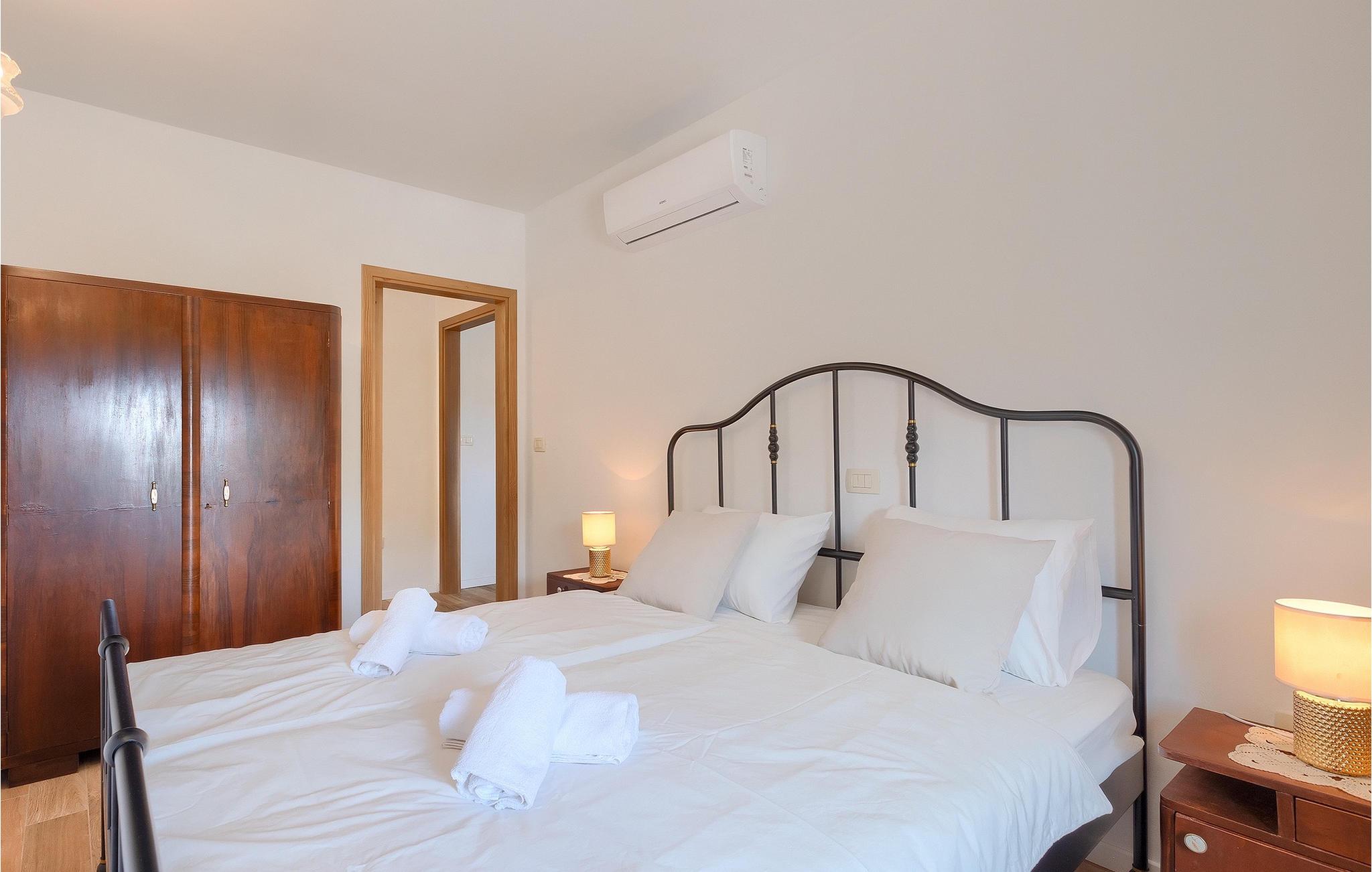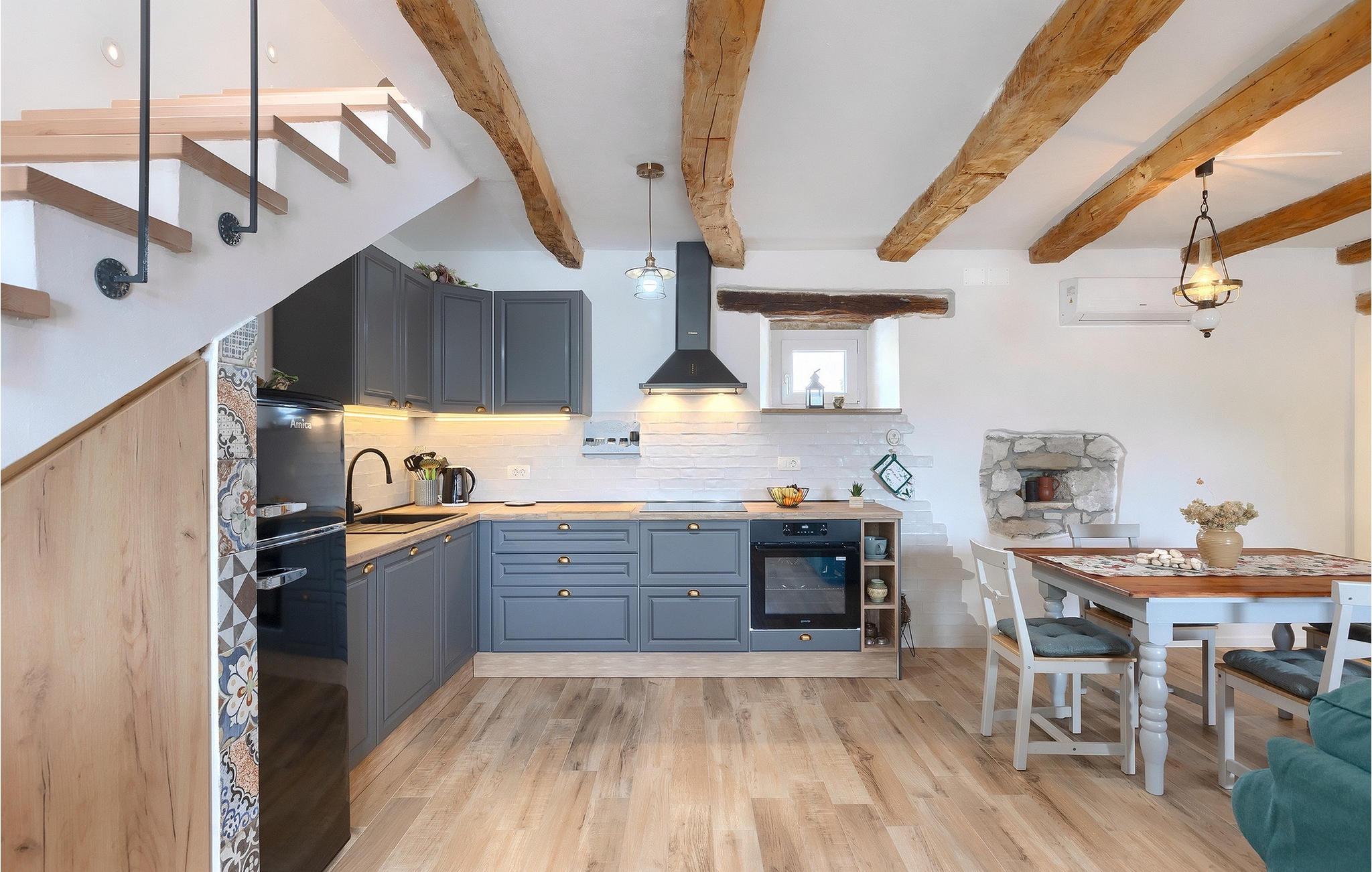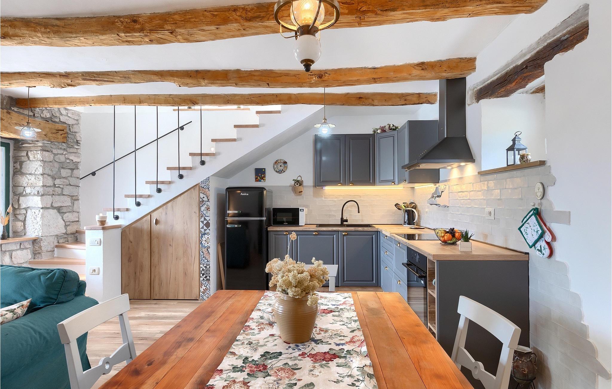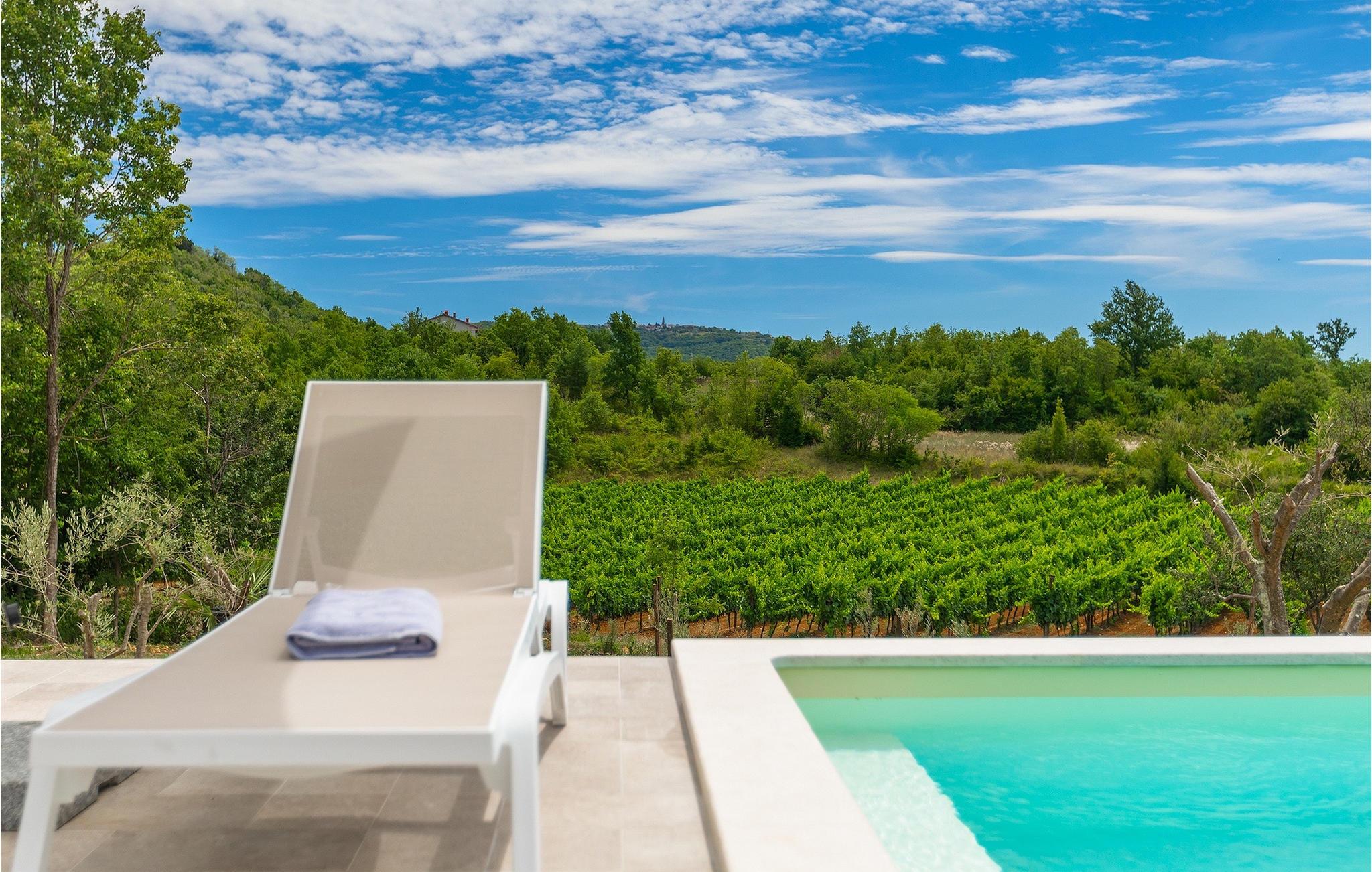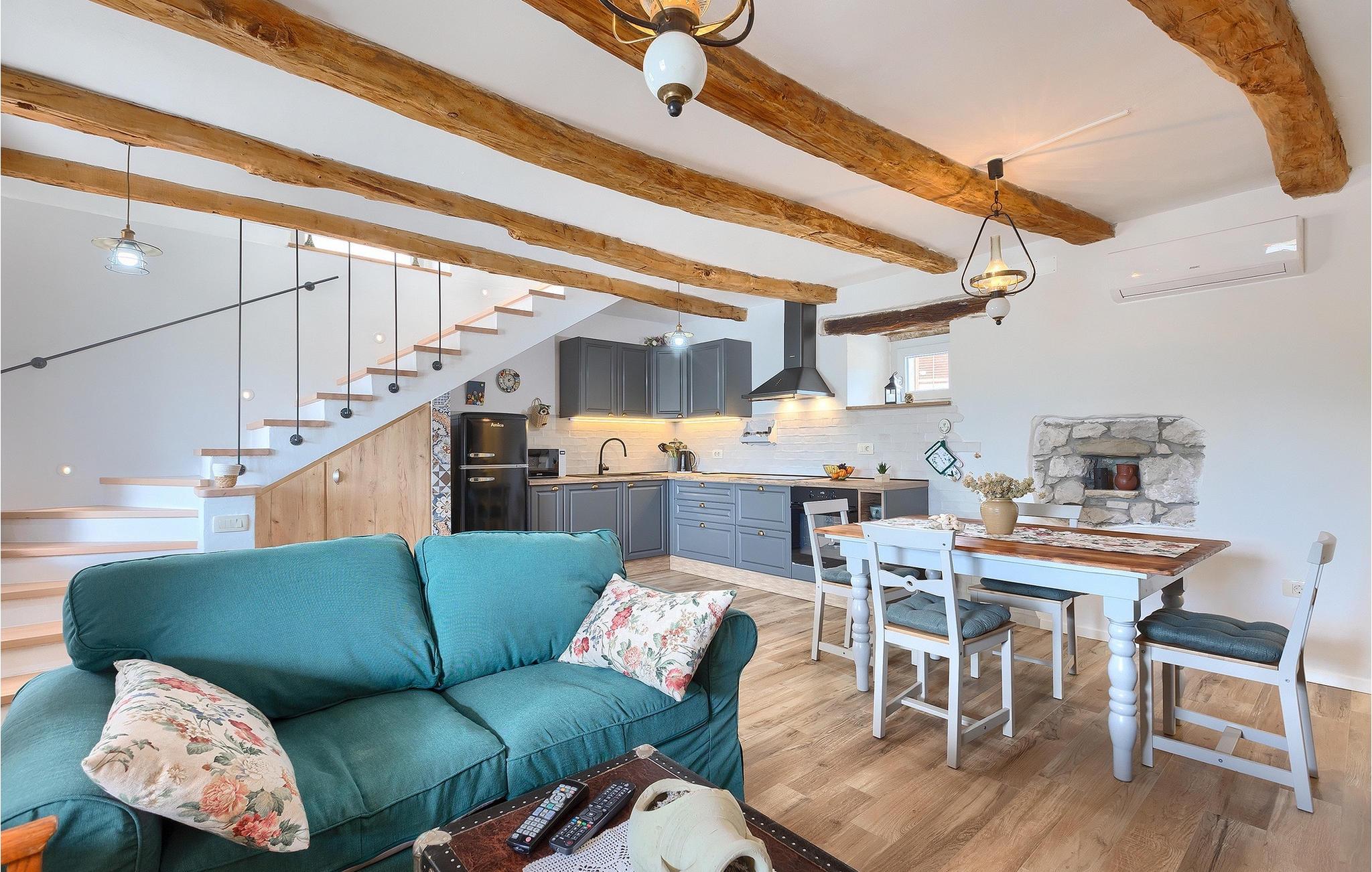 Denne idylliske traditionelle villa ligger i den middelalderlige og romantiske by Buzet. Alt er indrettet i en meget varm stil, så du vil føle dig hjemme. Villa Klara kan rumme op til 4 personer i dette hus. Husets udendørsareal er på 1300 m2, hvor du kan svømme i den private pool eller nyde solens stråler på liggestole. Mens du tilbereder traditionelle istriske retter på grillen med dine kære, kan du nyde den smukke udsigt fra den overdækkede terrasse på vinmarkerne og oliventræerne, der omgiver dette hus. Første sal er indrettet i rustik stil og består af fuldt udstyret køkken, spisestue og stue med naturligt lysindfald. På første sal er der desuden toilet og 1 badeværelse, samt direkte udgang til villaens terrasse. Trappen fører til 2. sal, hvor der er to rustikt møblerede soveværelser med dobbeltseng, dekoreret med en stenmur og antikke møbler, der giver denne villa sin unikke karakter. Book Villa Klara og sørg for en unik ferie i det smukke istriske landskab!Denne villa er beliggende nær Buzet, en af de middelalderlige maleriske byer i Istrien, omgivet af floden Mirna, kendt for sine stier med oliventræer og vinmarker, århundreder gammel arkitektur ideel til gåture og sightseeing. Takket være den rige vegetation langs Mirna-floden er Buzet også kendt som "Trøflernes by", så du bør ikke gå glip af søgen efter trøfler. Når du udforsker Buzets gader og dens omgivelser, vil du støde på bryggerier og traditionelle vinbarer, hvor du bør prøve lokale specialiteter: Istrisk malvasia, prosciutto og pasta med trøfler. For dem, der ønsker at holde en aktiv ferie, byder dette område på adskillige aktiviteter: Besøg i bjerglejren Raspadalica, hvor du kan nyde gratis klatring, paragliding eller cykling, eller vandre- og cykelture på de velkendte stier i denne region. Hum, der er kendt som den mindste by i verden, er bestemt et anbefalet sted at lære denne lille bys charme og unikke karakter at kende. Vandløbet i floden Mirna med sine vandfald og turkise bassiner i den gamle bydel i Kotli er bestemt et naturfænomen, der er perfekt til en dagstur.
