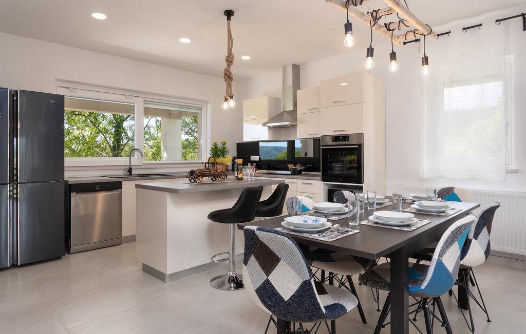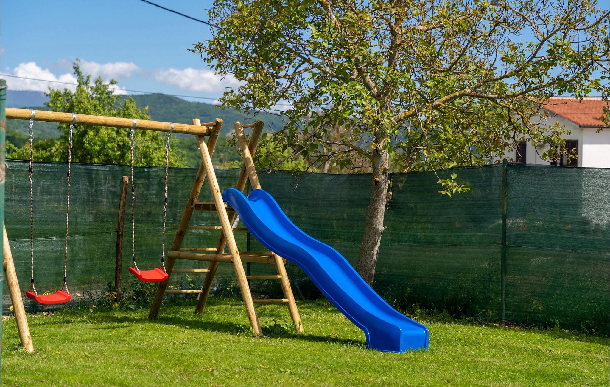 Beliggende i det centrale Istrien er den charmerende Villa Butoniga Nature et virkelig vidunderligt sted at tilbringe din ferie. Villaen har 5 soveværelser fordelt på 2 forskellige lejligheder, der er forbundet med en udvendig trappe, og den kan sove i alt 10 personer. Sjov og afslapning vil uden tvivl foregå udenfor. Den 32 m2 private swimmingpool er tilgængelig for din nydelse, og du kan slappe af på liggestolene, mens du nyder nogle stråler. Børn kan lege på legepladsen, mens voksne kan tilberede lækre måltider over kulgrillen. Stueetagen har en stue, et fuldt udstyret køkken, en spiseplads, to soveværelser og et badeværelse med bruser. På denne etage er et dobbeltværelse tilgængeligt for forældre at sove i, mens et andet værelse med en køjeseng er tilgængeligt for børn. Endnu et moderne rum med en stue og balkon, en spiseplads og et fuldt funktionelt køkken er tilgængeligt for dig på første niveau. Der er 2 soveværelser med dobbeltsenge, 1 soveværelse med 2 enkeltsenge og 2 brusebade til rådighed for gæsterne. Lige meget om du rejser til Istrien for at tage på sightseeing eller bare for at slappe af, kan Villa Butoniga Nature give dig både takket være dens beliggenhed og faciliteter. Kort afstand fra Buzet, "trøflernes by", i en lille landsby ved navn Marcengela, er hvor Villa Butoniga Nature ligger. Dette charmerende område i Istrien er kendt for sin prisvindende olivenolie, vinruter og kulinariske lækkerier som trøfler. Du kan opleve et udvalg af lækker mad, storslåede vinvarianter, rig kulturel og historisk arv, denne regions naturlige skønhed og en autentisk smag af traditionelle Istrien ved at bo i Villa Butoniga Nature. Så begynd at planlægge dit Istrien-eventyr i dag, vi er sikre på, at du vil have en vidunderlig tid!