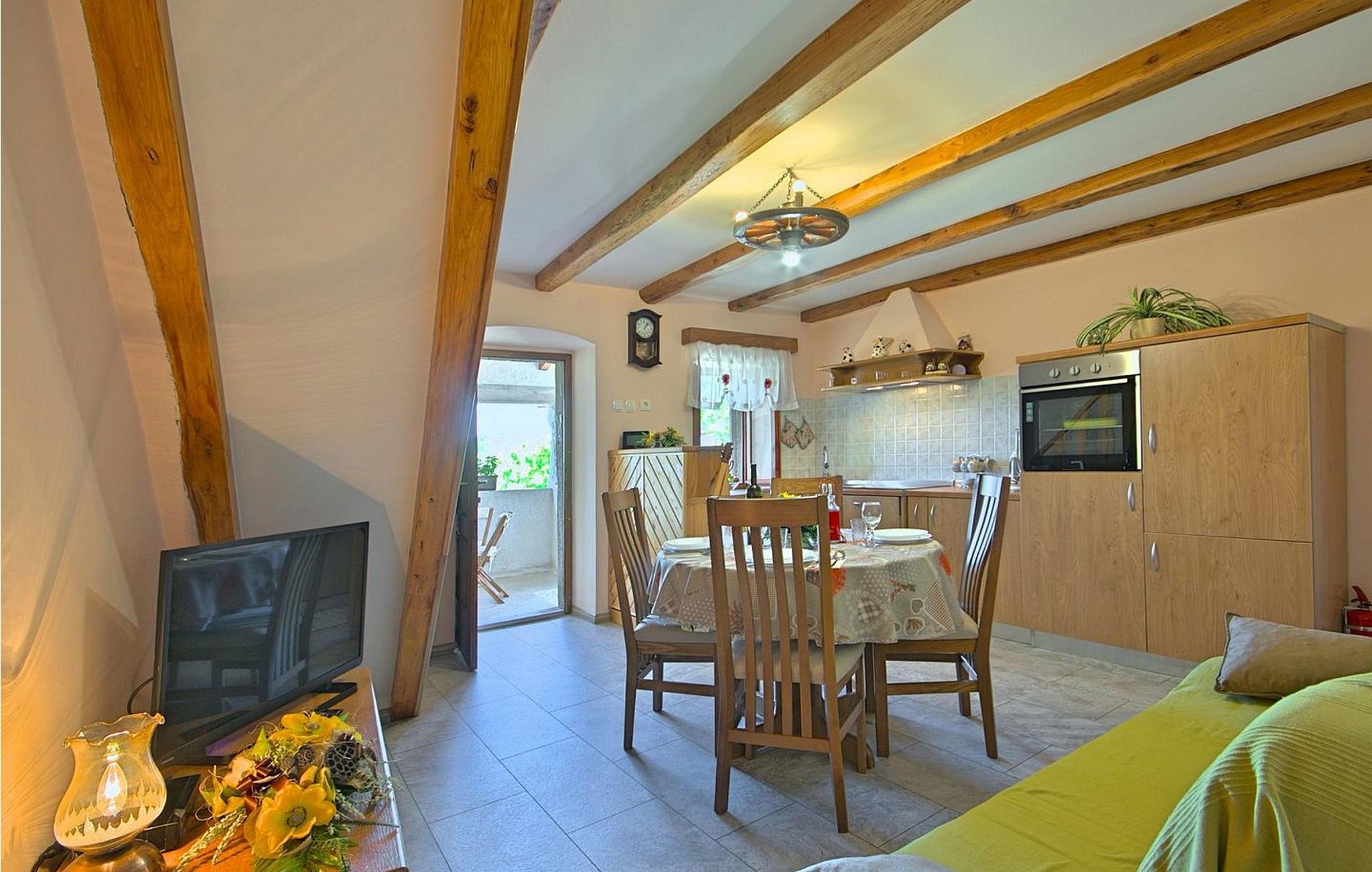 Ninna er en dejlig lejlighed beliggende i et lille sted Drobezija i det centrale Istrien mellem Buzet og Motovun. Omgivet af uberørt natur med en smuk udsigt over den istriske sø Butoniga. Kurstedet Istarske Toplice ligger kun 9,5 km væk, som blandt andet har wellness i deres tilbud. Lejlighed Ninna ligger i et af rækkehusene, der er bygget i 1890 og er totalrenoveret i 2017. I landsbyen er der kun få huse, hvoraf kun tre er beboede eller til leje. Til gæsternes rådighed er der en gårdhave med en delvis overdækket terrasse med spisebord og grill samt to parkeringspladser. Lejlighed til 4 gæster med et samlet boligareal på 54 kvm er beliggende i høj stueetage med opholdsstue med spisebord, veludstyret køkken, soveværelse med dobbeltseng, mindre depotrum, bad/toilet, der kan nås fra verandaen ved lejlighedens indgang. På hemsen er der endnu et dobbeltværelse med aircondition. Bemærk venligst, at denne ejendom ikke accepterer ungdomsgrupper eller polterabends. En ungdomsgruppe på denne ejendom er en gruppe bestående af personer på 26 år eller derunder. Book ikke denne ejendom, hvis du er en ungdomsgruppe eller et polterabend, da din reservation vil blive afvist efter booking, hvilket kan omfatte ved ankomst til ejendommen eller under dit ophold, og du vil ikke blive refunderet.