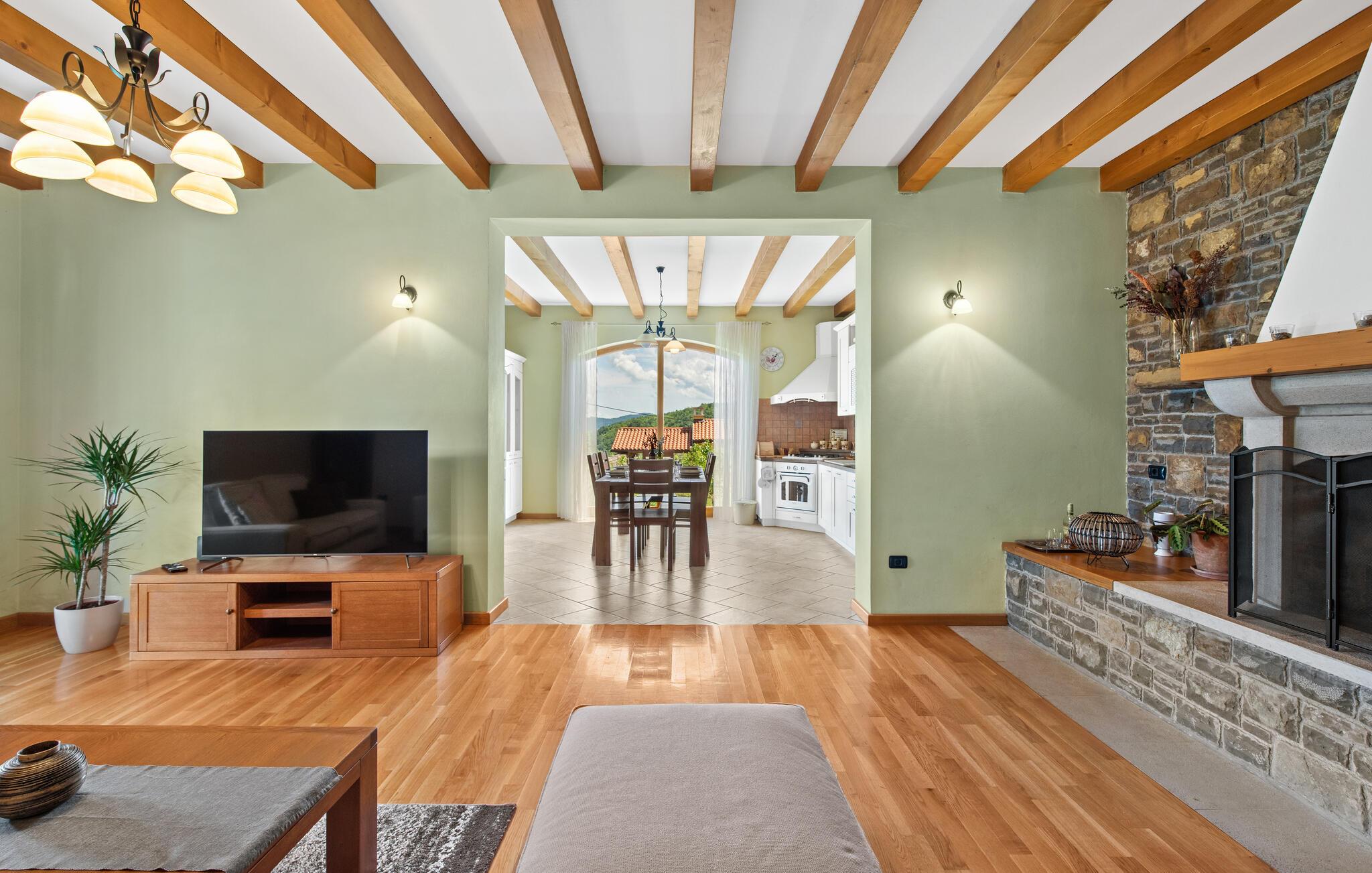 Villa Dol er et charmerende, rustikt oase i rolige omgivelser, perfekt til afslapning. Villaens udendørsområde omfatter en swimmingpool, tre overdækkede terrasser til udendørs spisning, en anlagt have og to parkeringspladser. Indvendigt møder komfort rustik charme på tværs af to etager med aircondition. Stueetagen indeholder en hyggelig stue med pejs, et veludstyret køkken med spiseplads og to soveværelser - det ene med dobbeltseng og det andet med separate senge - hver med eget badeværelse og et ekstra separat toilet. Ovenpå finder du et rummeligt soveværelse med dobbeltseng med en-suite badeværelse, som fører til en stor terrasse med en fantastisk panoramaudsigt over det omkringliggende landskab. Villa Dol ligger i udkanten af en stille landsby i det grønne indre af Istrien. Den nærmeste restaurant ligger 7 km væk i Sovinjak, og byen Buzet, 12 km væk, byder på supermarkeder, bagerier, pengeautomater, apoteker og meget mere. Den nærmeste strand er i Novigrad. Området er kendt for sine trøfler, som du kan nyde på lokale restauranter. Bemærk venligst, at denne ejendom ikke accepterer ungdomsgrupper eller polterabender. En ungdomsgruppe på denne ejendom består af personer på 26 år eller derunder.