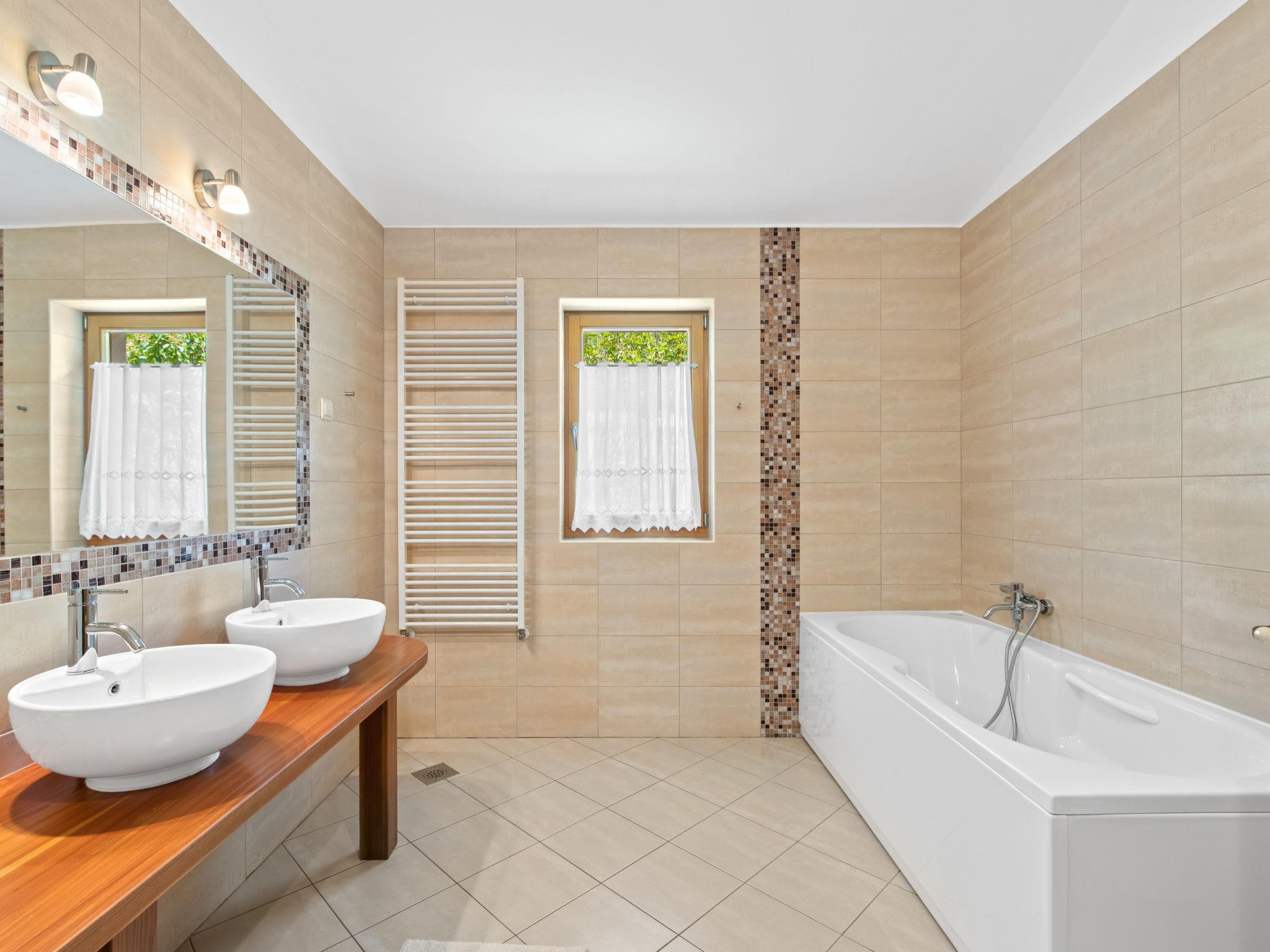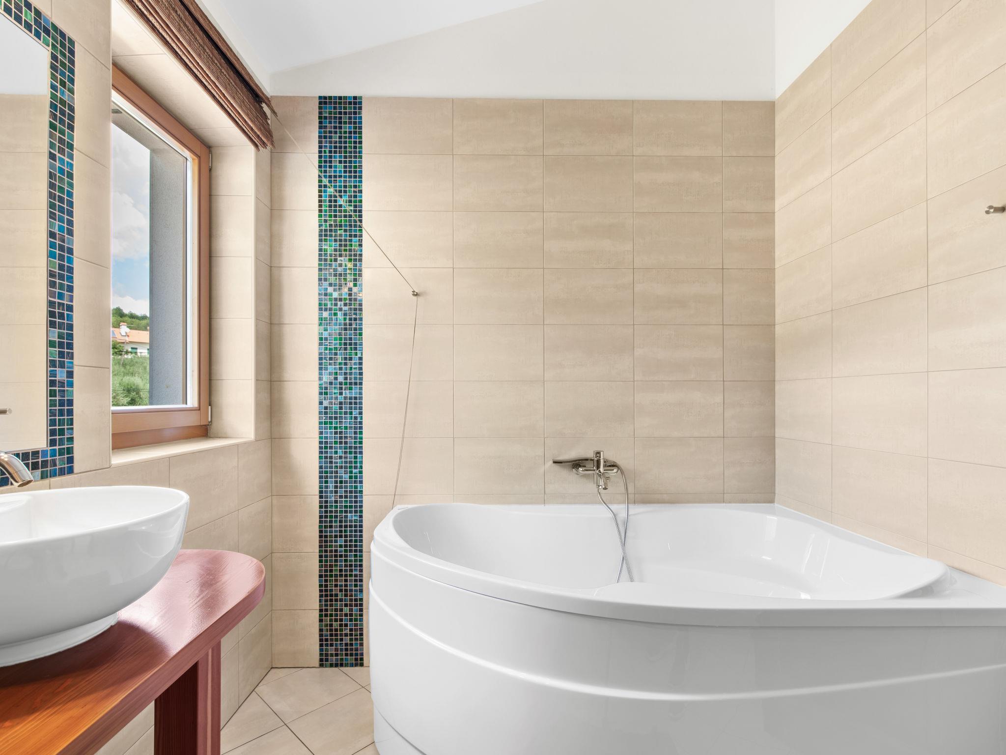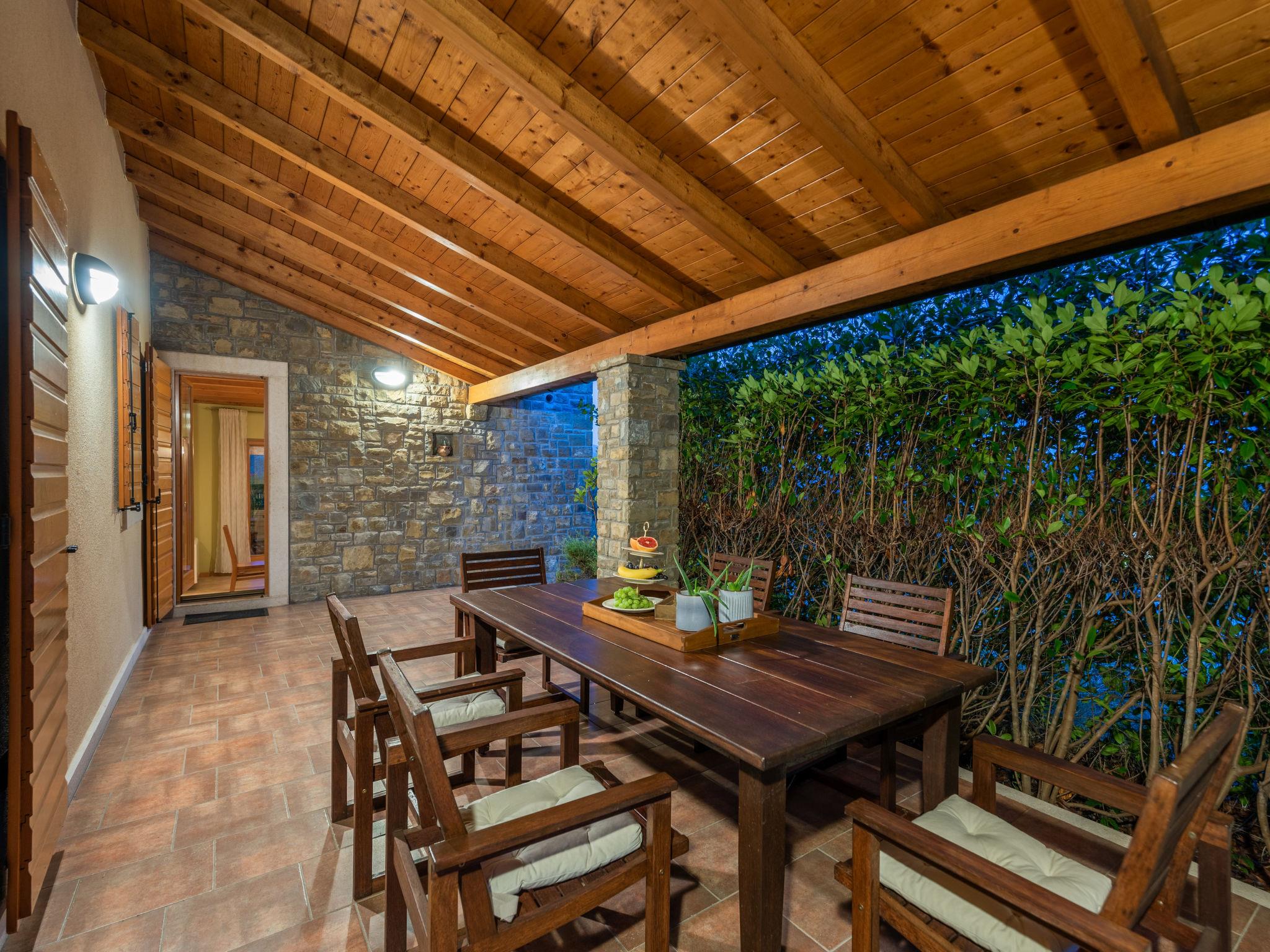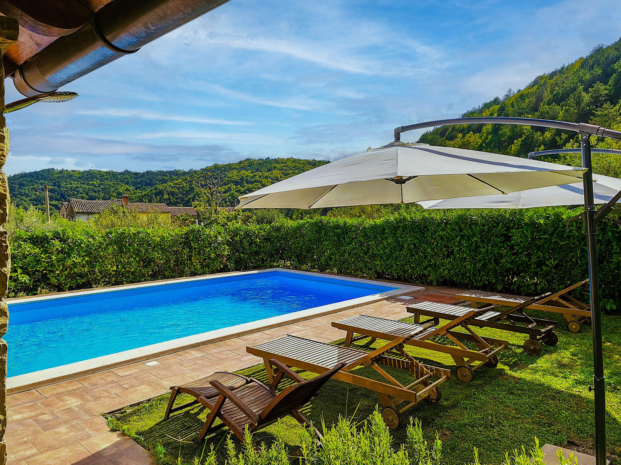 Beautiful, rustic villa "Dol", 2 storeys. In the hamlet Dol 10 km from the centre of Buzet, 15 km from the centre of Motovun, in a quiet position, 39 km from the sea, 40 km from the beach, in the countryside. Private: property 1'000 m2, swimming pool (8 x 4 m, 32 m2, depth 165 cm, seasonal availability: 01.May. - 01.Oct.) with internal staircase. Outdoor shower, hot tub, badminton, garden furniture, barbecue, pool maintenance by the owner/gardener. In the house: internet access, sauna, fitness room, hot tub (all included), washing machine. Shop 10 km, supermarket 10 km, restaurant 7 km, bus stop 10 km, railway station 17 km. Walking paths from the house, cycle lane 50 m. The owner does not accept any groups. The owner does not accept any youth groups.