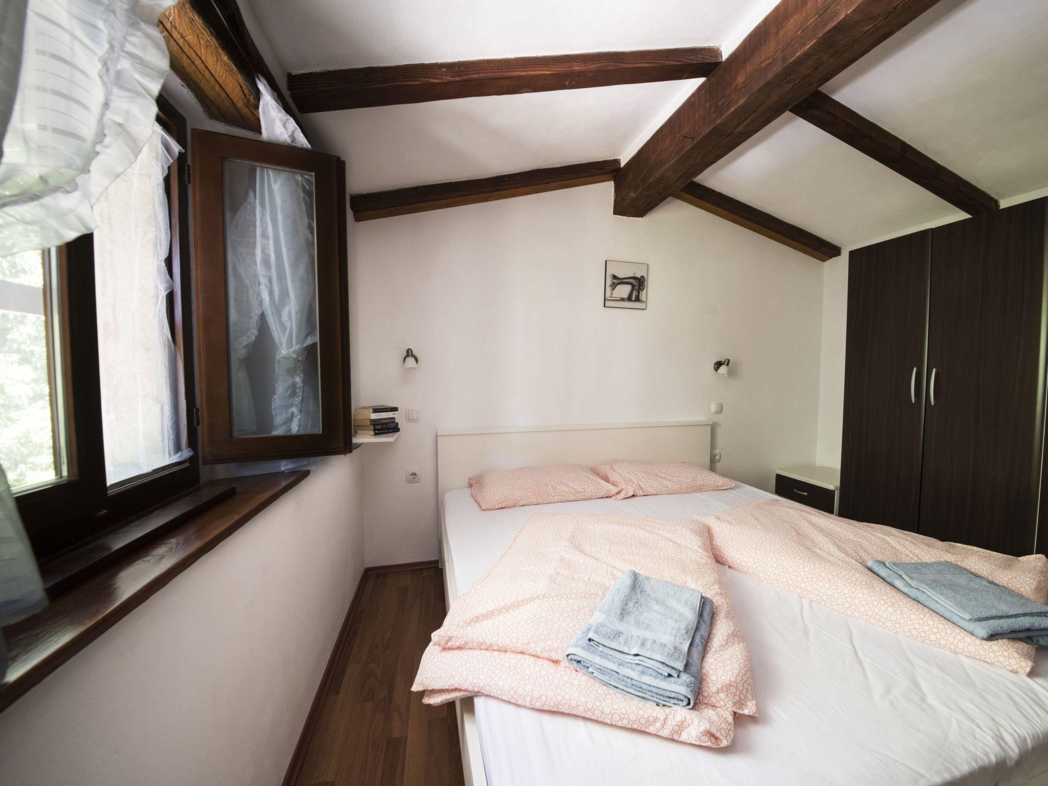 House has kitchen, living room and bathroom on the ground floor. Kitchen is equipped with everything you need for preparing a perfect meal, while in living room you can find TV with cable programes and DVD player. Towels are provided in the bathroom which has a shower. Upper floor contains two bedrooms with double bed in each one. Both are equipped with wardrobes and linen is included.