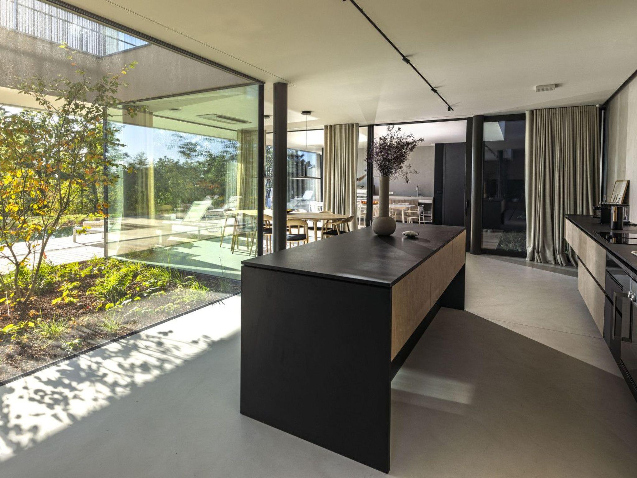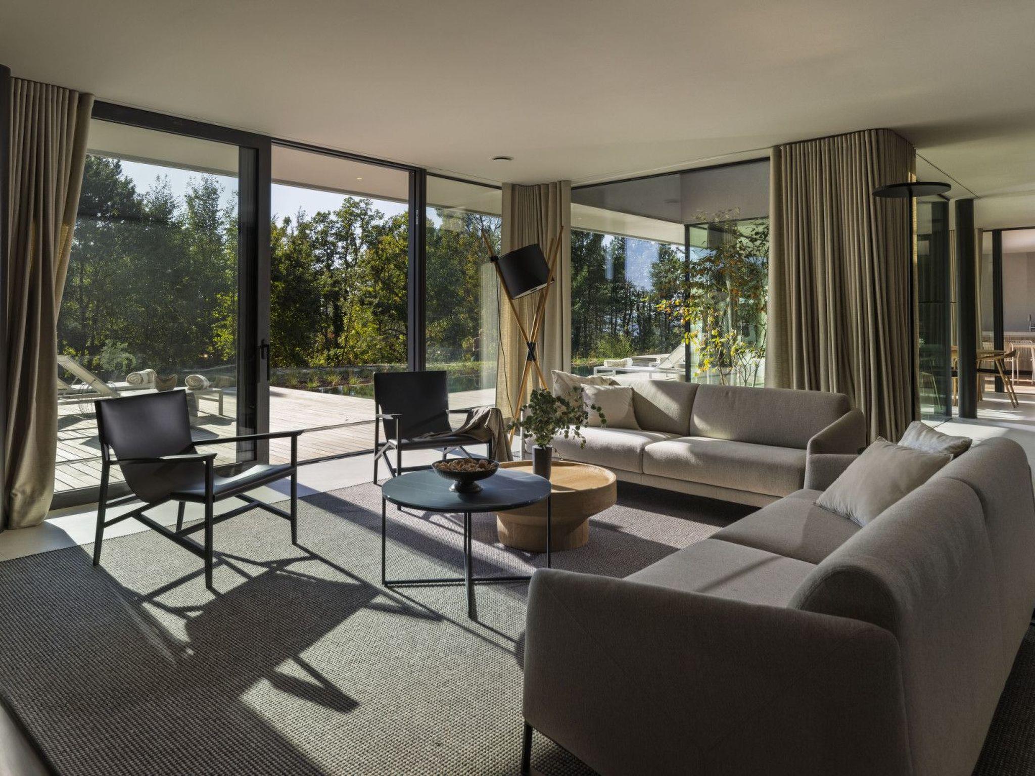 Adding to the charm is a fireplace that provides a warm ambiance during the cooler evenings. The house is uniquely positioned directly at the edge of the woods, offering a serene getaway from the hustle and bustle. Outside, the garden is exclusively yours to enjoy, complete with a private pool for soaking up the sun or taking leisurely swims. The outdoor area is completed with a terrace and a balcony, perfect for relaxing moments in the fresh air.
