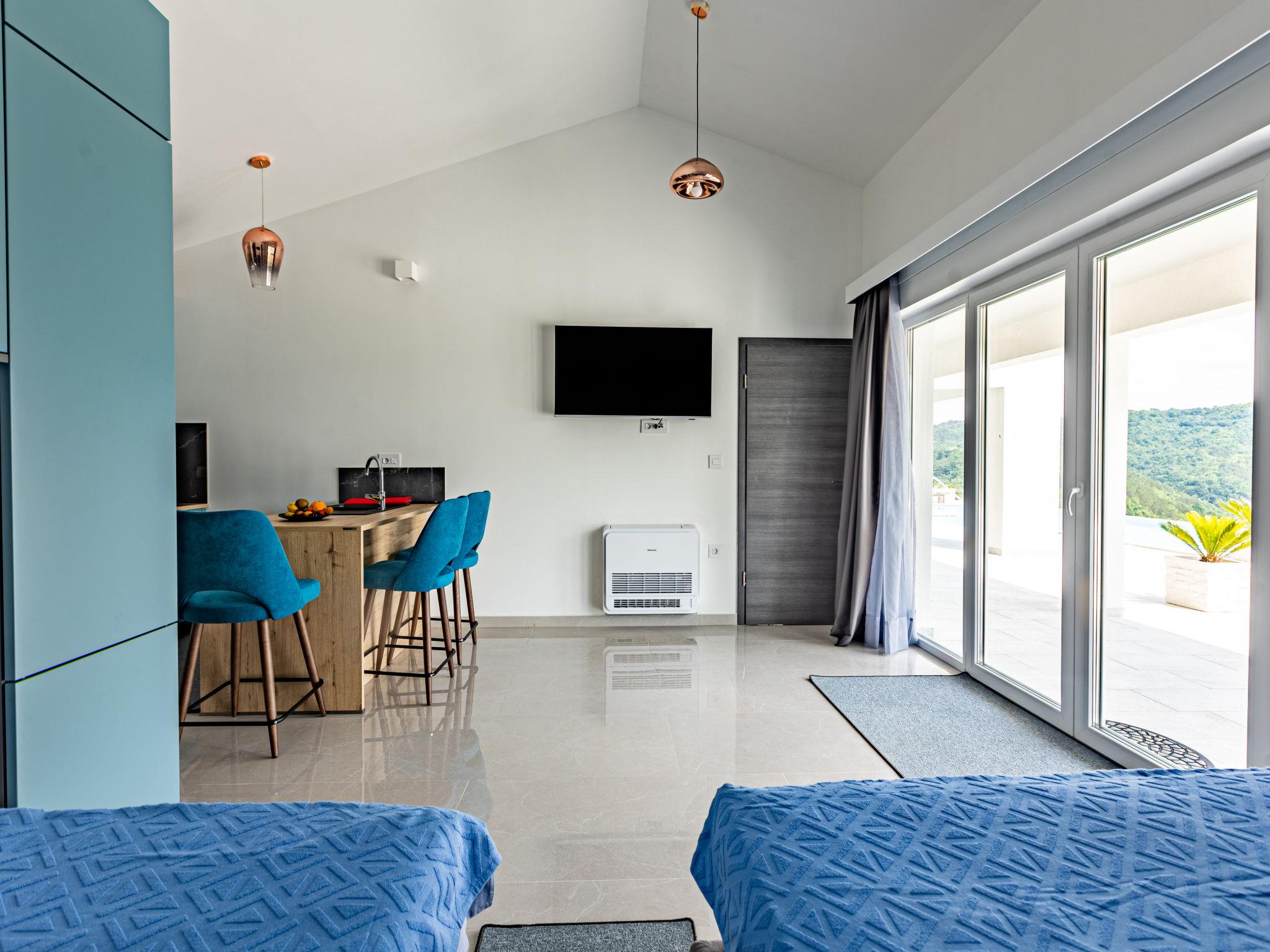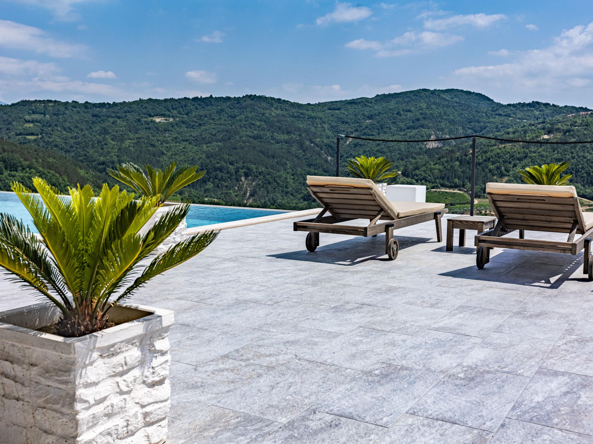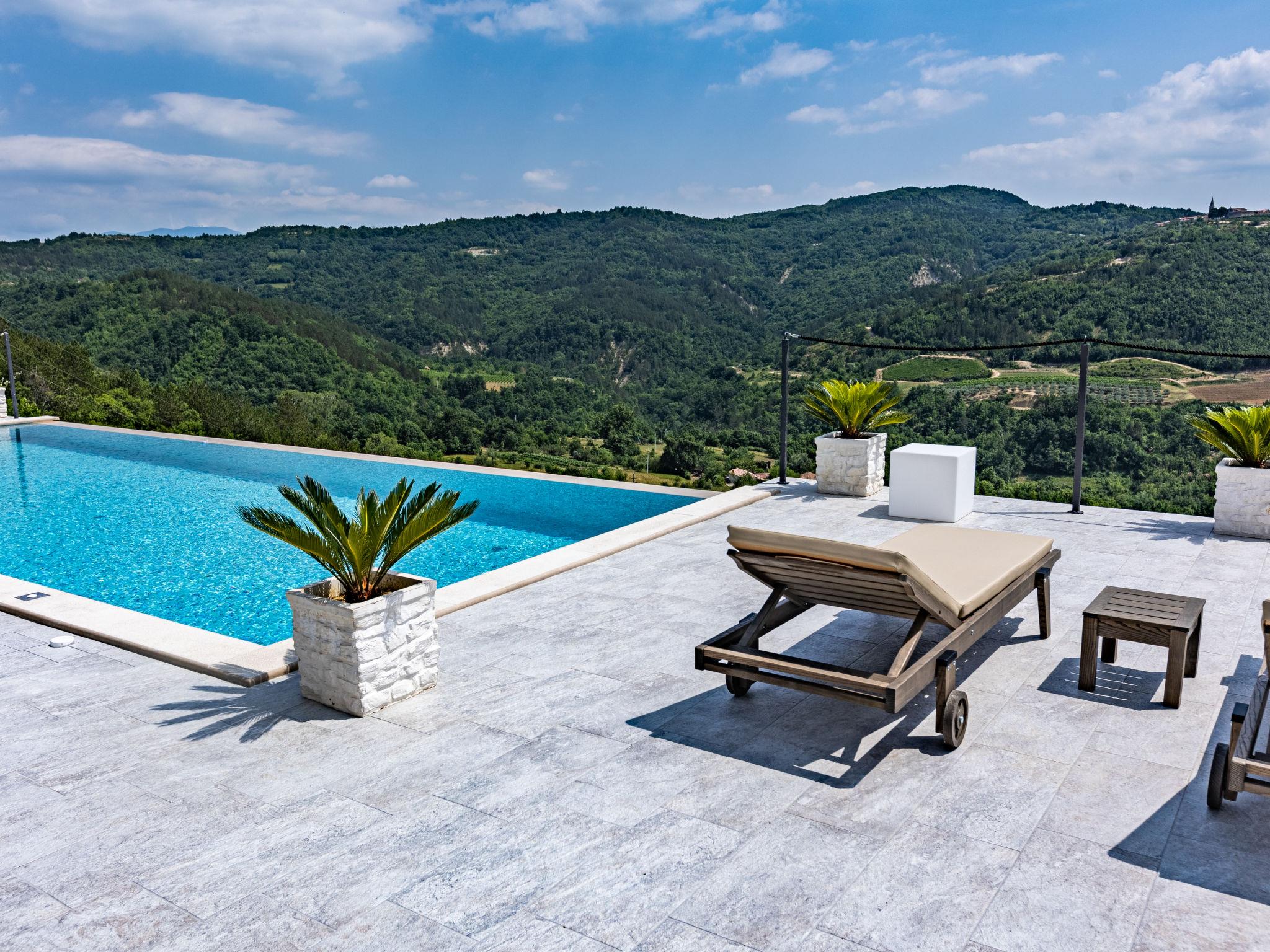 Beautiful single-family house "Villa Bella", 2 storeys. In the hamlet Buršici 5 km from the centre of Draguc, 11 km from the centre of Buzet, in a quiet, sunny position, 45 km from the sea. Private: property 10'000 m2 with wildlife garden, swimming pool angular (10 x 4 m, depth 140 cm, seasonal availability: 01.May. - 30.Oct.) with internal staircase. Outdoor shower, terrace, barbecue, pool maintenance by the owner/gardener. In the house: internet access, washing machine. 800 m long motor access to the house (via unmade road). Parking (for 5 cars) at the house on the premises. Shop 11 km, supermarket 11 km, restaurant 4 km, bus stop 11 km, pebble beach 45 km. Pool with hydromassage. The unit consist of the main house, appartment and studio, rented as one unit.