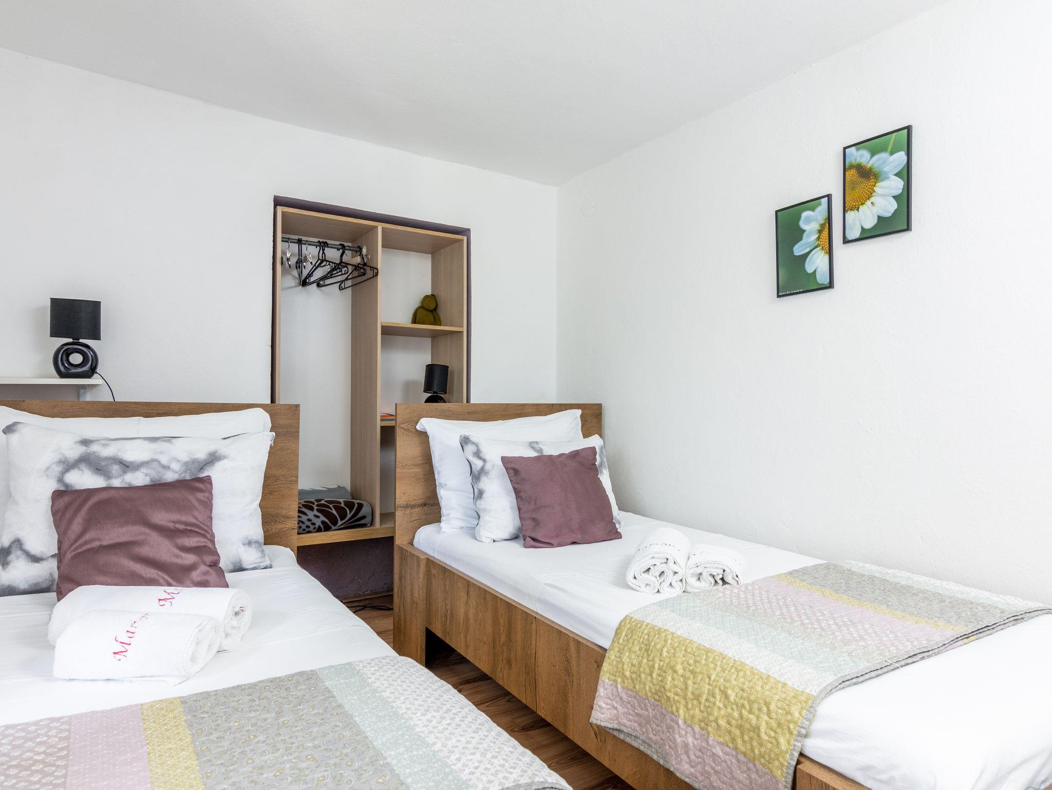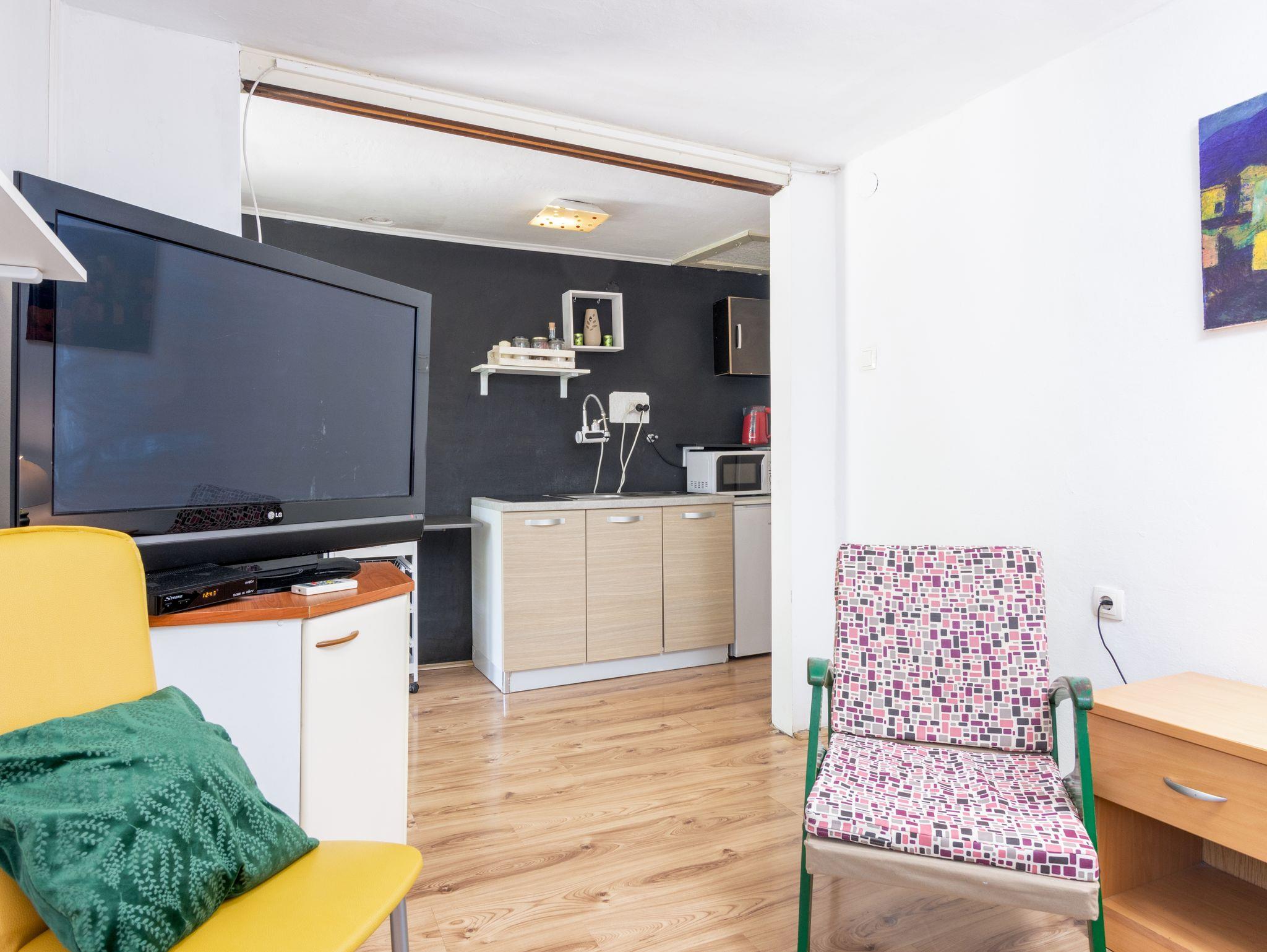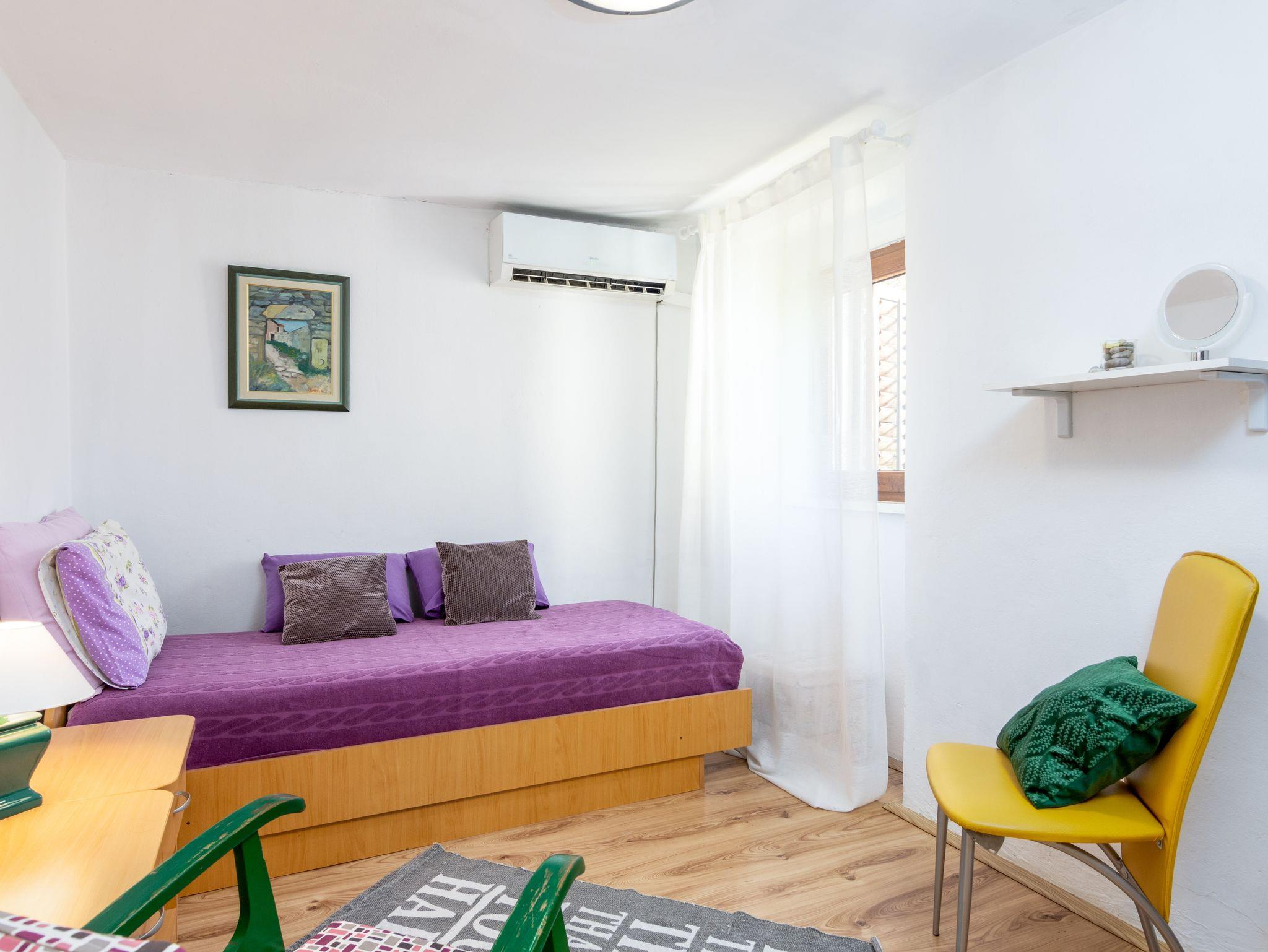 Ferienwohnung bietet Platz für 3 Gäste. Die Betten sind in Schlafzimmern, die es 1 gibt, und in Wohnzimmer, innerhalb einer Gesamtfläche von 24m2, angeordnet. In der Unterkunftseinheit besteht die Möglichkeit des Mitbringens von Haustieren gegen Aufpreis. Die reservierte Unterkunftseinheit hat keinen Balkon und keine Terrasse. IM PREIS INBEGRIFFEN: Kurtaxe, Endreinigung, Klimatisierung, Parkplatz, Internet, Kinderbett, Bügeleisen, Bügelbrett, Föhn. VERBINDLICHE ZUSÄTZLICHE KOSTEN: Aufzahlung für Kurzaufenthalte (prozentualer Zuschlag pro Nächtigungsanzahl: 30% - 1, 20% - 2, 10% - 3). UNVERBINDLICHE ZUSÄTZLICHE KOSTEN: Frühstück (7,00 €, 50% Nachlass für Kinder zwischen 4 und 12 Jahren, Kinder bis 4 Jahre sind frei.), Wäschewaschen (5,00 € Waschen), Haustiere (10,00 € pro Nacht). Die Verfügbarkeit zusätzlicher Dienstleistungen in Ihrem reservierten Termin und die Preise derselben (falls nicht aufgeführt) müssen im Voraus überprüft werden. Zusätzliche Dienstleistungen die in der Zahlungsaufforderung nicht aufgeführt sind werden direkt beim Vermieter bezahlt, angenommen der Gast nutzt auch diese.