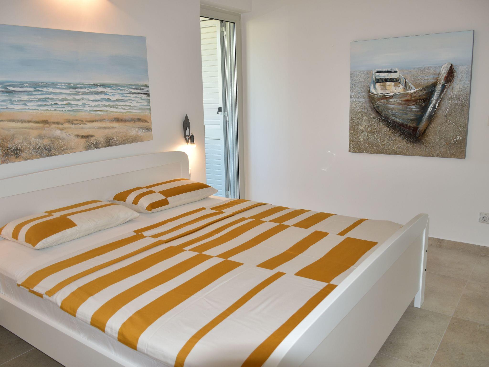 The house is modern and beautifully furnished, with a fully equipped kitchen with an oven, dishwasher, ceramic hob, toaster, and microwave. A coffee maker is also included. One bedroom is located on the ground floor with a separate shower, toilet, and sink, and a separate TV. The second bedroom is on the floor with access to the terrace, where there is also a pull-out sofa. The bathroom on the ground floor includes a shower, toilet, sink, bidet, and a washing machine. The living area has a TV and comfortable furniture. The entrance to the house is private and separate.