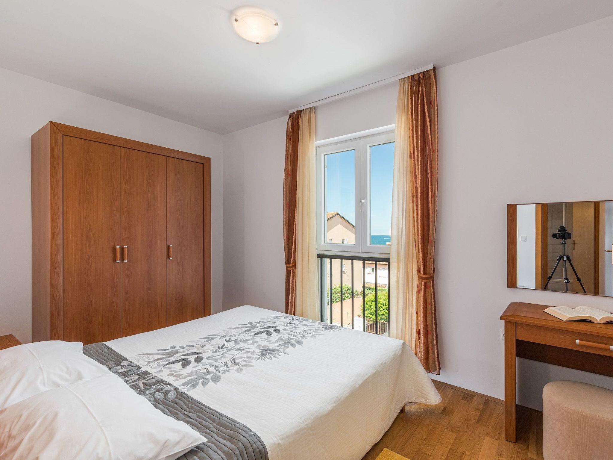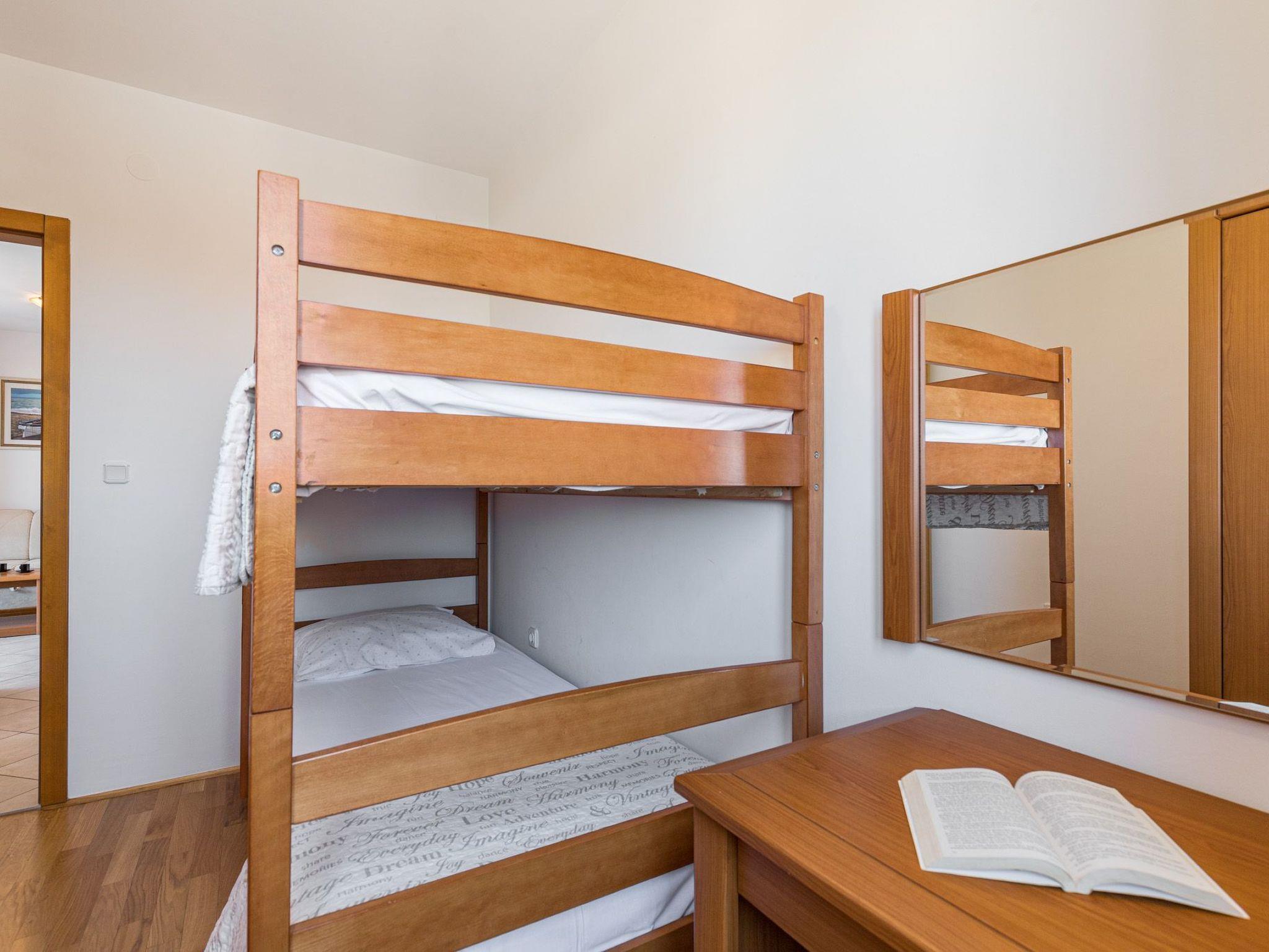 This holiday apartment is in a house just 100 metres from the beach. It is a large apartment of 67m² for up to six people. The living room has a comfortable sofa bed and satellite TV. The fully-equipped kitchen (oven, fridge, freezer, microwave, coffee machine), the bedroom with a double bed, another bedroom with a bunk bed and the large bathroom with a toilet provide everything you need. The apartment has air conditioning and heating.