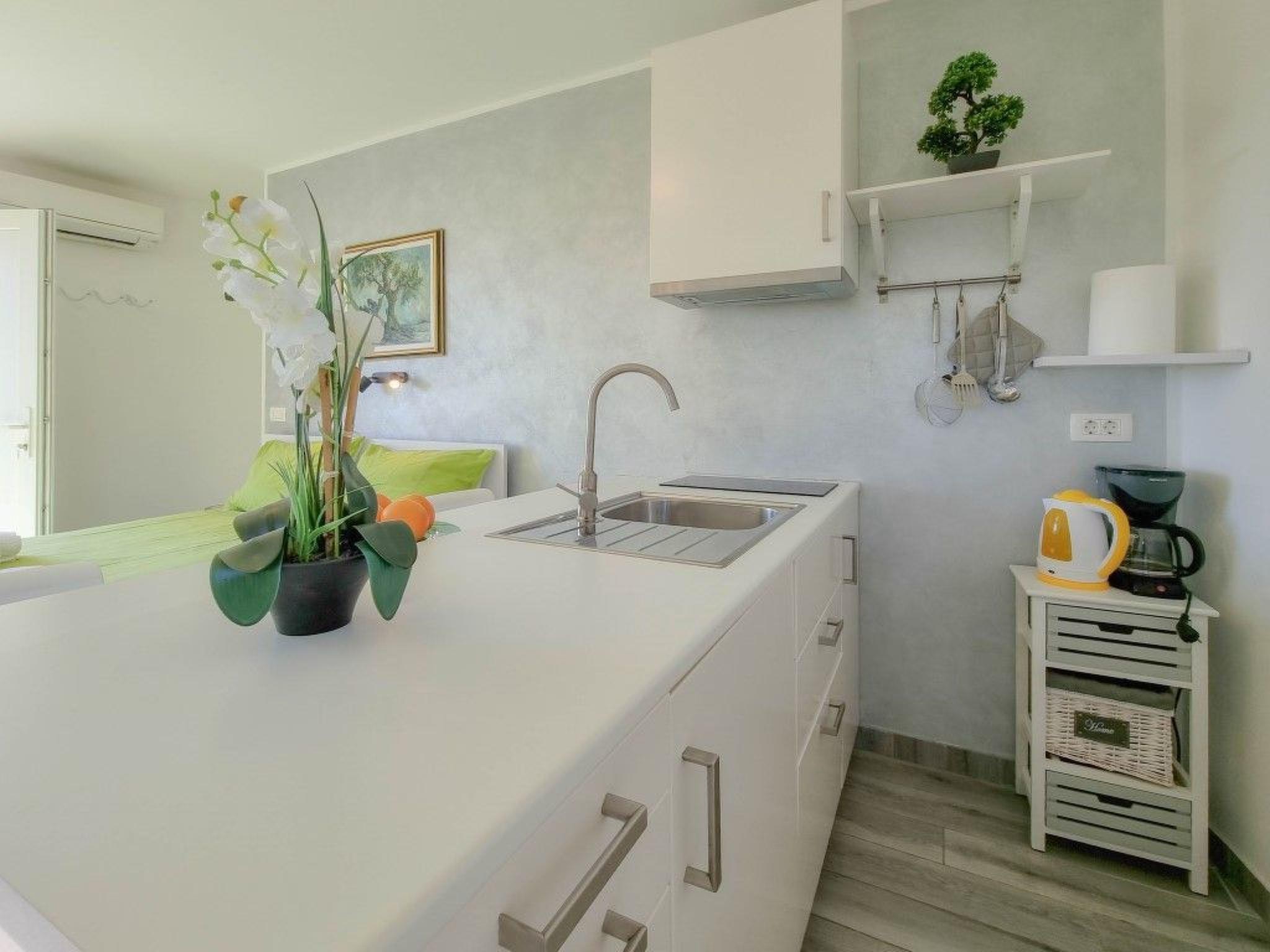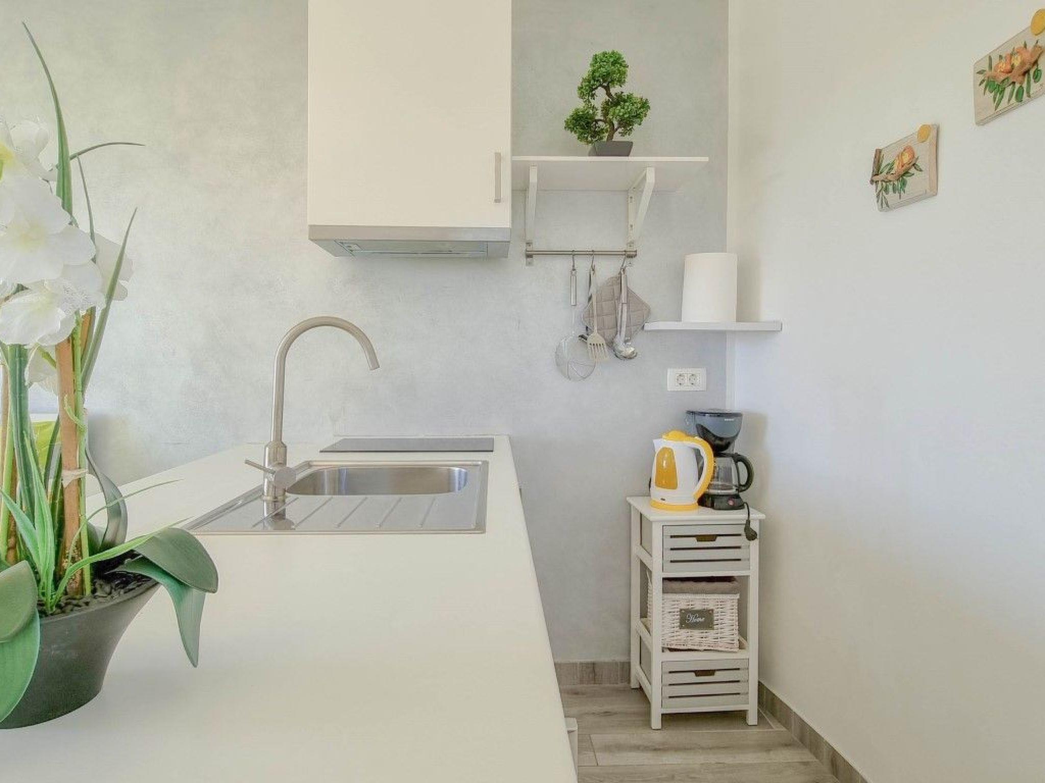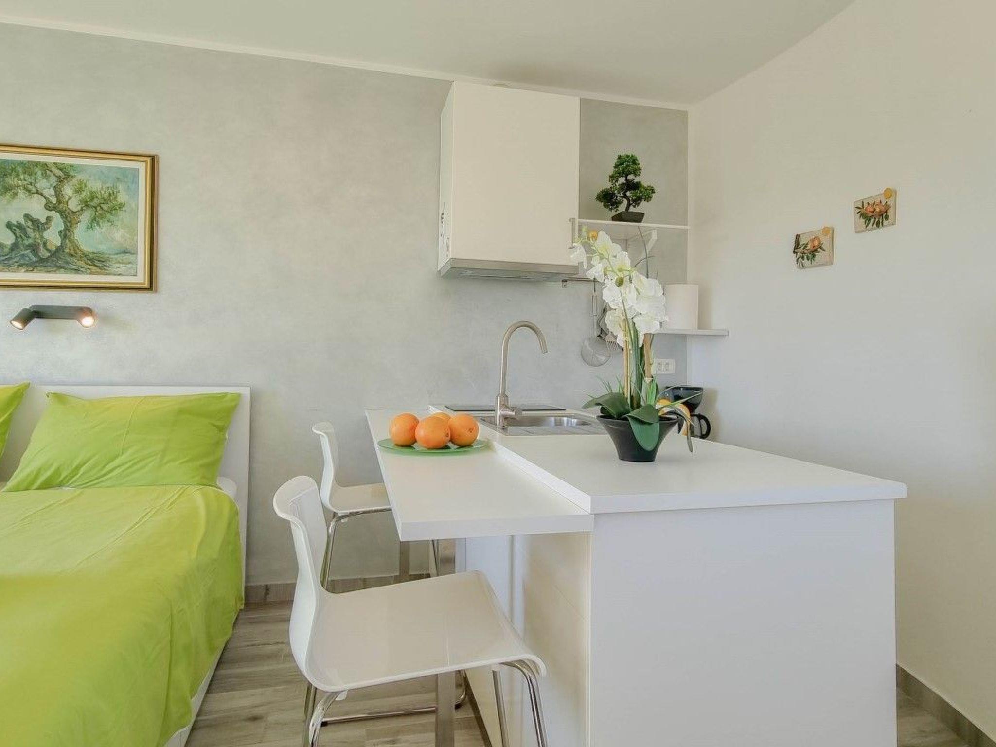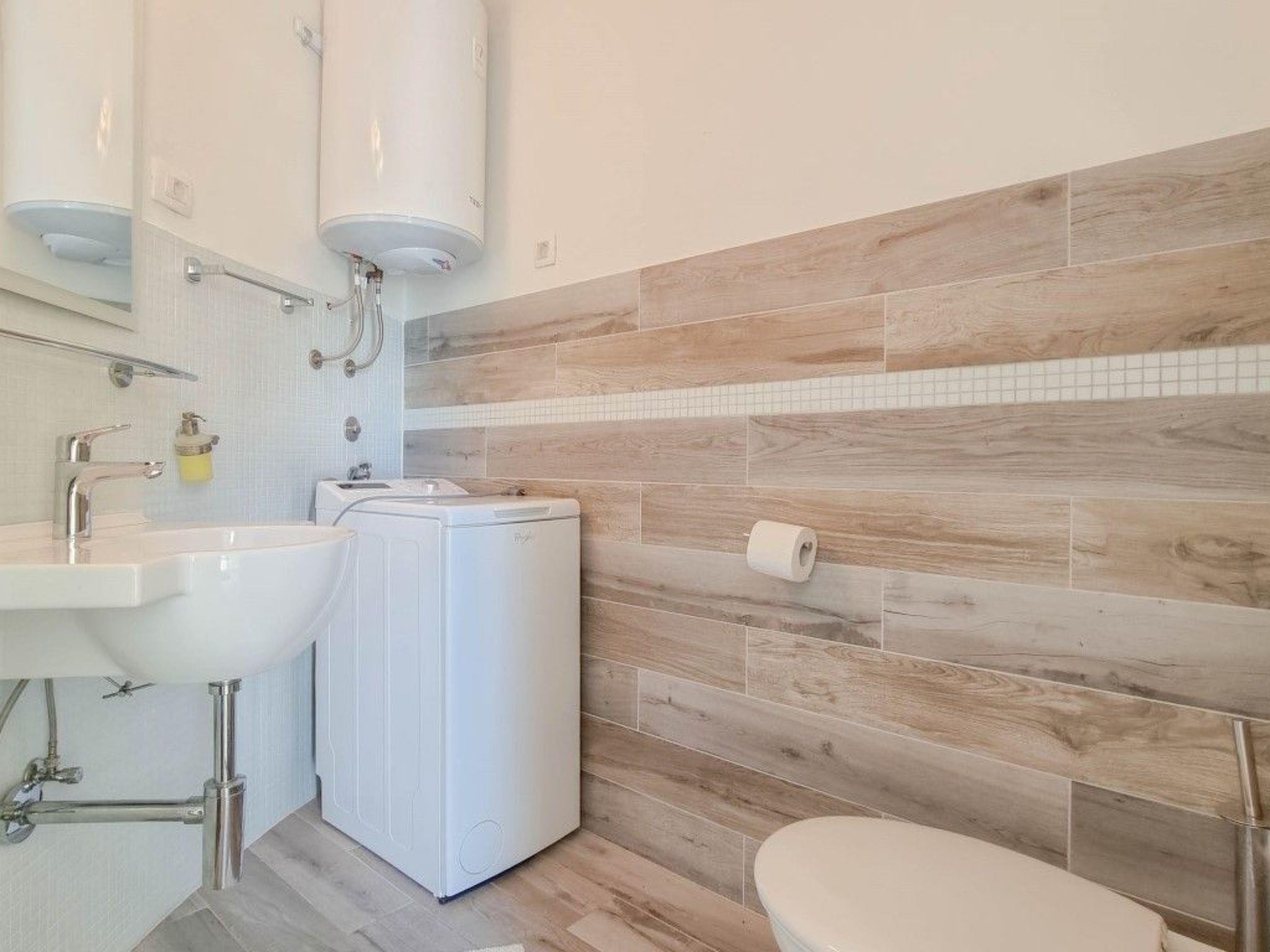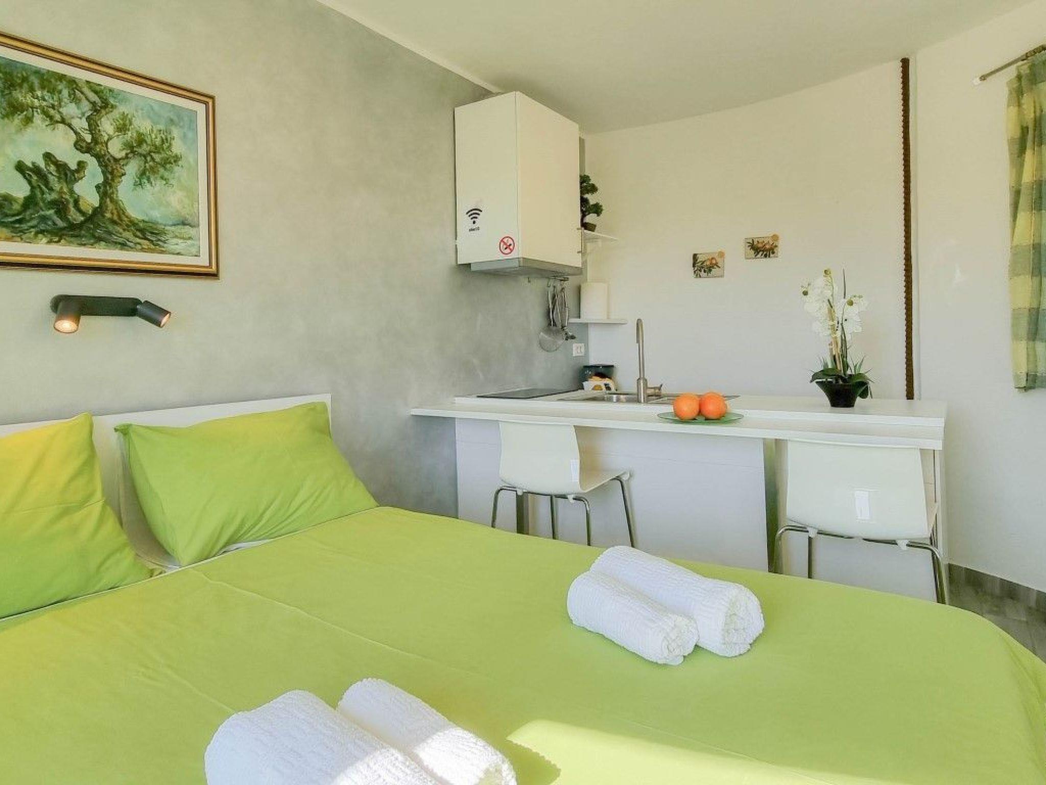 The interior of this inviting apartment is thoughtfully designed to cater to all your needs. The heart of the space is a comfortable bedroom that seamlessly integrates a well-equipped kitchen. Here, culinary enthusiasts can make use of the electric stove, refrigerator, and coffee maker to whip up delicious meals. The apartment is partially air-conditioned, ensuring your comfort during those warm Istrian days. Besides, the inclusion of a washing machine for your exclusive use adds a touch of home-like convenience to your holiday experience.