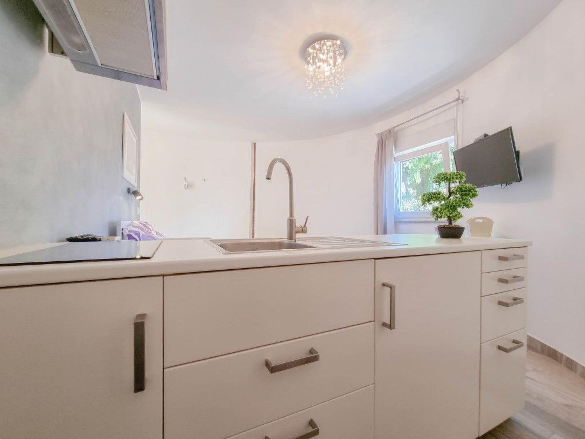 The apartment's location is exceptionally convenient, with the beach, sea, and a range of water sports activities all within approximately 1000 meters. For daily needs, a grocery store is just 800 meters away. The vibrant town center of Novigrad, offering a deeper glimpse into the Istrian way of life, is a short drive of 3500 meters, making it easy to explore local cuisine, culture, and entertainment options.