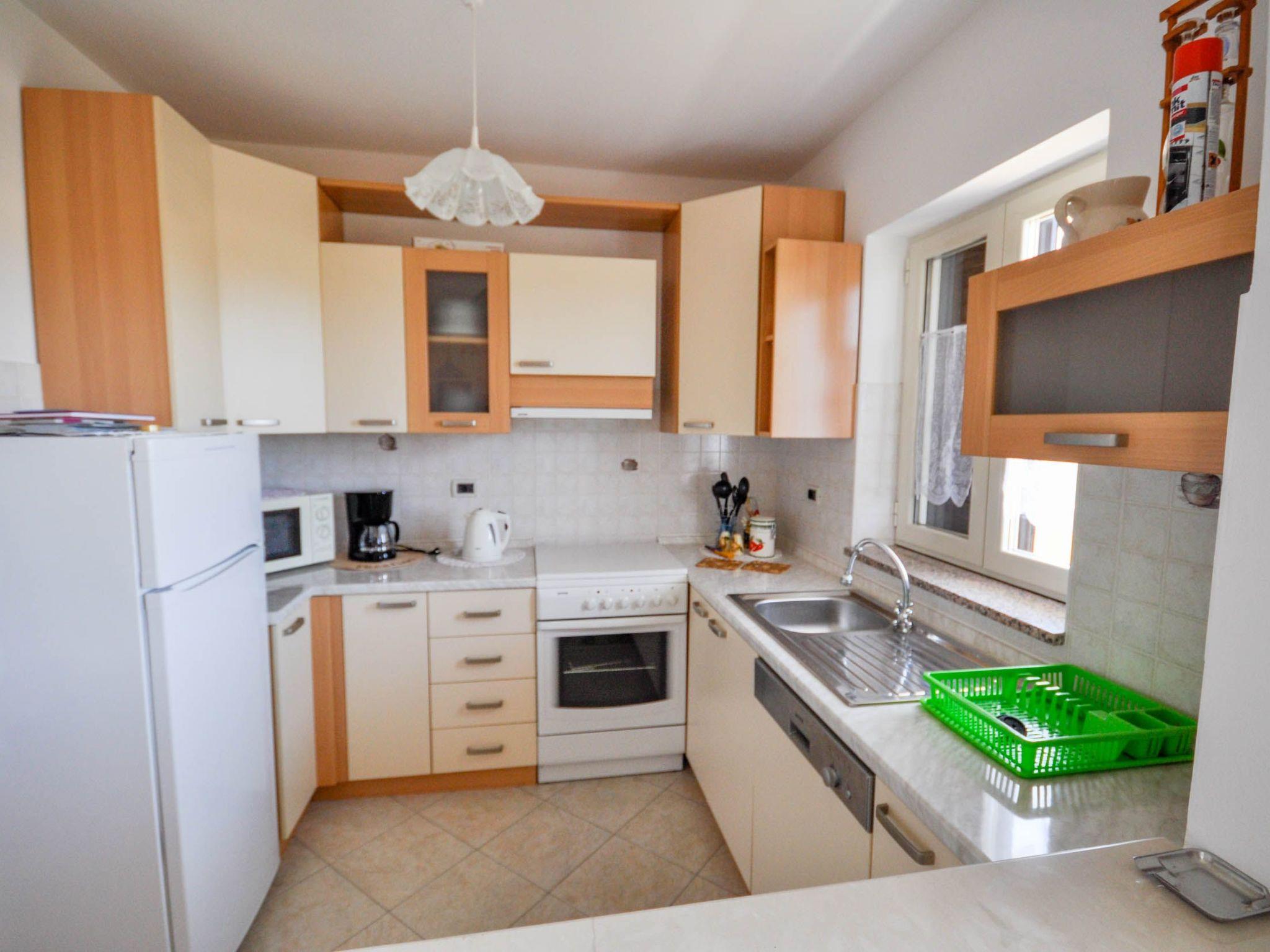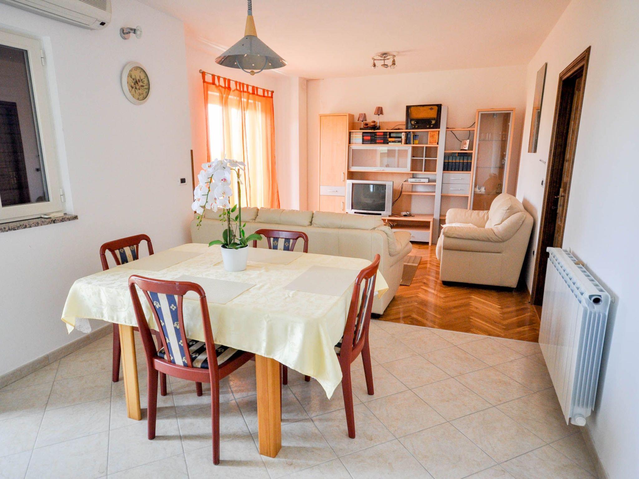 Inside, the apartment is thoughtfully equipped to ensure a comfortable stay. The two inviting bedrooms with double beds ensure that every guest enjoys a restful night's sleep. A well-appointed bathroom with a shower caters to your refreshment needs. The heart of the apartment is the combined living and dining area, complete with a kitchen that boasts all the essentials for meal preparation, including a coffee machine, dishwasher, and electric kettle. The inclusion of air conditioning in parts of the apartment guarantees cool, relaxing indoors even on the warm Istrian days.