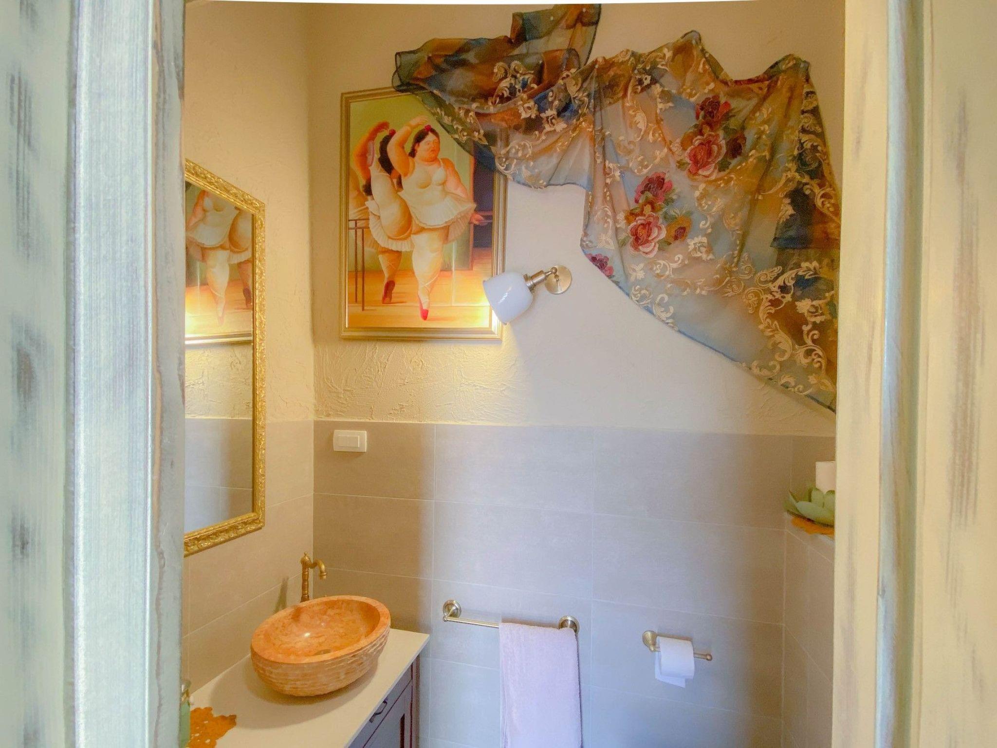 Stepping inside Villa Romana reveals a thoughtfully appointed interior designed to cater to every need. The house is split into a welcoming living area and three cozy bedrooms, each accompanied by its own bathroom, ensuring privacy and convenience for all guests. Additionally, a separate toilet adds to the practicality of the house. Key amenities such as a gas cooker, coffee machine, air conditioning in certain areas, and a washing machine for exclusive use, underscore the villa's commitment to providing a hassle-free stay. The inclusion of SAT-TV and WLAN ensures entertainment and connectivity are always at hand.
