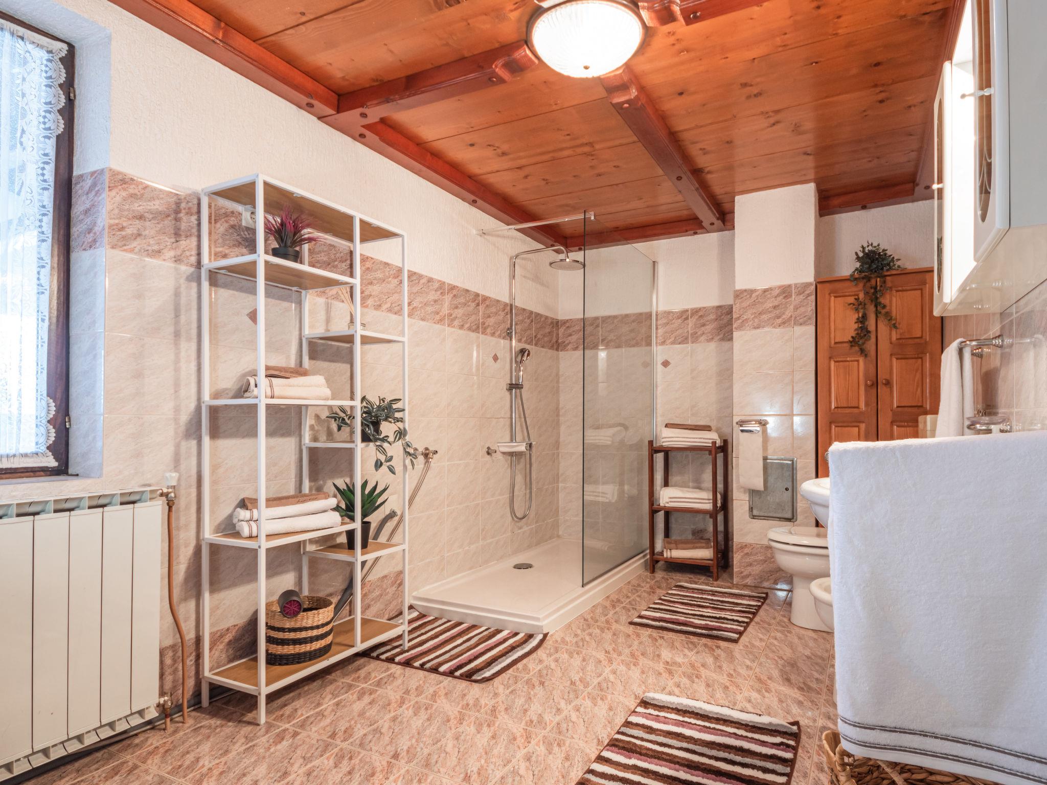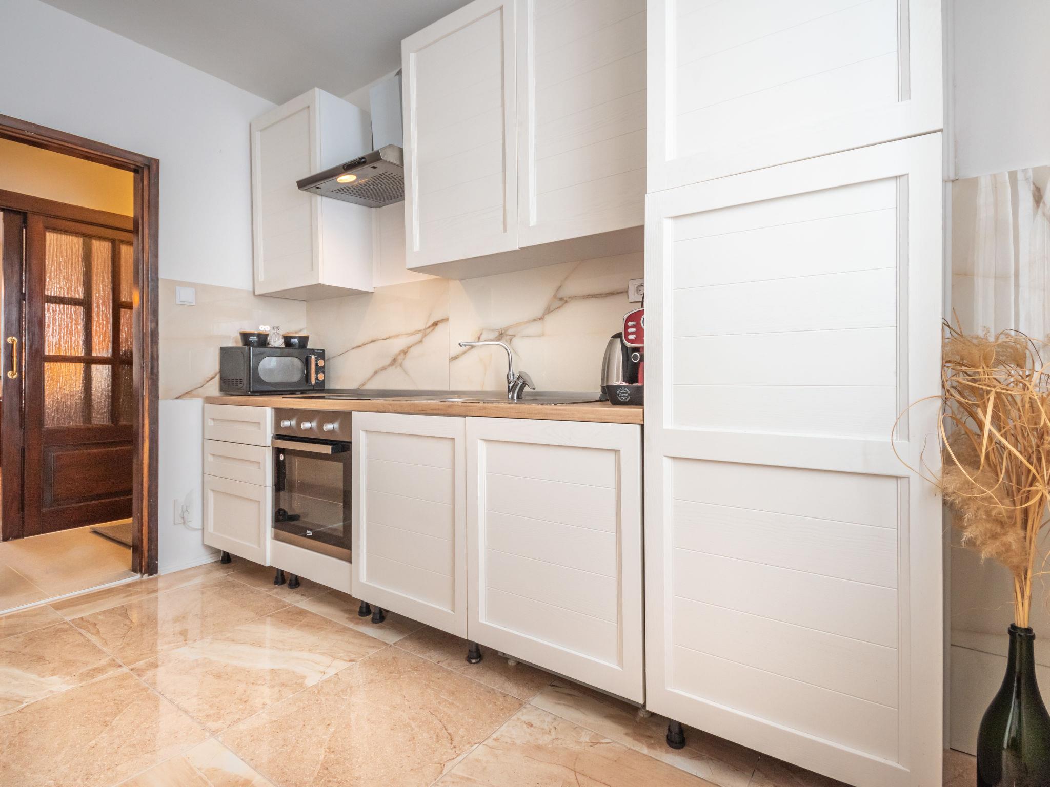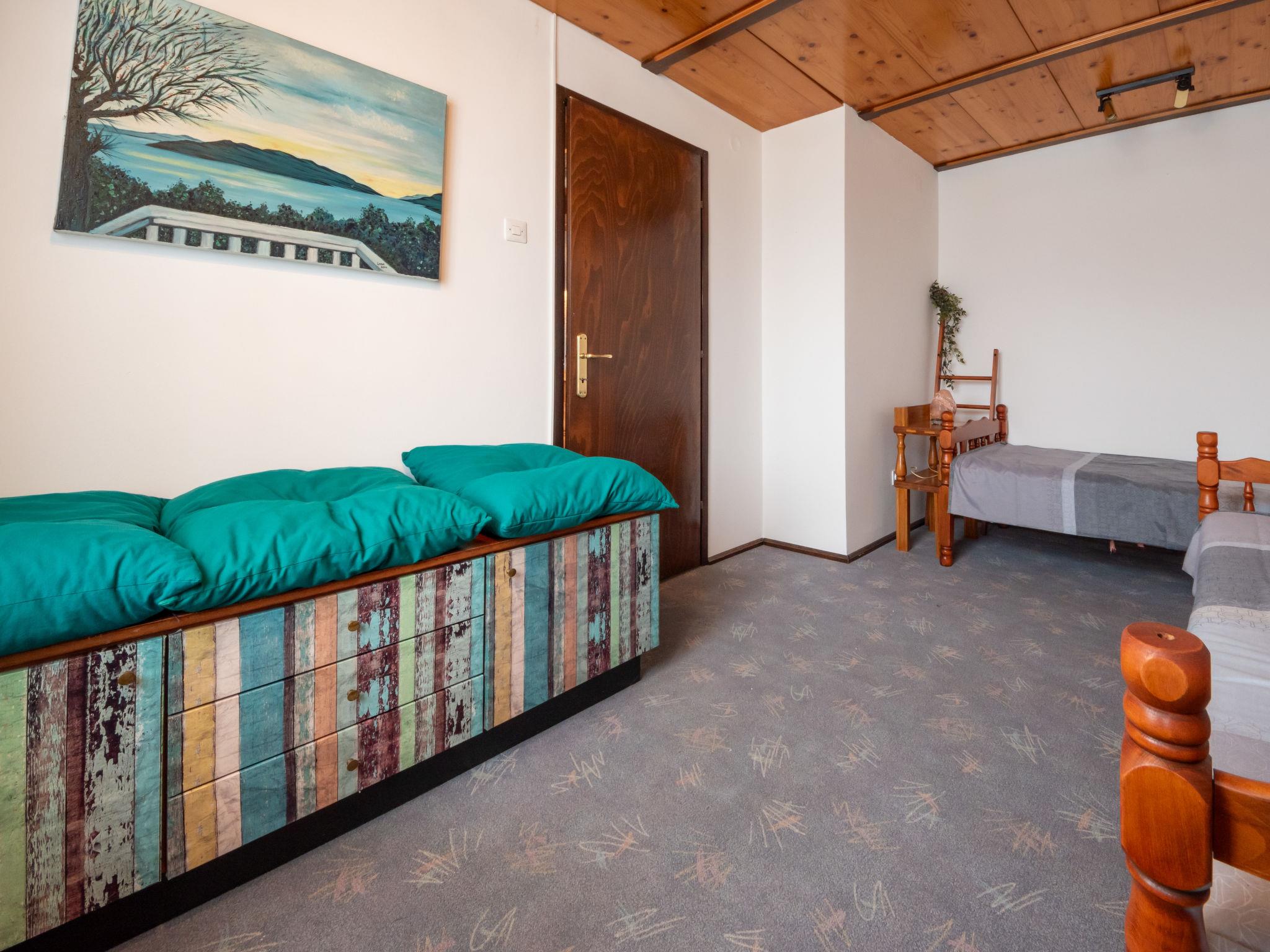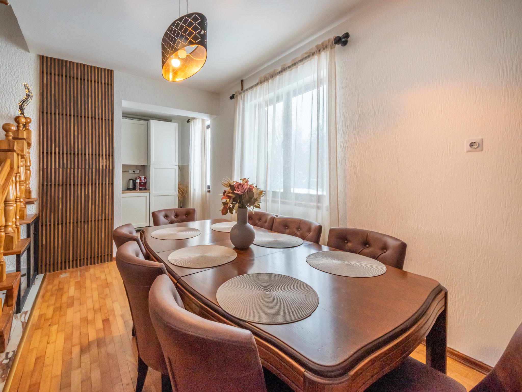 6-room house 290 m2 on 2 levels. Spacious: living/dining room with open-hearth fireplace, digital TV and air conditioning. Exit to the garden. Open kitchen (oven, dishwasher, 4 induction hot plates, kettle, microwave, freezer, electric coffee machine). Sep. WC. Upper floor: entrance hall. Exit to the balcony. 1 room with 2 beds (90 cm, length 200 cm). 1 room with 3 beds (90 cm, length 200 cm). Exit to the balcony. 1 room with 1 double bed (180 cm, length 200 cm). 1 room with hydro massage bath and air conditioning. Playroom with digital TV. Shower/bidet/WC. Heating, air-conditioning (extra). Balcony 10 m2. Balcony furniture. Beautiful view of the mountains. Facilities: washing machine, dryer, safe. Internet (WiFi, free). Suitable for families. Maximum 1 pet/ dog allowed. In the house: playstation.