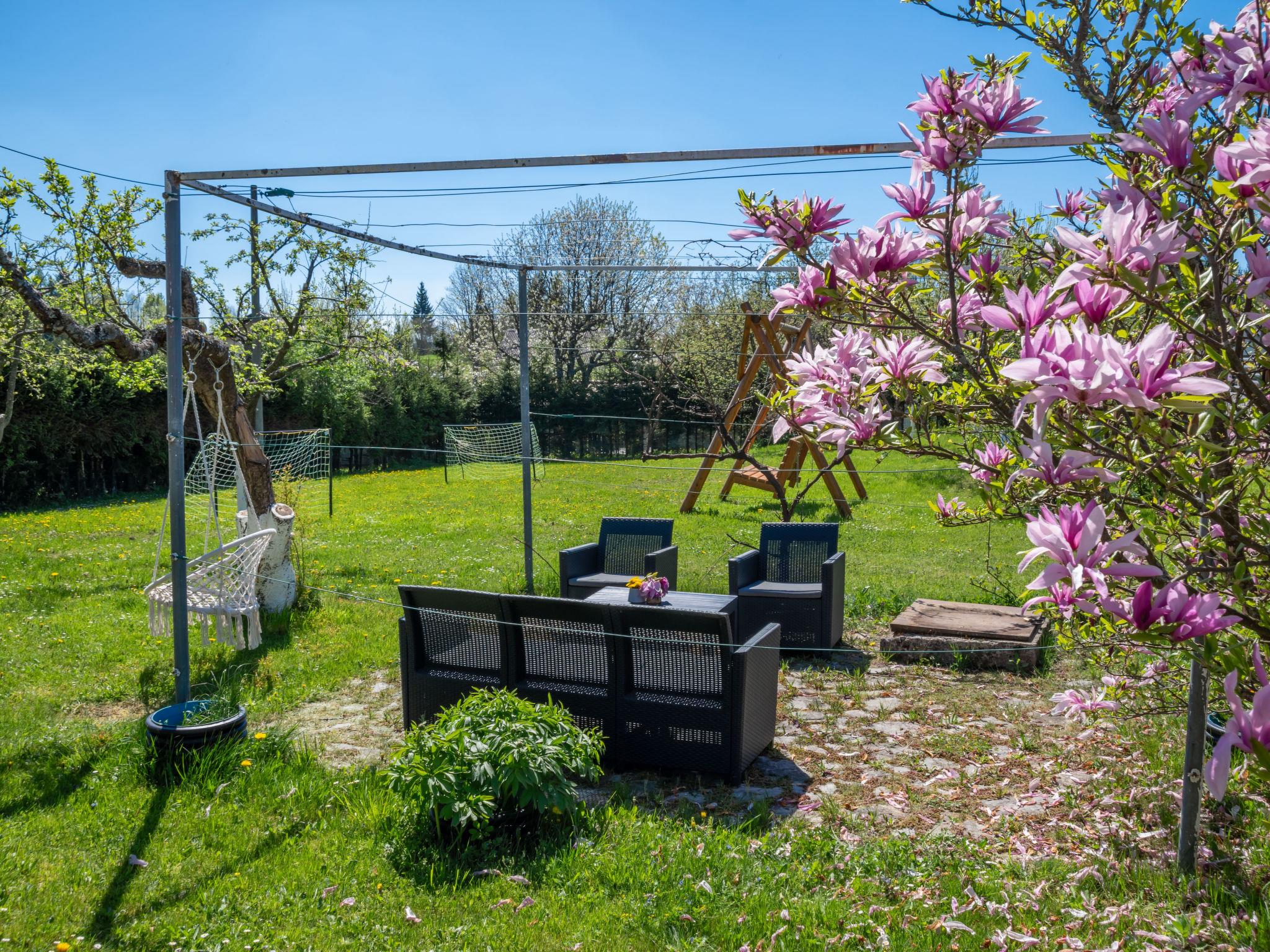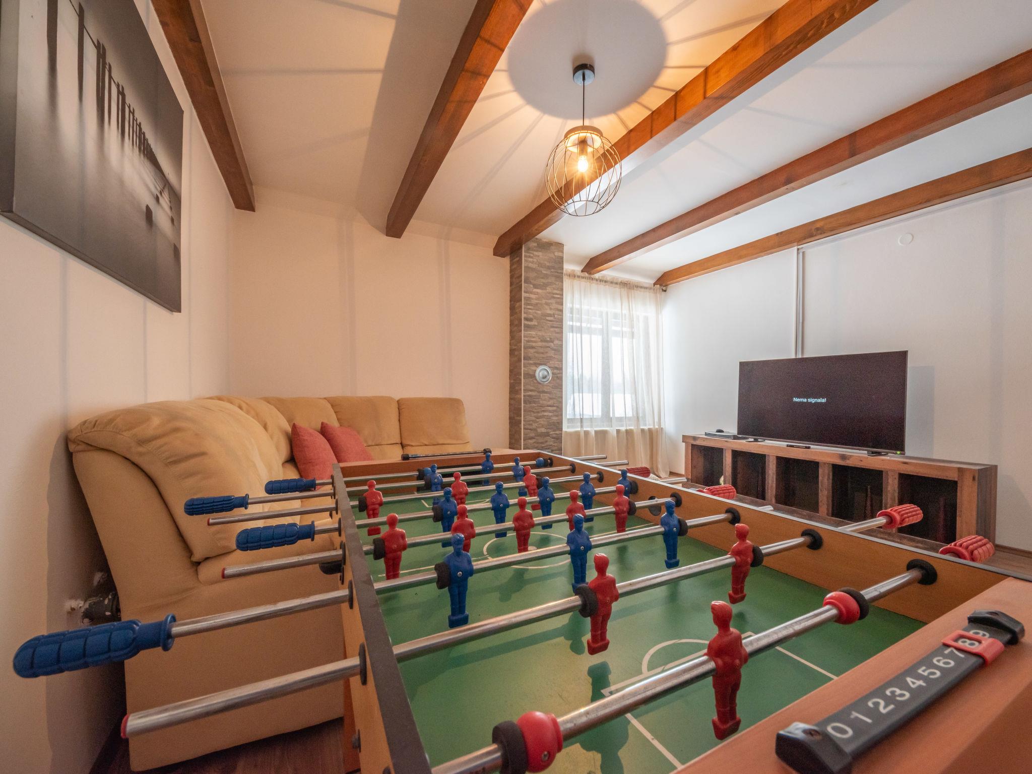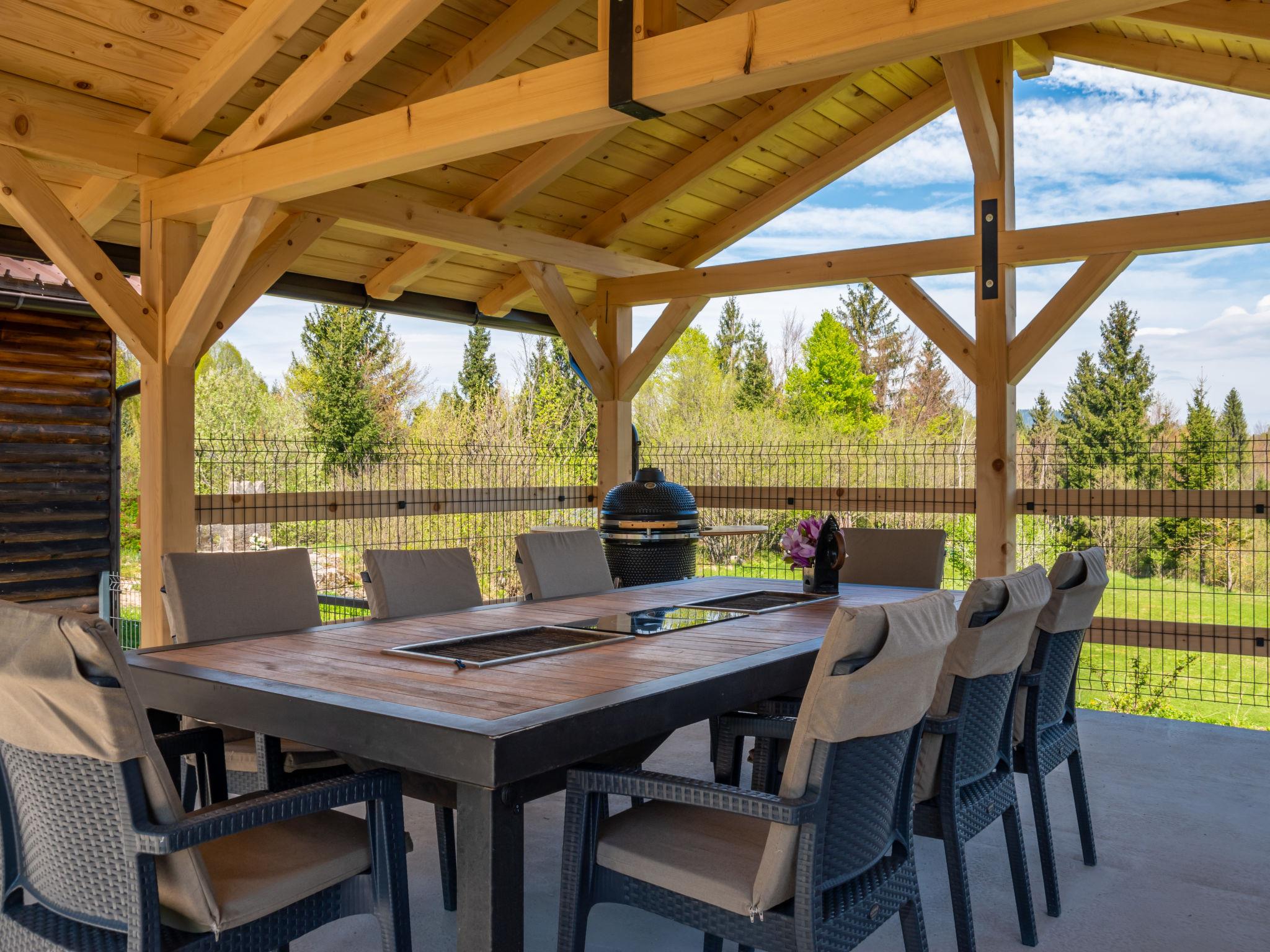 Parg 5 km from Cabar: Comfortable single-family house "Relax & Play", 2 storeys, renovated in 2023, surrounded by trees and meadows. 43 km from the centre of Delnice, 73 km from the centre of Rijeka, 73 km from the centre of Ljubljana, in a secluded, quiet, elevated position, 500 m from the edge of the forest, 5.2 km from the river, in a cul-de-sac, in the countryside. Private: property 3'000 m2, beautiful, well-kept garden 2'000 m2 (fenced) with flowers and trees, meadow 600 m2 (fenced), indoor pool angular, heated, with privacy (8 x 3 m, depth 140 cm, seasonal availability: 01.Jan. - 31.Dec.). WC in the pool area, patio, terrace, garden furniture, fireplace, barbecue house. In the house: internet access, sauna, hot tub (all included), relaxation room, billiard table, playroom, table football, central heating system, washing machine, tumble dryer, heating available only from 01.Oct. - 15.May.. Parking (for 3 cars) at the house on the premises. Shop 3.8 km, supermarket 5 km, restaurant 13 km, bakery 5 km, bus stop 4.1 km. Walking paths from the house 200 m, cycle lane 250 m, fishing possibilities 5 km. Nearby attractions: Križna jama cave 28 km, Postojnska jama cave 52 km, Risnjak national park 33 km, Zeleni vir 51 km, CROmedo Bear Photo Hunting 500 m. Well-known lakes can easily be reached: Cerkniško jezero lake 38 km, Bloško jezero lake 35 km. Groups of teenagers on request only. Sauna room on the ground floor. Indoor heated counter flow swimming pool, sunbeds. Both accessible via hallway, without exiting the house. Relax room / wine cellar with pizza oven and assortment of fine wines, charge according to consumption. Firepit.