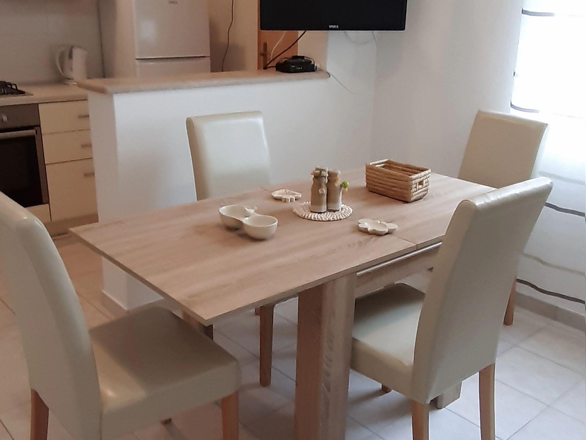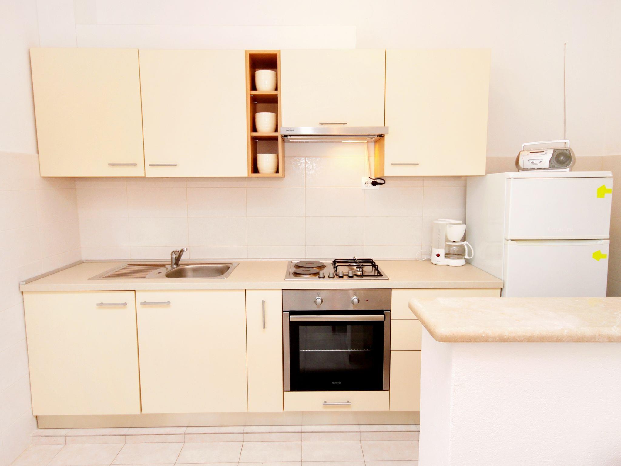 Ferienwohnung bietet Platz für 4 Gäste. Die Betten sind in Schlafzimmern, die es 2 gibt, innerhalb einer Gesamtfläche von 45m2, angeordnet. Die Gäste haben eine eigene Terrasse zur Verfügung, auf der sie in warmen Sommernächten genießen können. Das Apartment bietet Meerblick. IM PREIS INBEGRIFFEN: Kurtaxe, Endreinigung, Klimatisierung, Parkplatz, Internet, Bootsanlegeplatz, Bügeleisen, Bügelbrett, Föhn, Sonnenschirm, Liegestühle. VERBINDLICHE ZUSÄTZLICHE KOSTEN: Aufzahlung für Kurzaufenthalte (prozentualer Zuschlag pro Nächtigungsanzahl: 30% - 1, 20% - 2, 10% - 3). Die Verfügbarkeit zusätzlicher Dienstleistungen in Ihrem reservierten Termin und die Preise derselben (falls nicht aufgeführt) müssen im Voraus überprüft werden. Zusätzliche Dienstleistungen die in der Zahlungsaufforderung nicht aufgeführt sind werden direkt beim Vermieter bezahlt, angenommen der Gast nutzt auch diese.