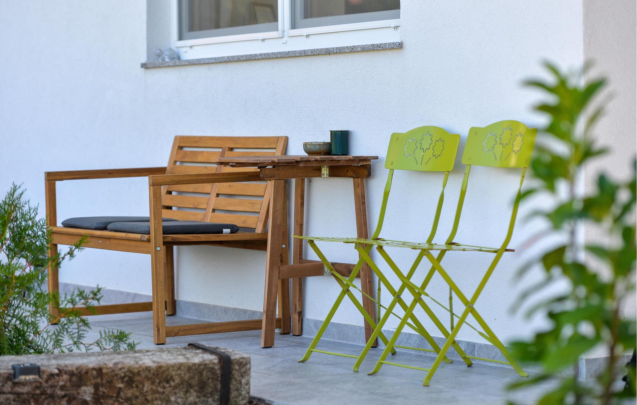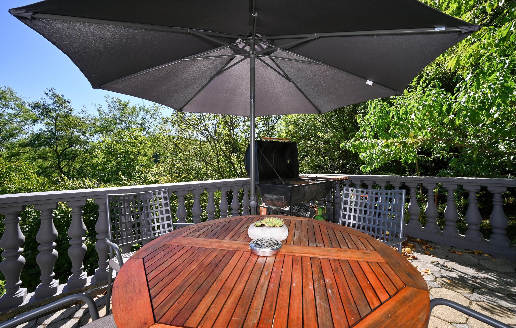 Den velholdte have er en idyllisk oase af fred, hvor børnene kan boltre sig med spændende legemuligheder, mens I genoplader batterierne i liggestolene. Spis på terrassen med udsigt over det grønne, og glæd jer til stemningsfulde aftener ved bålstedet eller grillen.