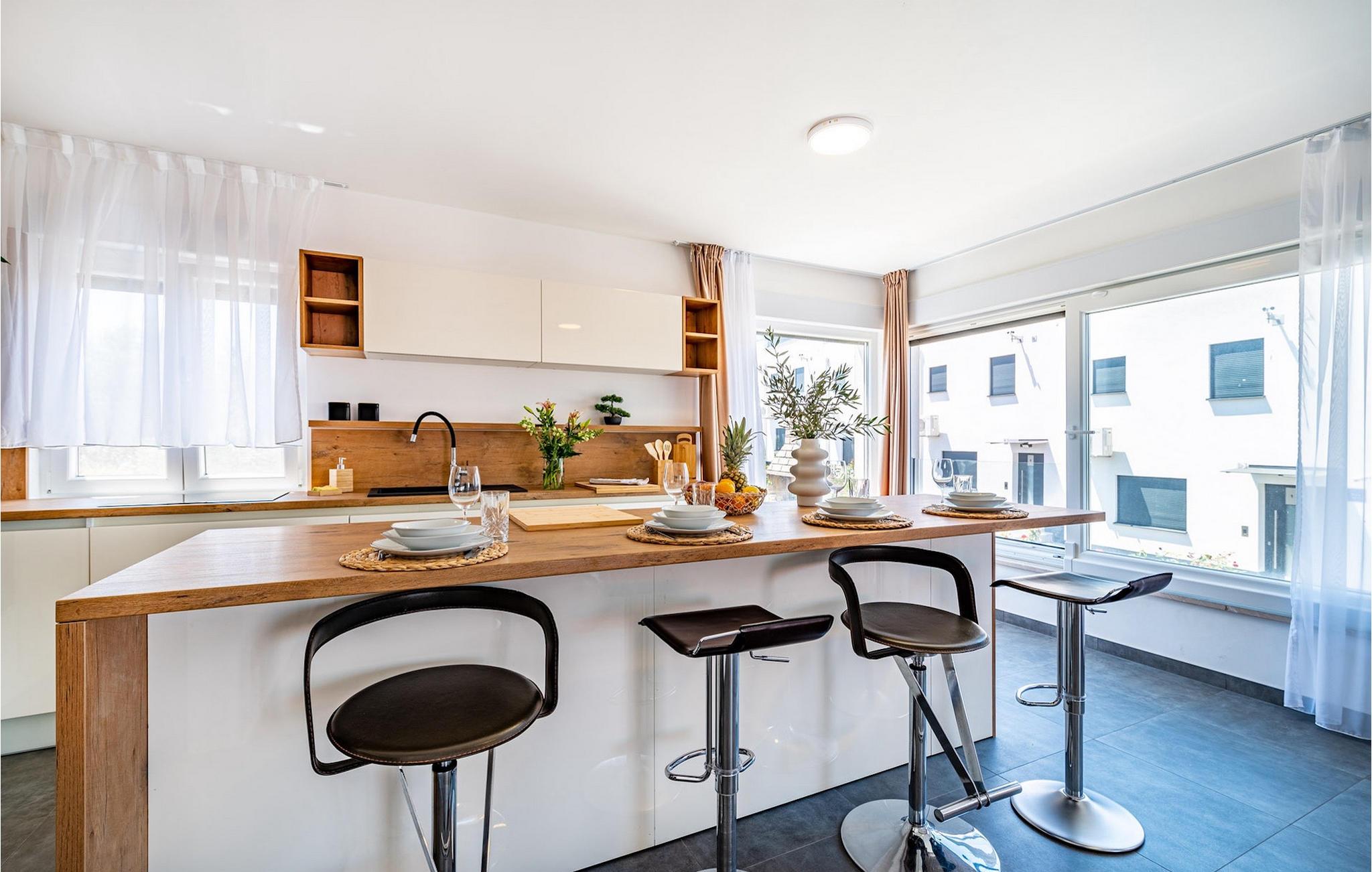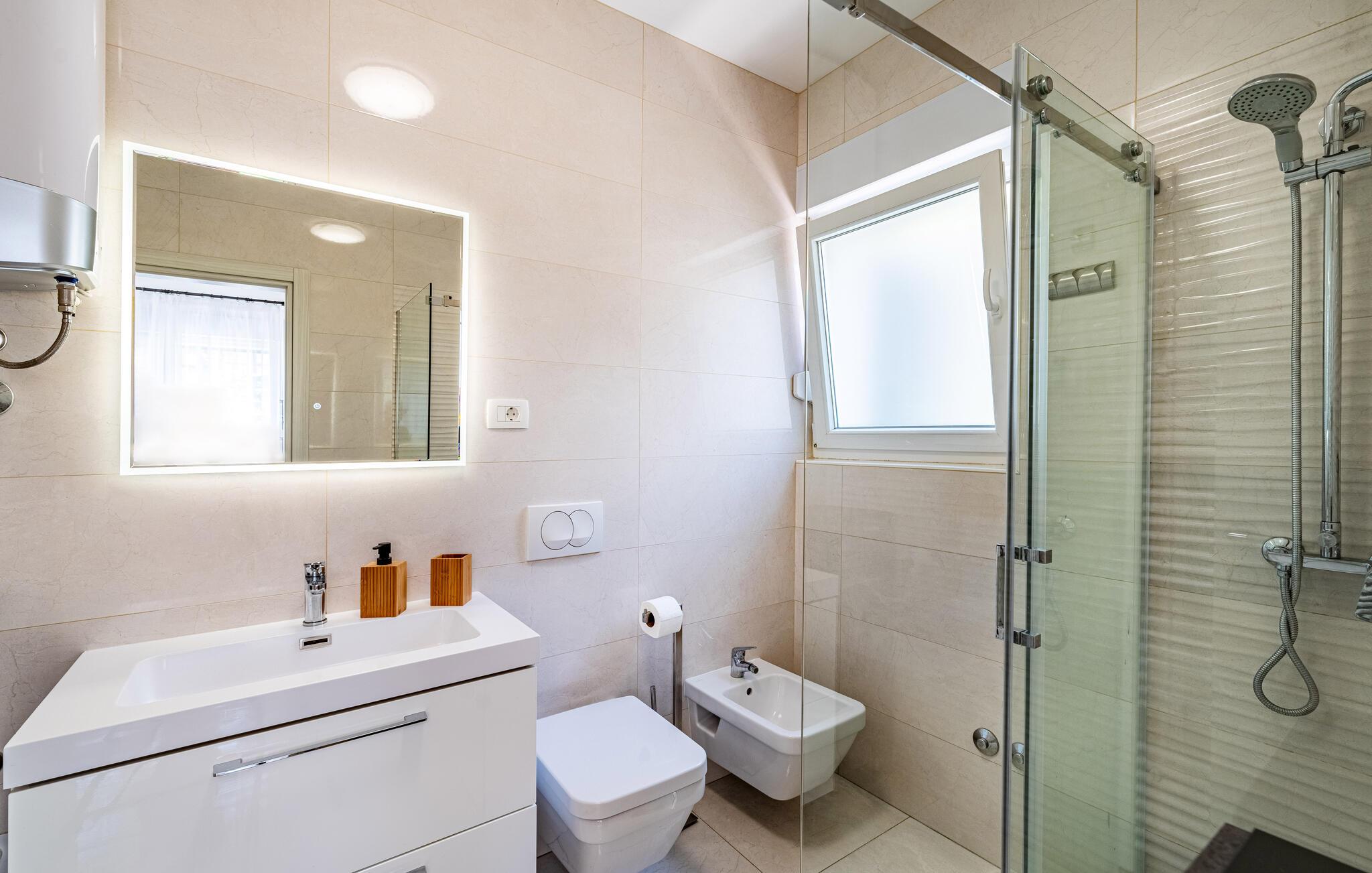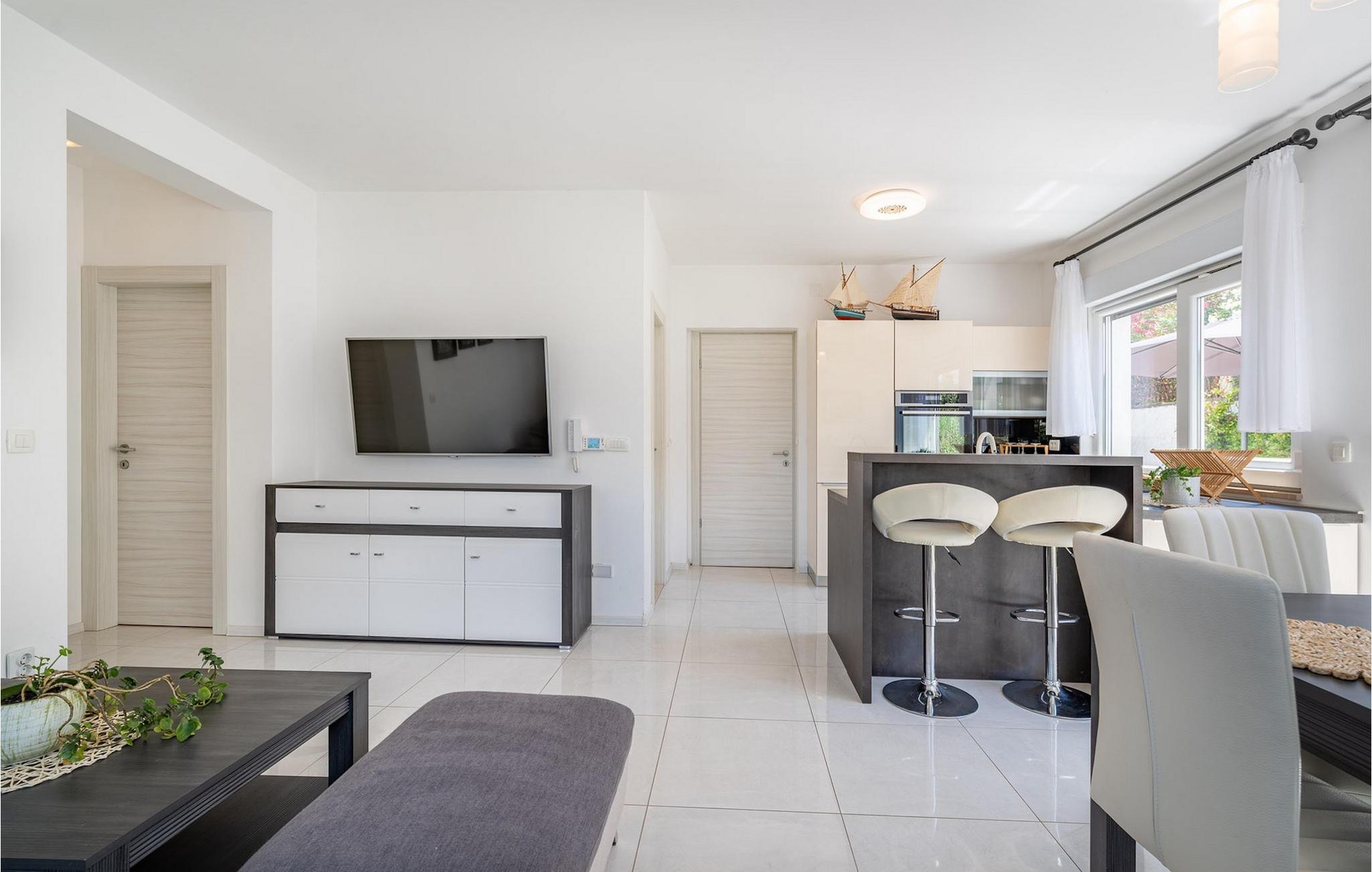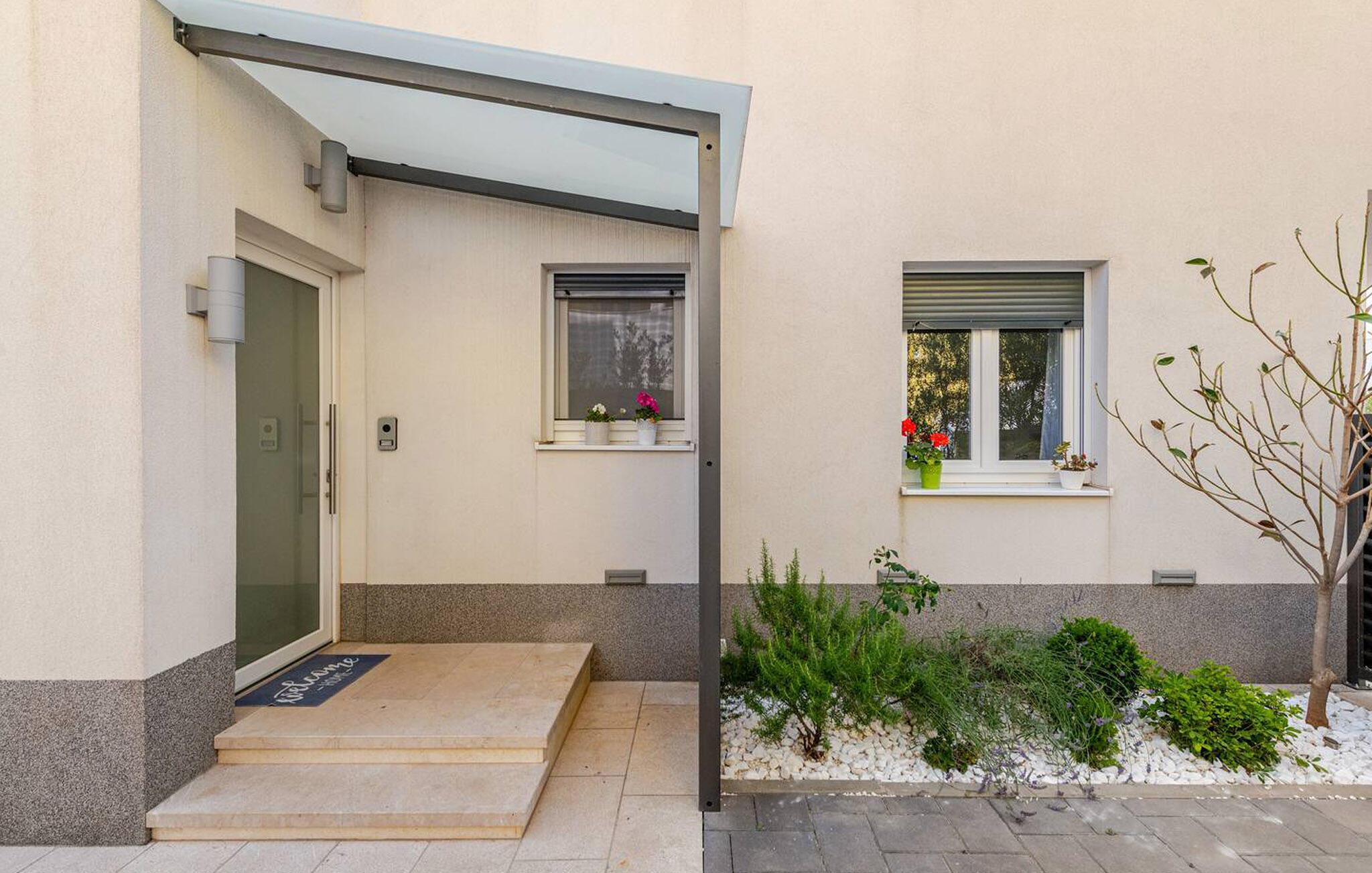 Wenn Sie auf der Suche nach einem schönen Ferienhaus in Meeresnähe sind, in dem Sie sich entspannen und den Alltagsstress loslassen können, ist die Villa Rooftop Spa eine perfekte Wahl. Wie der Name schon sagt, ist das Highlight der Villa die Dachterrasse, auf der Sie eine grüne Oase finden können. Die Terrasse besteht aus einem Wellnessbereich mit Jacuzzi und Sonnenliegen, wo Sie sich entspannen und den herrlichen Meerblick genießen können. Nur wenige Schritte entfernt befindet sich ein schattiger Essbereich im Freien und ein Holzkohlegrill, der perfekte Ort für entspannte Abendessen mit Ihren Liebsten. Das Innere dieser zweistöckigen Villa ist in einem sehr gemütlichen Stil gehalten und vermittelt seinen Gästen ein Gefühl von Zuhause. Das Erdgeschoss besteht aus einer modernen und gut ausgestatteten Küche, einer Essecke, einem gemütlichen Wohnzimmer mit Schlafsofa und 2 Doppelschlafzimmern. Im Obergeschoss befinden sich eine geräumige Küche mit Essecke, ein gemütliches Wohnzimmer mit einem zusätzlichen Schlafsofa, ein Badezimmer mit Badewanne und ein Hauptschlafzimmer mit eigenem Bad. Die Villa ist perfekt für Familien oder Gruppen, die einen erholsamen Urlaub suchen, also verpassen Sie nicht diese Chance und buchen Sie die Villa Rooftop Spa gleich jetzt.Die charmante Villa Rooftop Spa befindet sich auf der Insel Ciovo, nicht weit von Trogir entfernt. Die Insel ist durch eine Brücke mit dem Festland verbunden, und Sie können dieses schöne Reiseziel sehr einfach und schnell erreichen. Während Trogir der Ort ist, an dem Sie nach Geschichte suchen und die alten Mauern, Gassen und den Geist des früheren Mediterrans bewundern können, ist Ciovo der Ort, an dem Sie Erholung, Unterhaltung, gutes Essen und Strände finden werden. Die beliebtesten Ausflugsziele befinden sich im Okrug Gornji und Okrug Donji, wo Sie auch die besten Restaurants finden. Im südwestlichen Teil der Insel finden Sie die schönen Kieselstrände Labadusa, Barbara und Kava, während im Nordwesten der beliebteste 2 km lange Strand "Okruška Copacabana" in Okrug Gornji liegt. Besuchen Sie die historische Stadt Trogir, die seit 1997 auf der UNESCO-Liste steht. Machen Sie einen Spaziergang durch die engen Gassen der Altstadt und erleben Sie ihre reiche Geschichte.