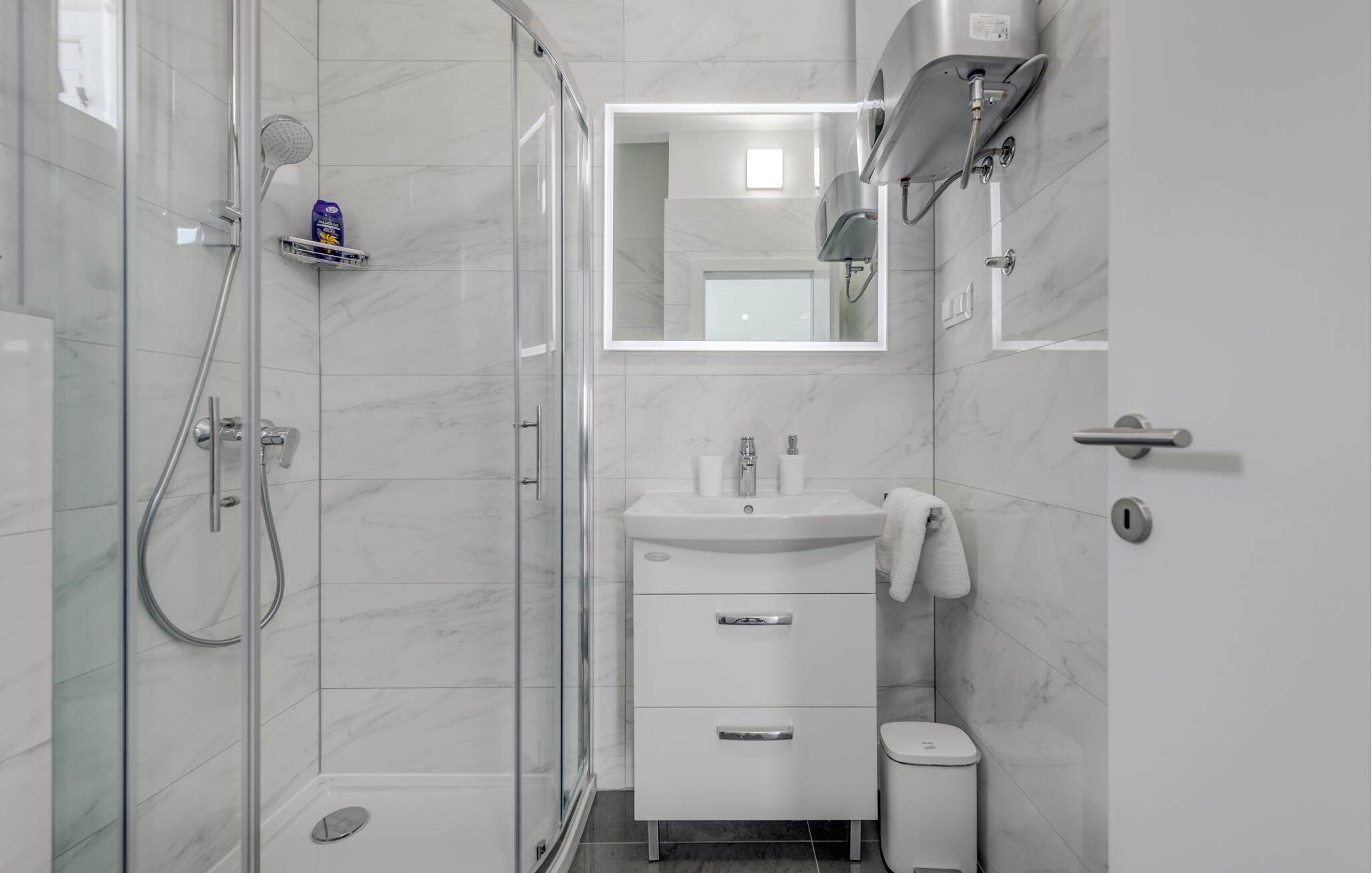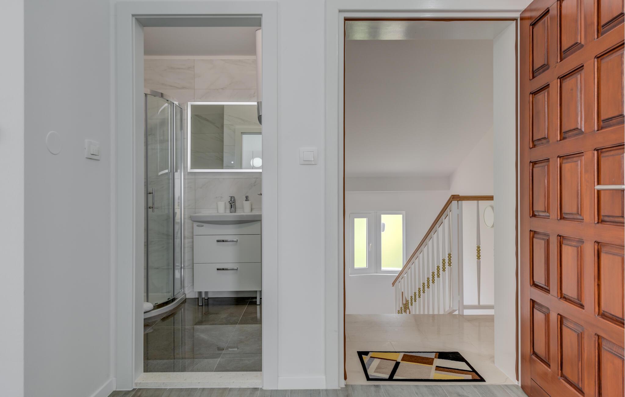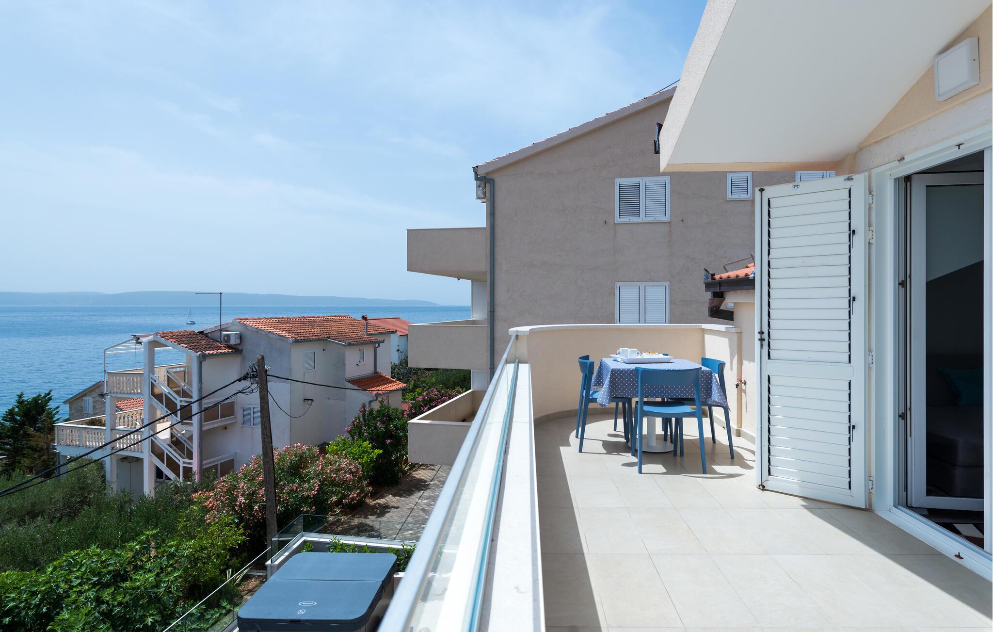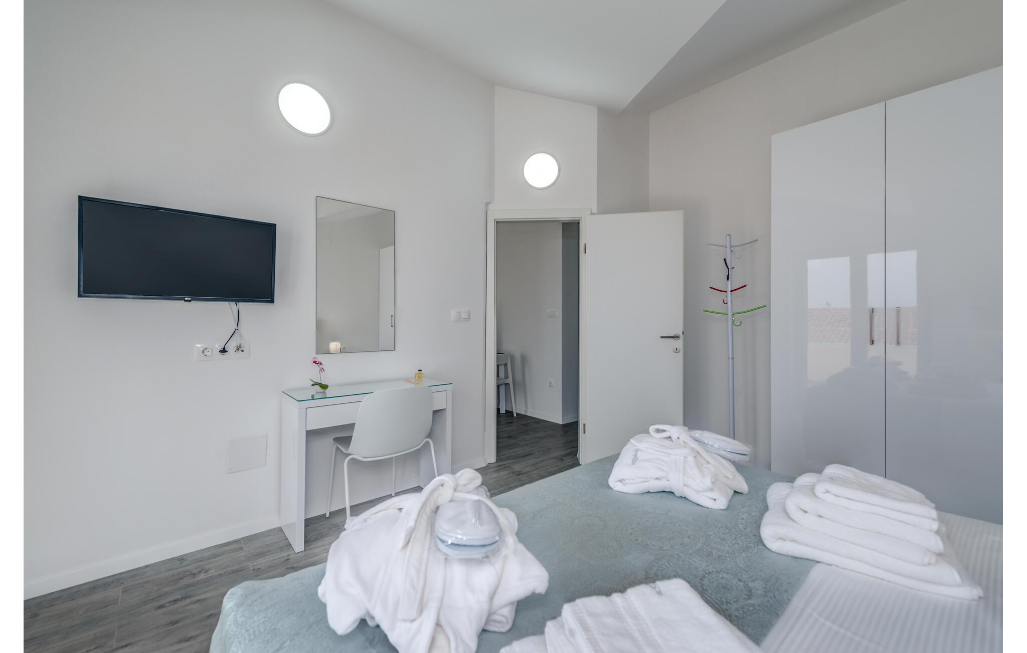Denne velholdte ferielejlighed på den solrige ø Ciovo har en lys og stilfuld atmosfære. Tilbered lækre måltider i det åbne køkken og tag plads ved det indbydende spisebord. Føl jer godt tilpas i den hyggelige sofa, stream en spændende film eller dediker jer til en god bog.