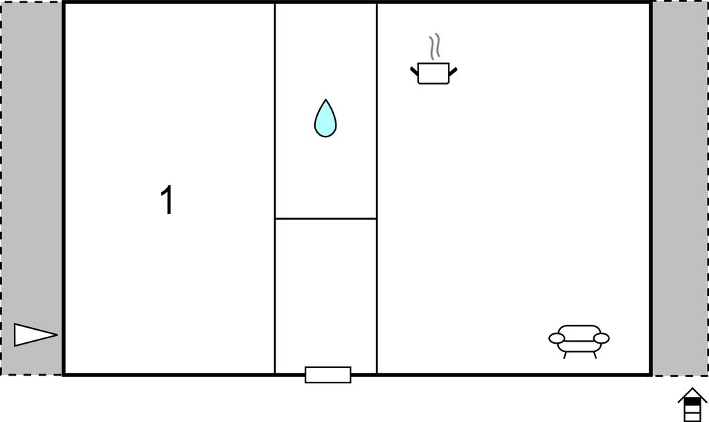 Opholdsstue/køkken - 2 Sovepladser. (Sofa, madras eller lignende).