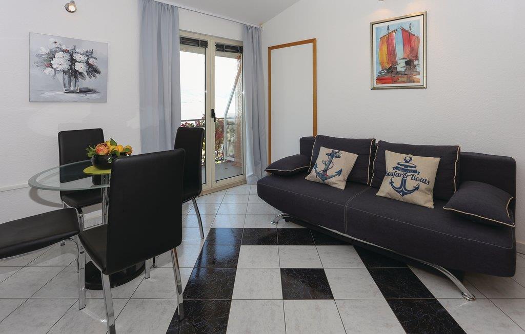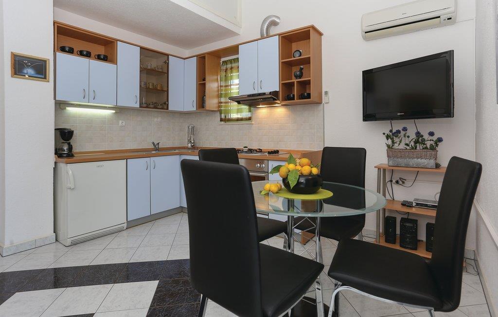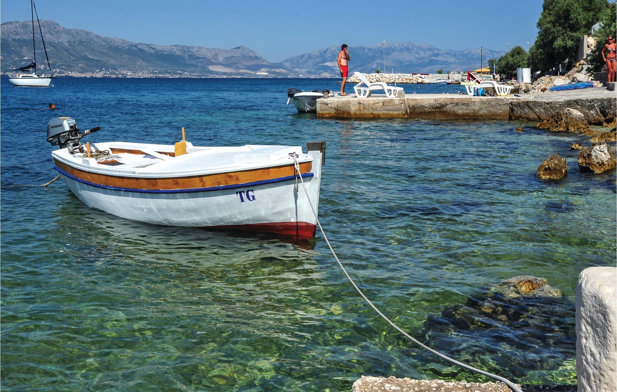 Den nærmeste kiesstrand ligger kun 100 m væk. Nyd den smukke natur og mangfoldigheden i byen Trogir, som har meget at byde på. Sæt jer ned på promenaden, nyd en forfriskende drink og lyt til bølgerne beroligende brus.