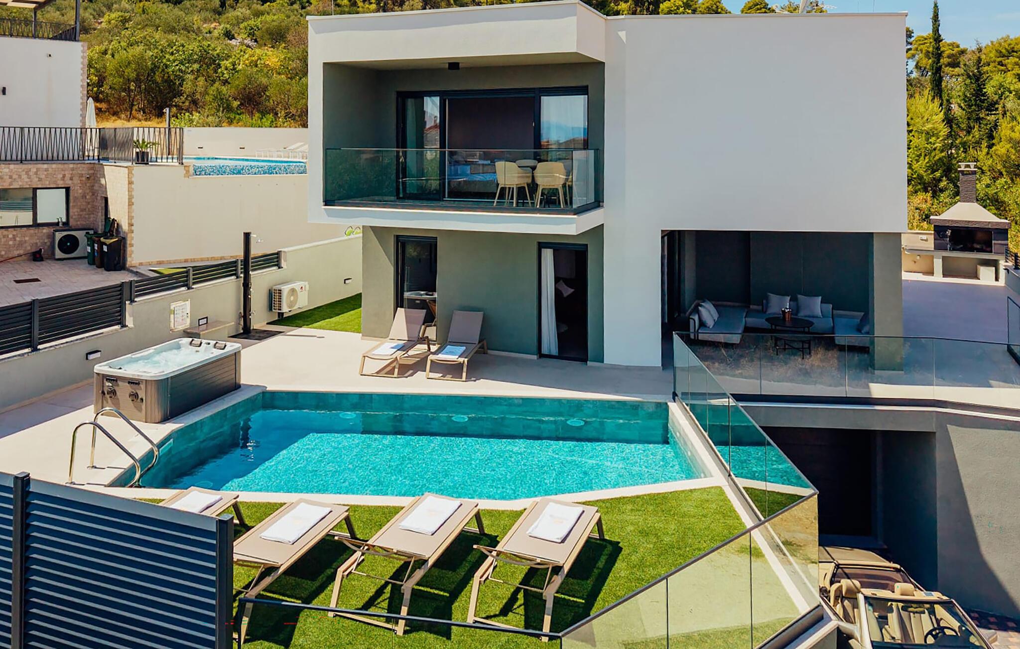 Nyd havudsigten fra dette komfortable feriehus med pool.