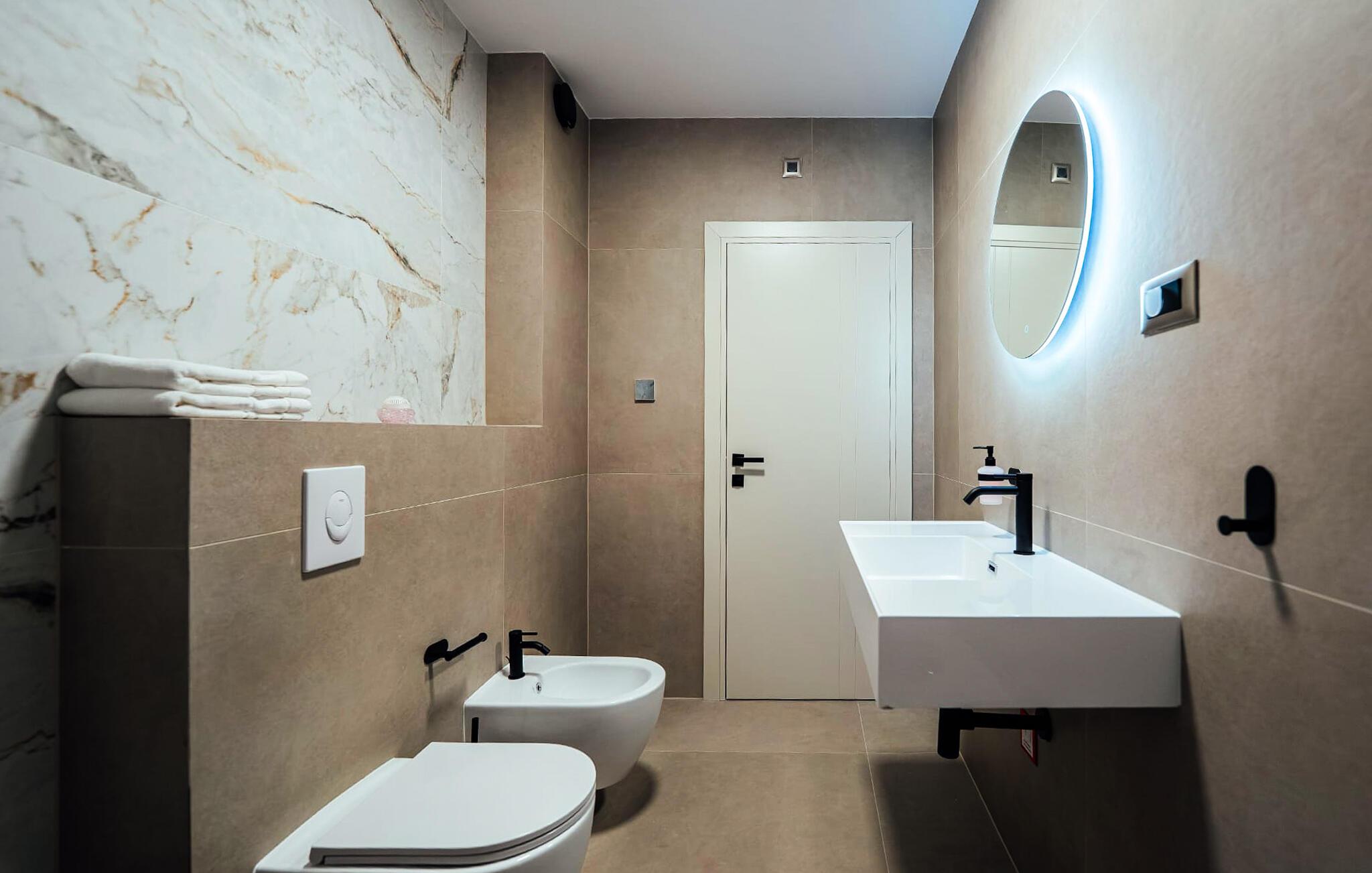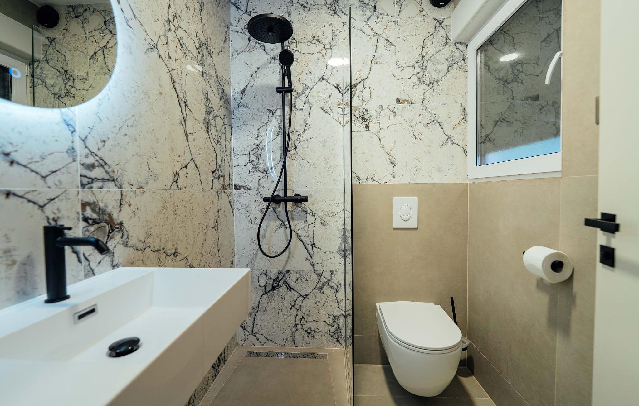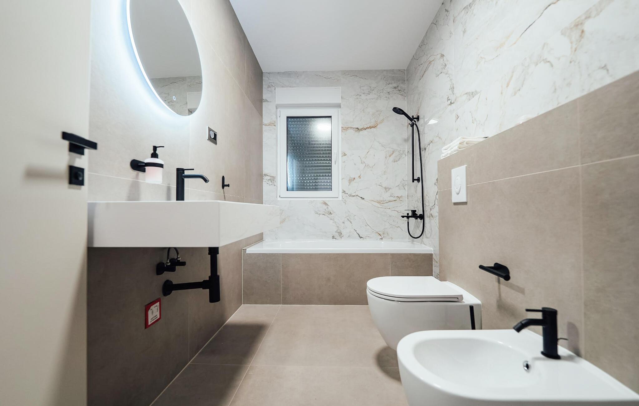 - WC. Varmt og koldt vand, Bruser og badekar