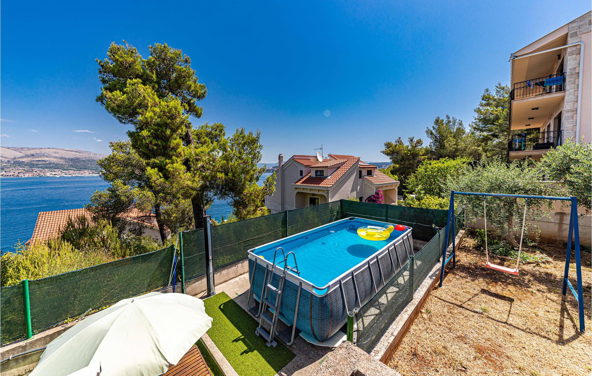 I nærheden ligger den historiske by Trogir, hvor i finder talrige seværdigheder og mange muligheder for underholdning. Derudover ligger Split og den internationale lufthavn i Split også i nærheden. Fra 2018, kan i tage en forfriskende dukkert i badebassinet.