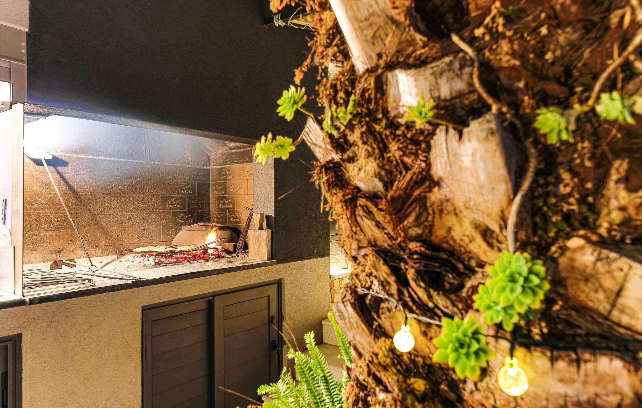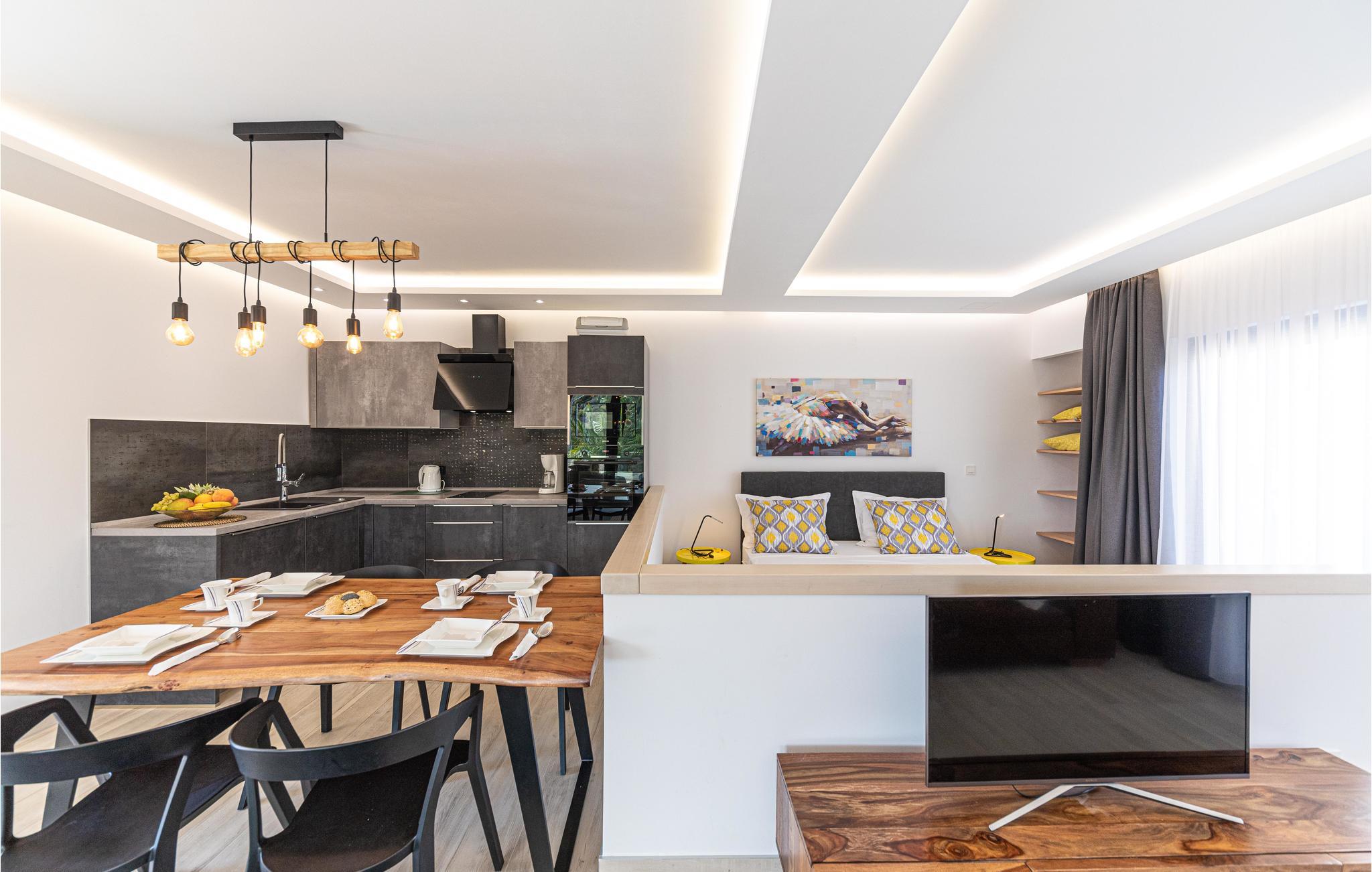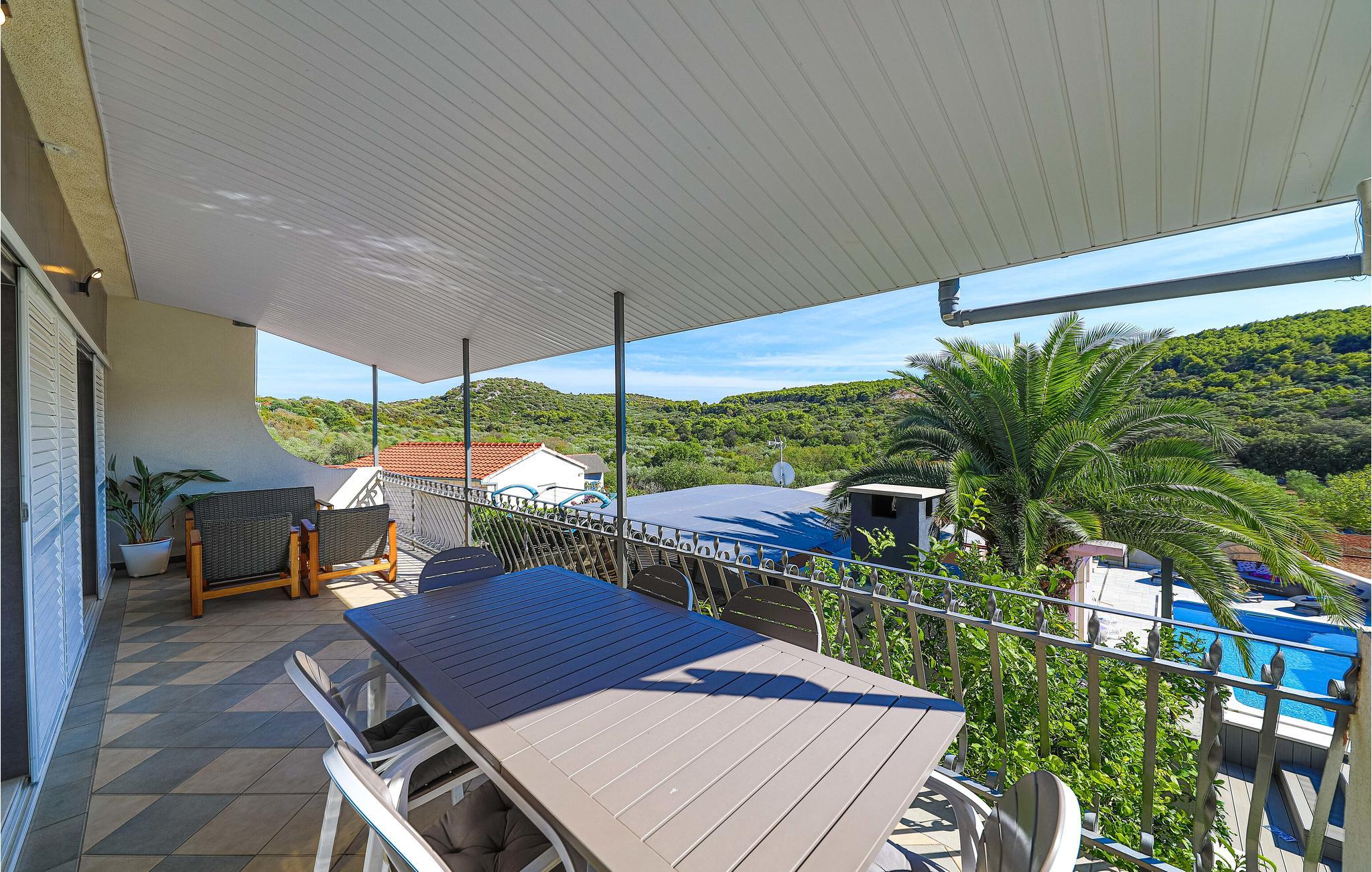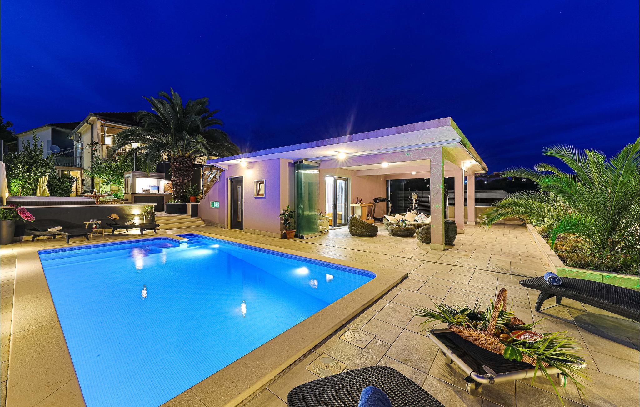 Dette hus fordeler sig på stueplan og første sal, forbundet med udendørs trapper. Huset ligger på en lille bakketop omgivet af pinjeskove og ikke langt fra kiesstranden, som er dejlig indbydende, også for børnefamilier. Vil I bade under helt private former, så kan det sagtens lade sig gøre i husets egen pool og fra 2018 i whirlpoolen lige ved siden af. Omgivelserne er ugenerte og rolige, her bliver I kun vækket af fuglenes glade kvidren. Her kan I holde en uforglemmelig dejlig ferie som I sent vil glemme. Til feriehuset er der pool og fitnessrum og en lejlighed ved siden af der indeholder soveværelse, badeværelse, stue og køkken.