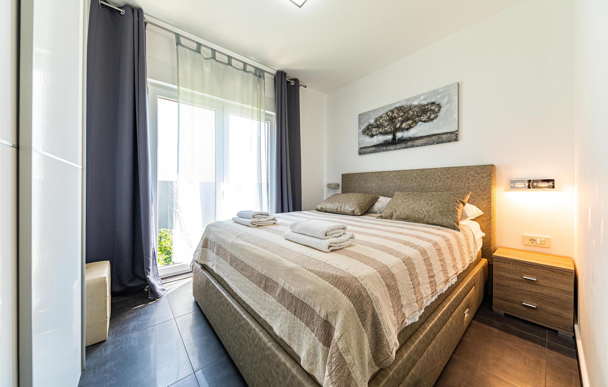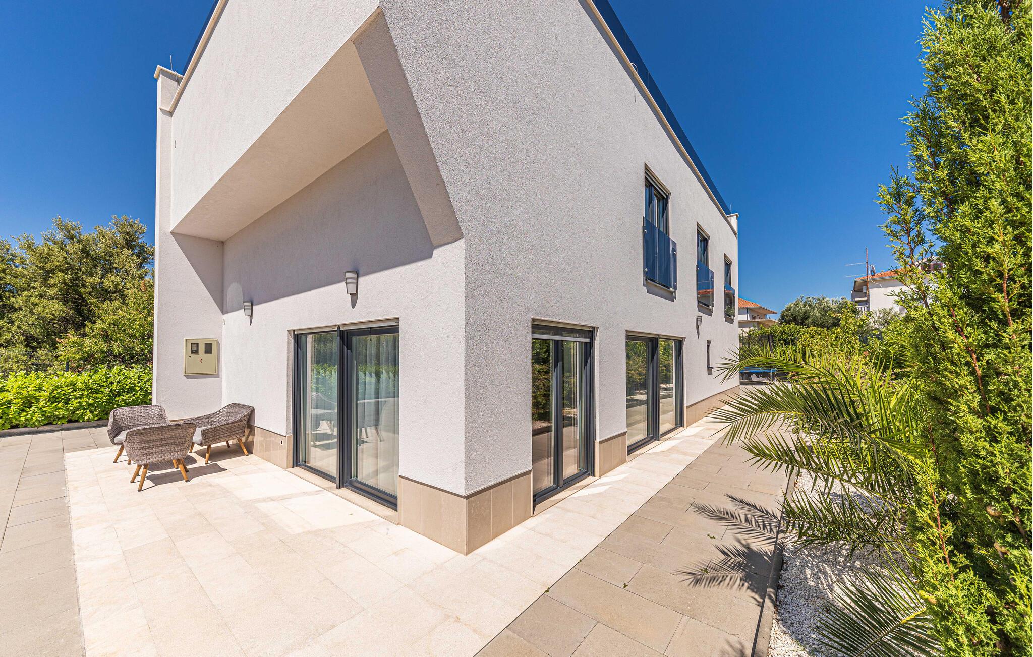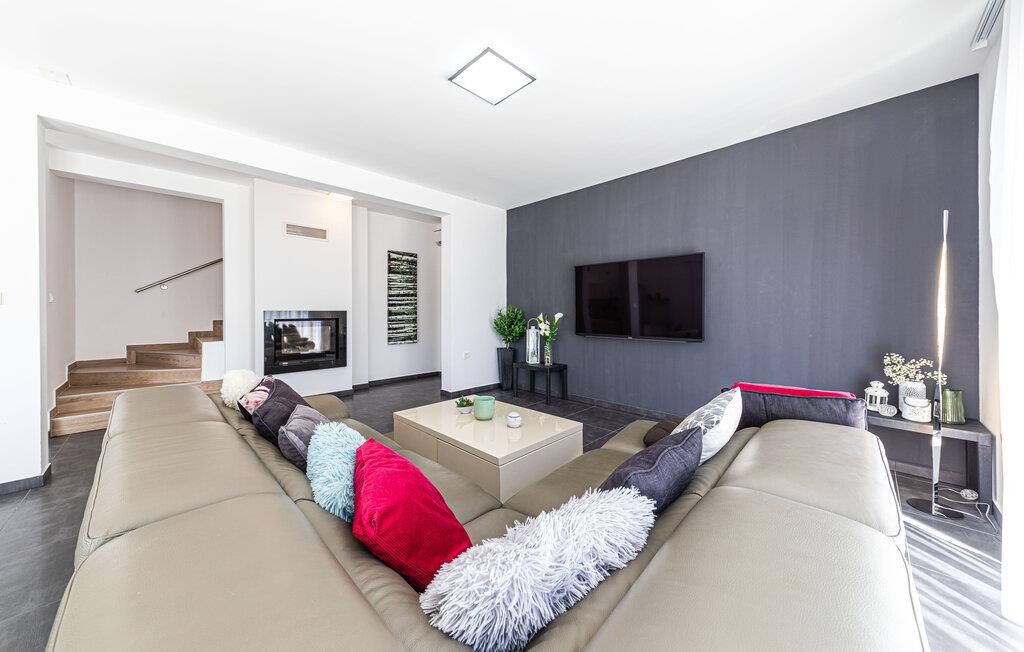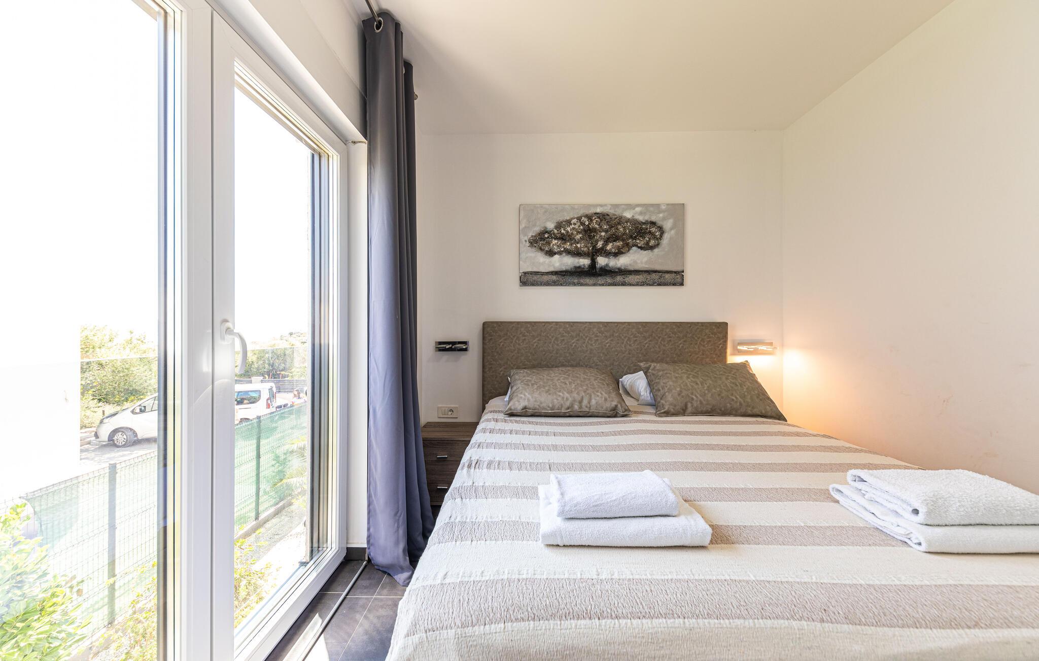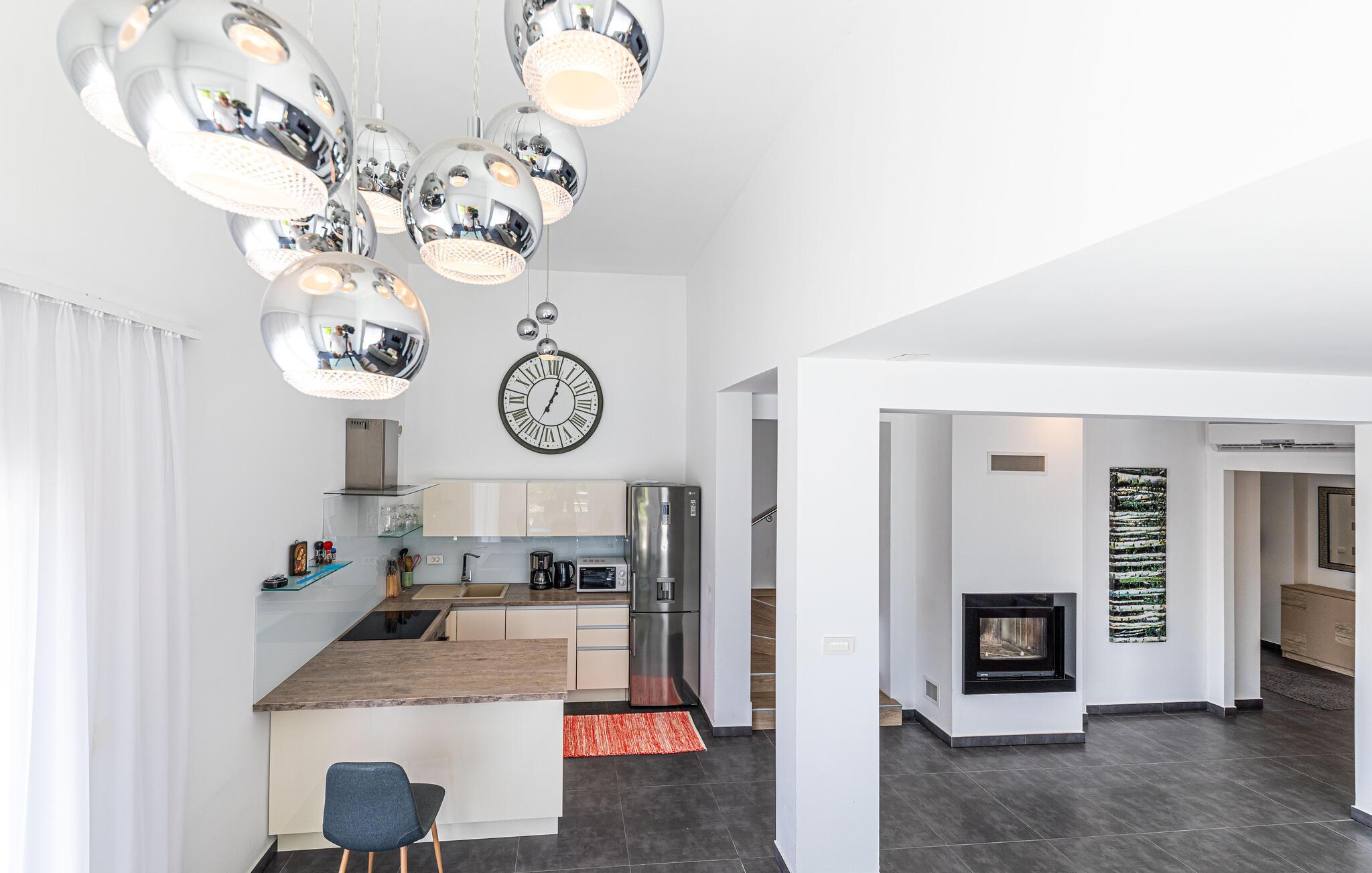 Beliggende i et malerisk landskab og kun få skridt fra stranden, tilbyder denne moderne og komfortable villa de perfekte rammer til at slappe af med venner eller familie og lægge hverdagens verden langt bag sig. Tilbered middelhavsretter, find sammen til stilfulde måltider omkring spisebordet og nyd hyggelige spilleaftener i stuen, alt imens I nyder den behagelige atmosfære.