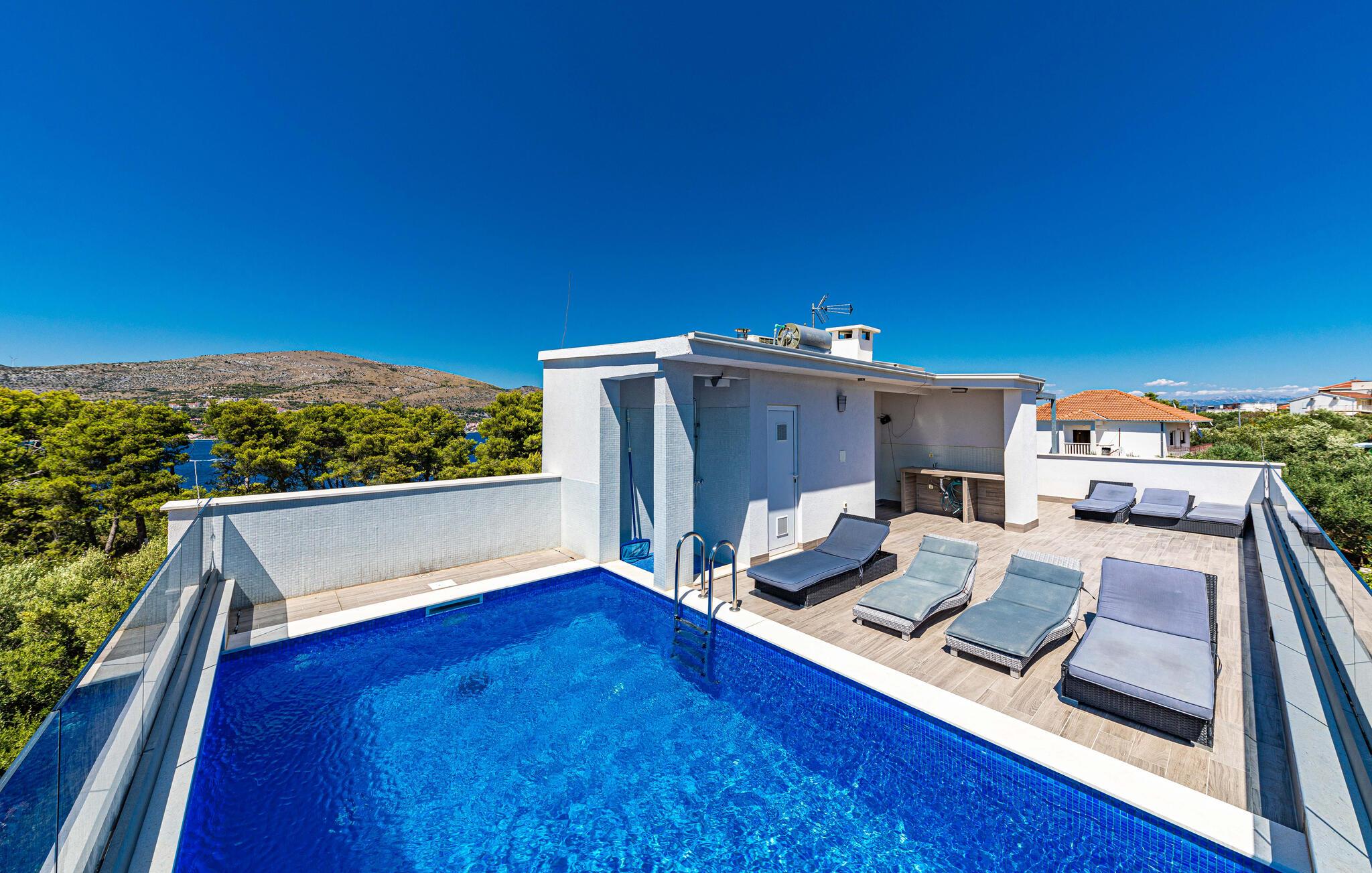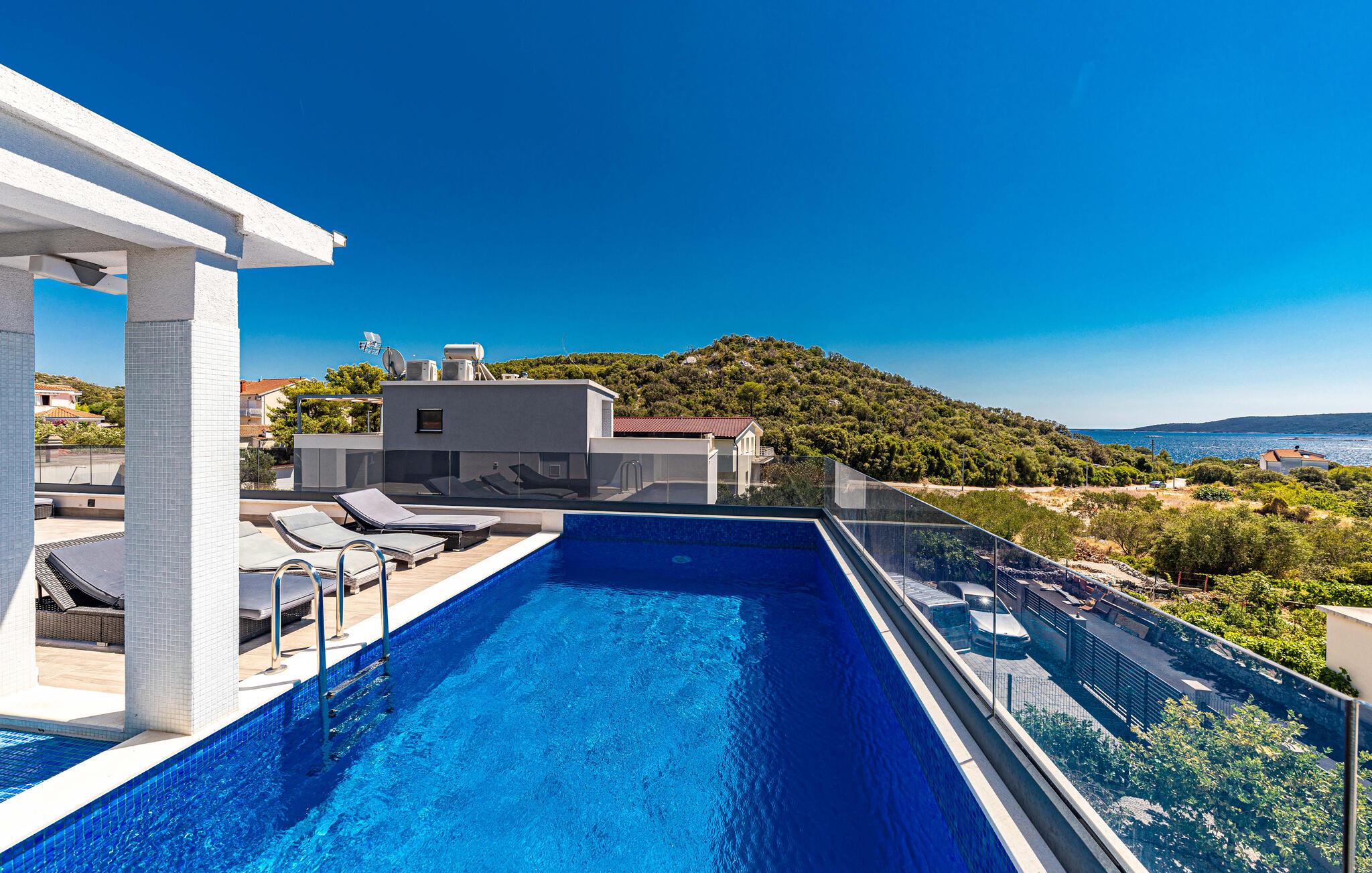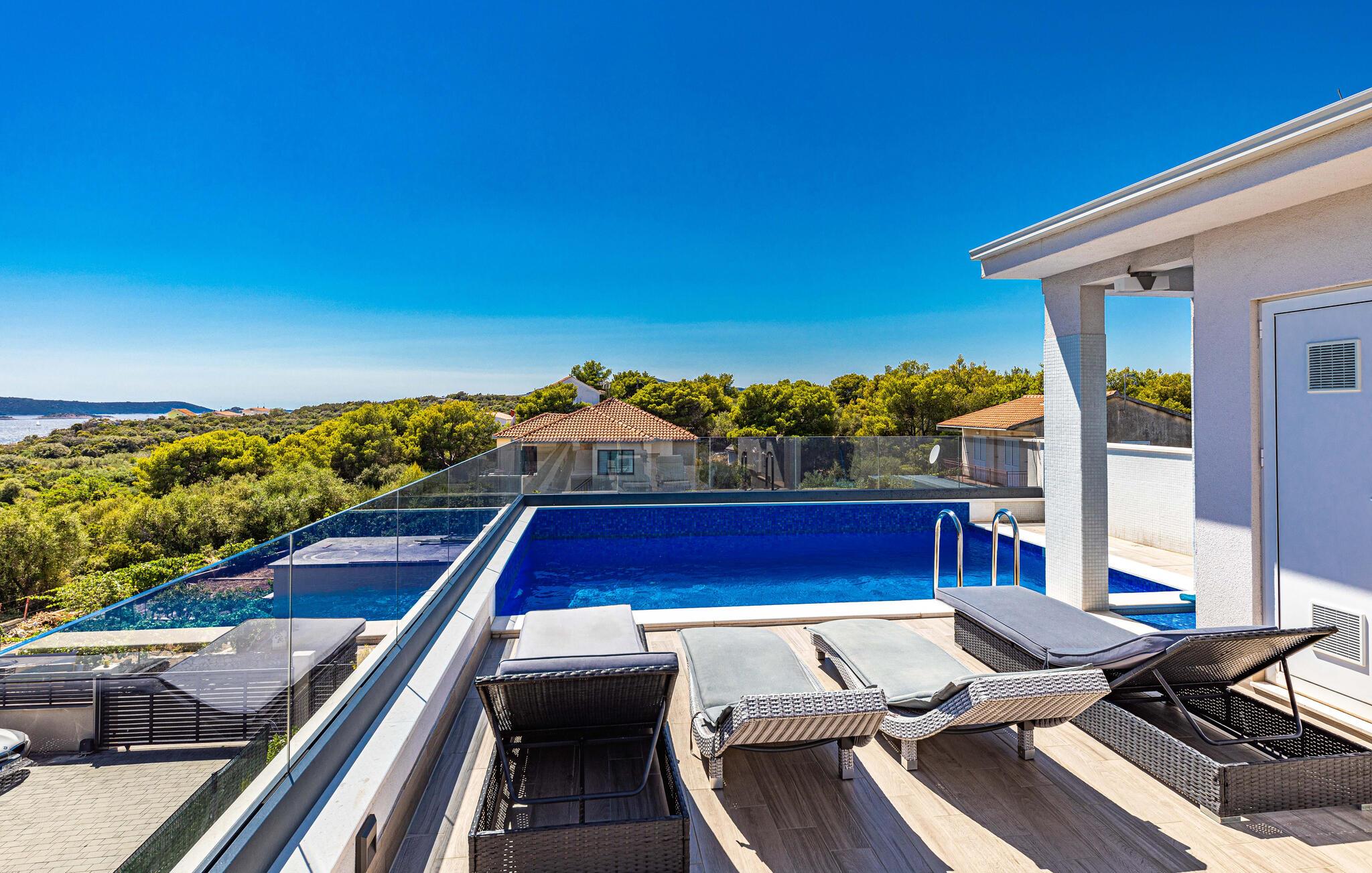 Forkæl jer selv med en uforglemmelig ferie i dette rummelige feriehus med pool og havudsigt.