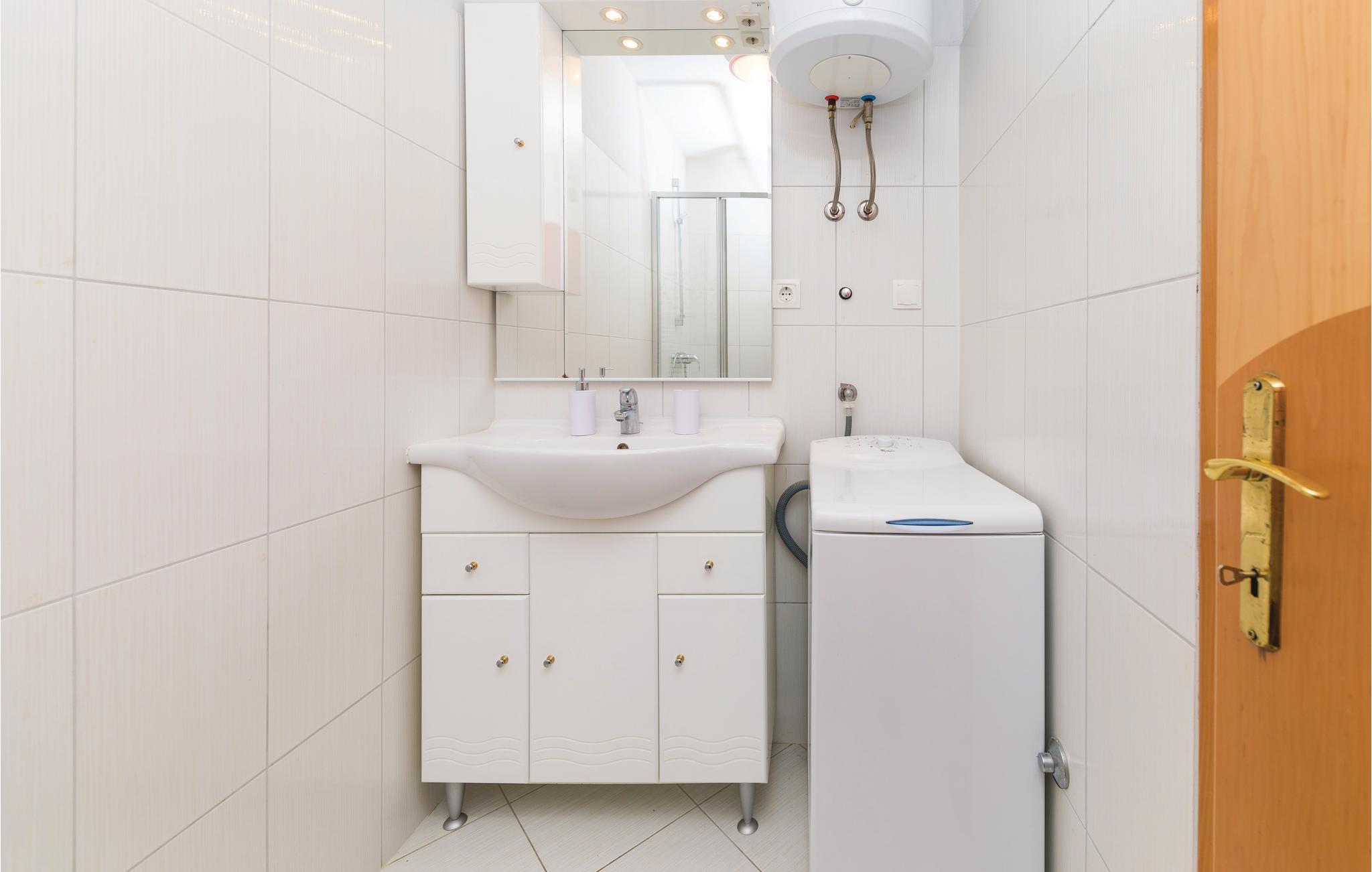 Denne smagfuldt indrettede ferielejlighed ligger i en ejendom i Okrug Gornji på øen Ciovo. Lejligheden ligger på første sal og har en balkon med betagende smuk havudsigt. Her er der oplagt at nyde dagens første kop kaffe og mærke hvordan solen langsomt begynder at varme. Lejligheden er ideel til alle, der gerne vi bo tæt på havet i ferien, da kiesstranden ligger under 100 m væk. Der er broforbindelse til Trogir på fastlandet, hvis historiske gamle bydel er med på UNESCOs verdensarvsliste, som også er rig på mange former for underholdning i løbet af sommeren. Besøg også Split, Dalmatiens metropol, med utallige seværdigheder, fx piratbyen Omiš og feriebyen Šibenik.