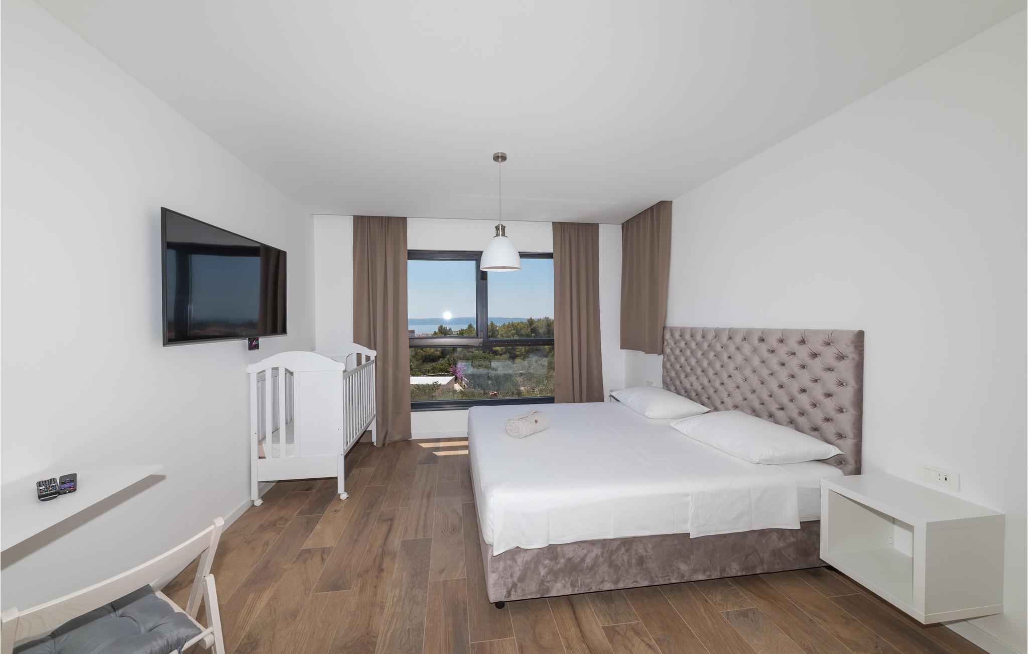 Huset er komfortabelt udstyret med alt, hvad I behøver til en ubekymret ferie, og her er også fitnessudstyr, så I kan holde træningen ved lige, mens I holder fri. Interiøret er lyst og moderne, og der er plads til op mod 10 personer, fordelt på fem soveværelser og fem badeværelser. Aircondition sikrer behagelige temperaturer på varme sommerdage.