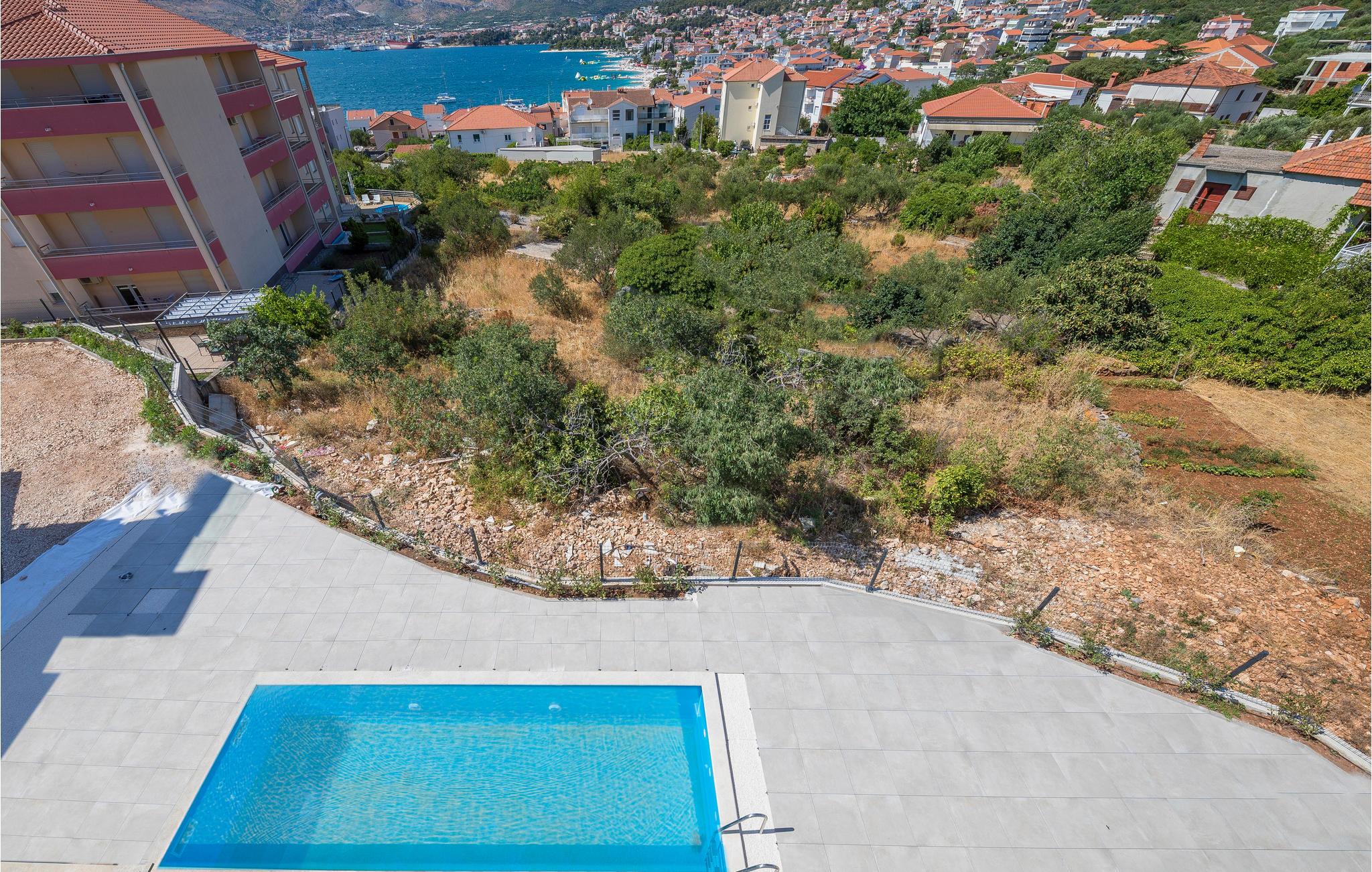 Lækker lejlighed med fælles pool og panoramaudsigt over havet.