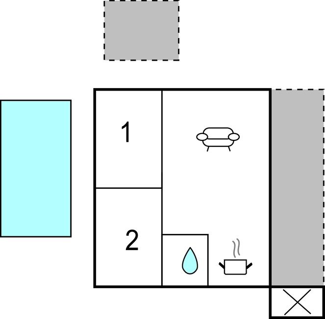 Opholdsstue/køkken - 1 Soveplads. (Sofa, madras eller lignende).