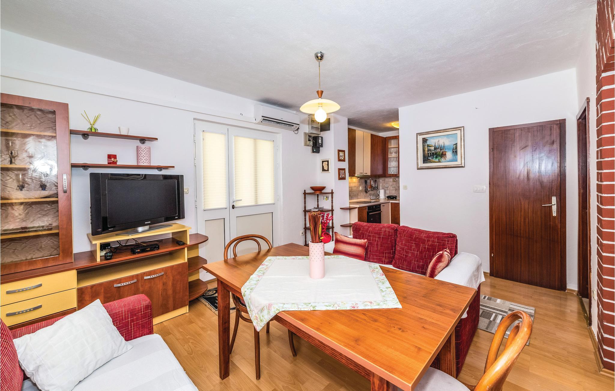 Denne hjemlige og familievenlige ferielejlighed på øen Ciovo tilbyder jer alt, hvad I skal bruge til en afslappende ferie. Slap af på balkonen eller lad børnene lege i den fælles have. Poolen lægger op til at tilbringe forfriskende timer og er ideel til solbadning. På den indhegnede grund er der også et haveskur med grill og sommerkøkken, perfekt til at spise sammen udendørs. En børnevenlig stenstrand og det krystalklare hav venter jer kun en kort gåtur væk.