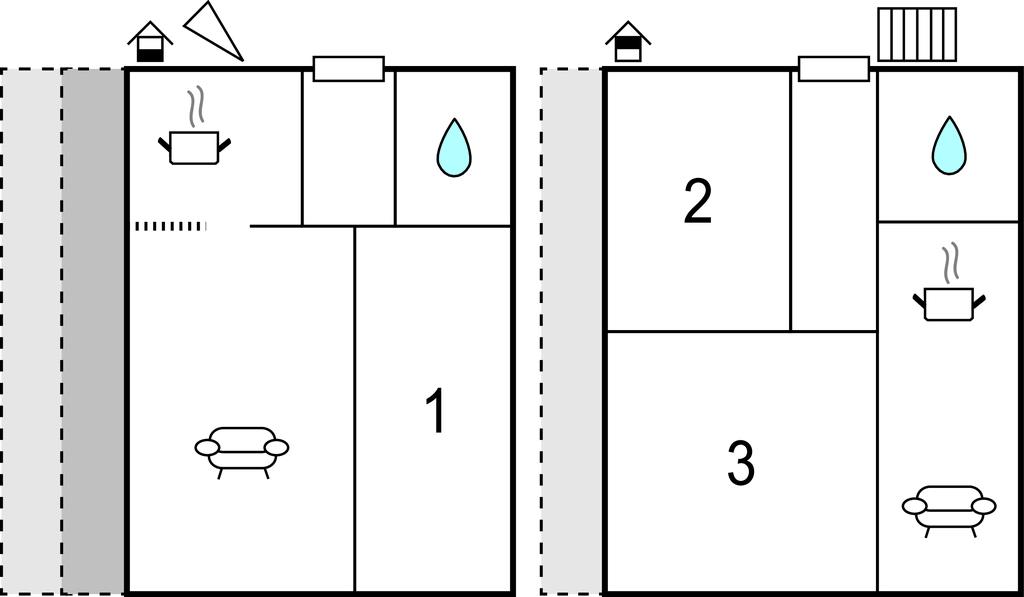 Soveværelse (nr. 1) - 1 Soveplads. (Enkeltseng(e)). 2 Sovepladser. (Dobbeltseng(e)).