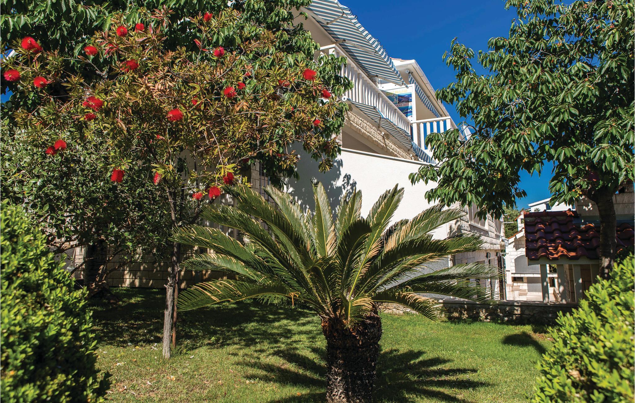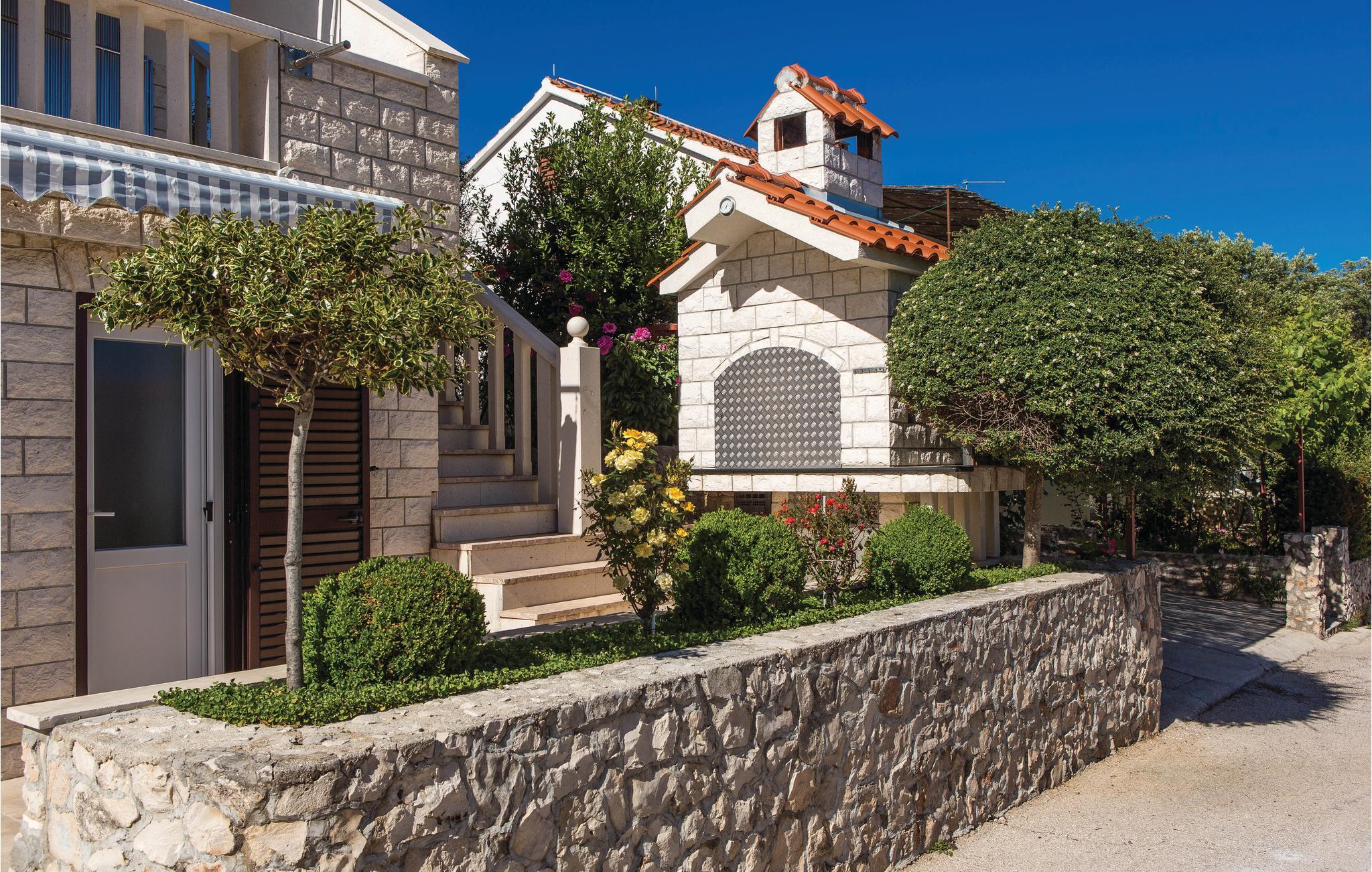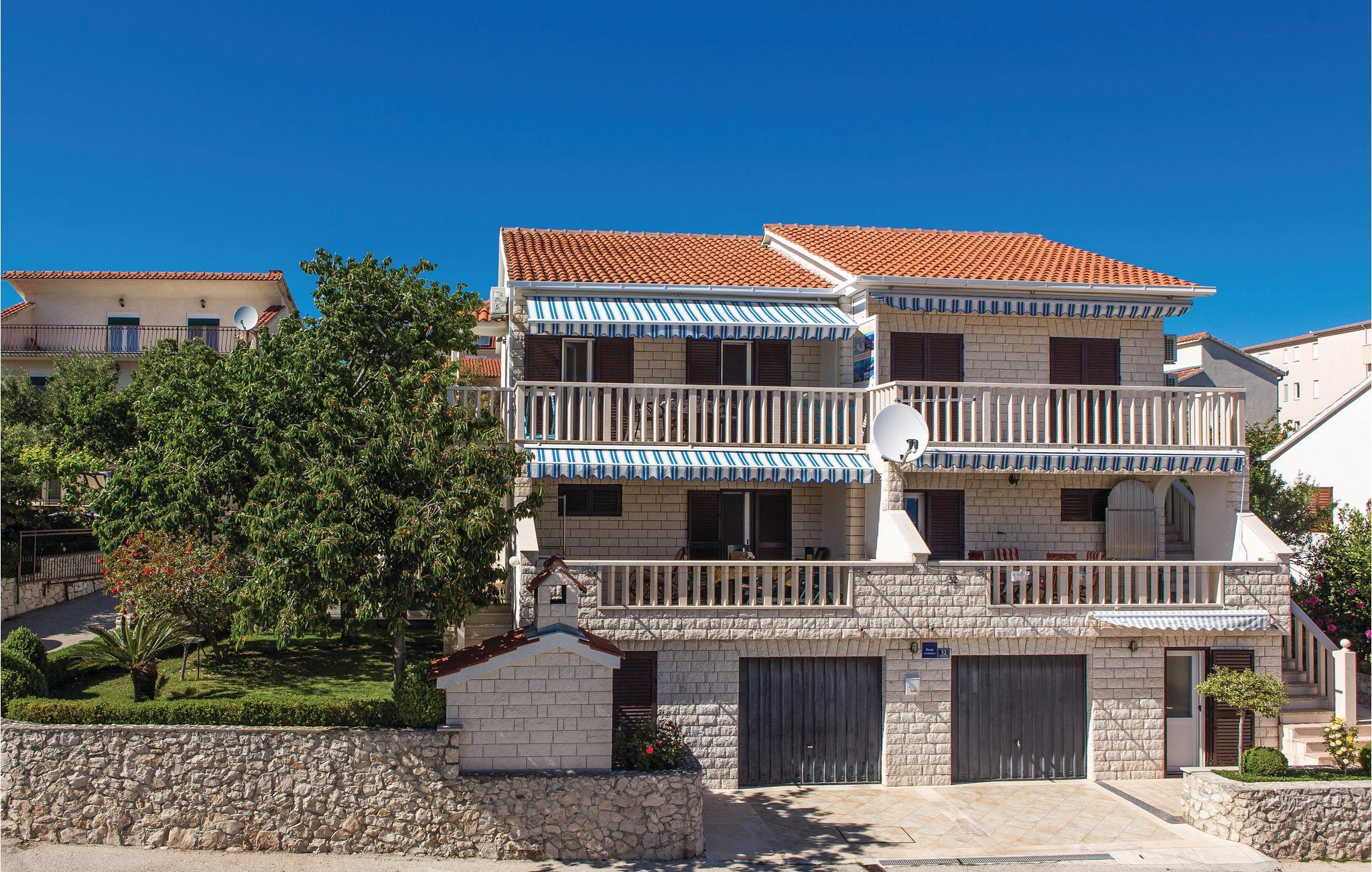 Hold jeres behagelige ferie i dette praktisk og hyggeligt indrettede dobbelthus. Huset består af to boligenheder forbundet af en udendørs trappe. Fra terrassen i stueplan er der havkig, men fra terrassen på øverste etage er der panorama udsigt over havet. Feriedomicilet ligger i nærheden af stranden, i anden række mod havet, på sydsiden af øen Ciovo og alligevel tæt på byen Trogir, hvor der er mange former for underholdning, kultur og mulighed for at dyrke sport, der vil give jer en afvekslingsrig ferie.