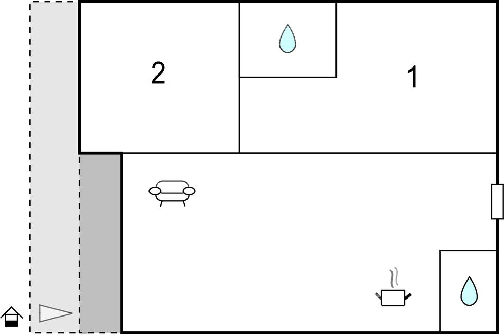 Opholdsstue/køkken 32m2 - 1 Soveplads. (Sofa, madras eller lignende).