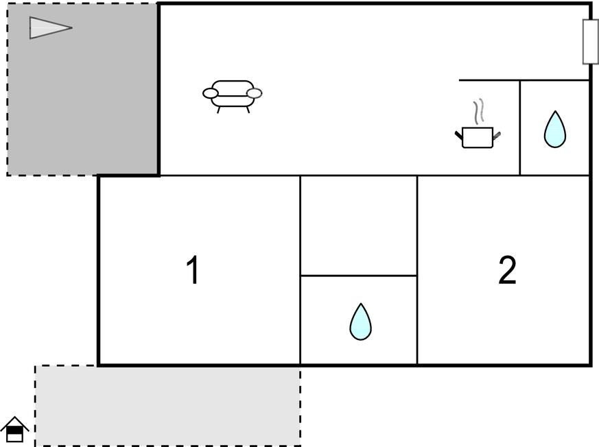 Opholdsstue/køkken 32m2 - 1 Soveplads. (Sofa, madras eller lignende).