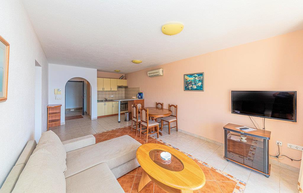 Denne lejlighed lokker med en fantastisk beliggenhed lige ved stranden. Med sine gode værelser, hvis lyse venlige farver giver et tiltalende udtryk, indbyder lejligheden til en afslappende pause med gode muligheder for aktiviteter. Tilbered en lækker morgenmad i køkkenet og nyd hyggelige aftener i sofaen. Start dagen med en kop kaffe på terrassen og lad blikket vandre ud over havet. I kan også afslutte dagen herude med kolde drinks. I morgen kan I gå en tur til klippekysten eller stranden og forfriske jer i det klare hav.