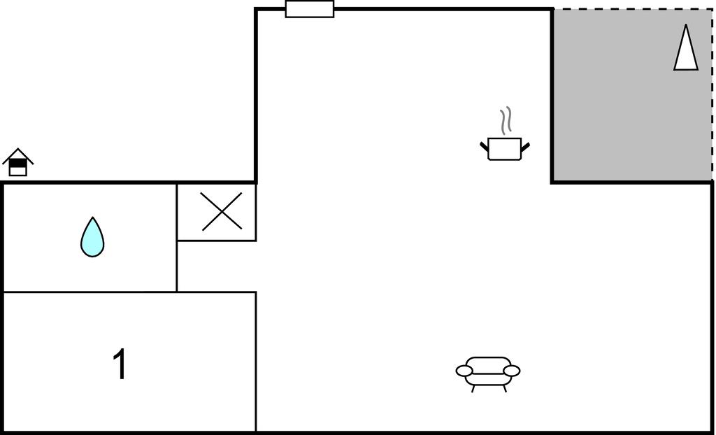 Opholdsstue/køkken 20m2 - 1 Soveplads. (Sofa, madras eller lignende).