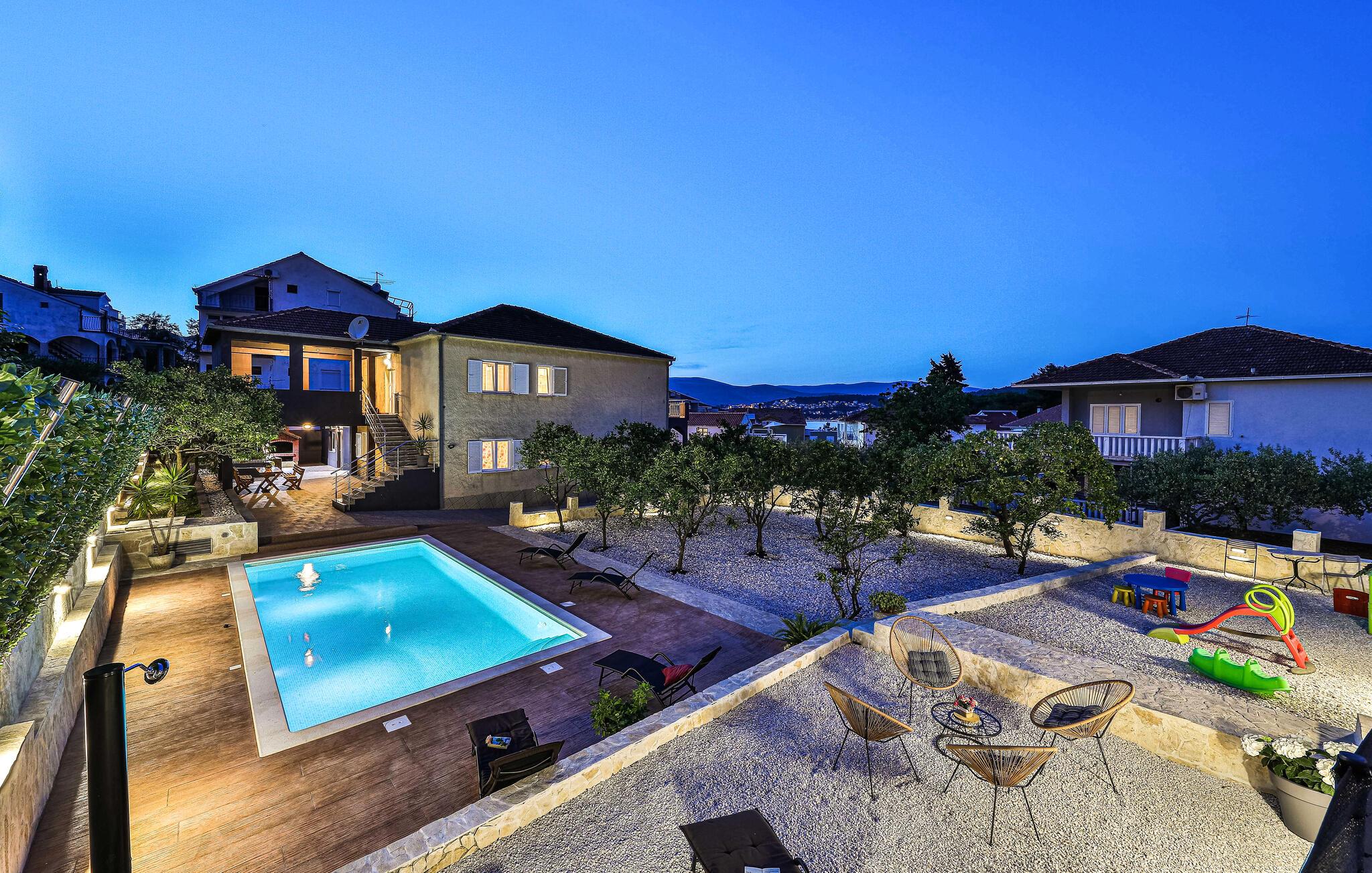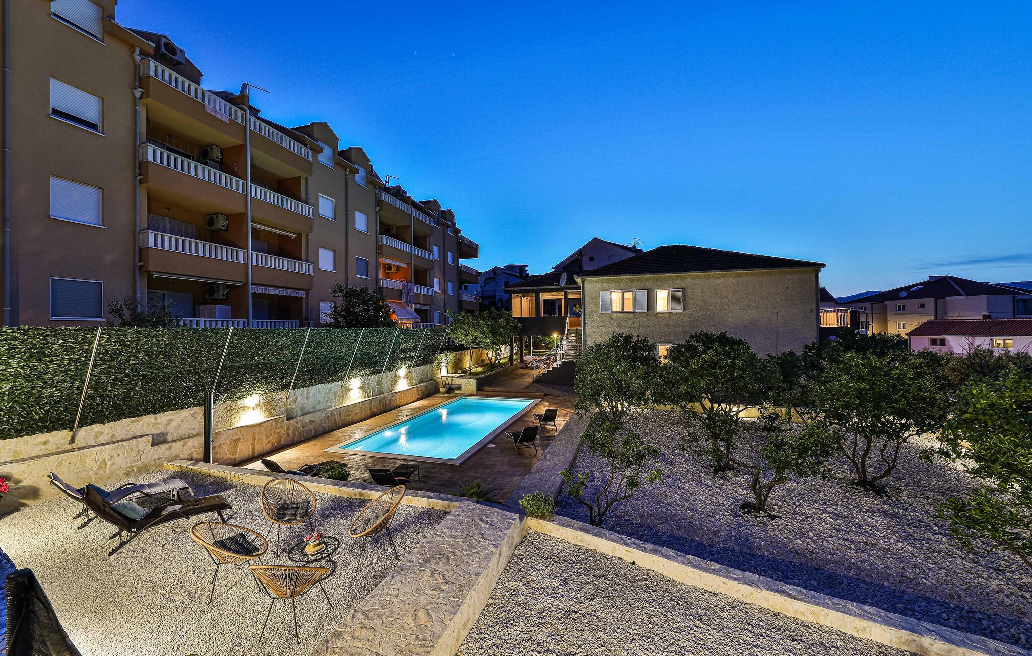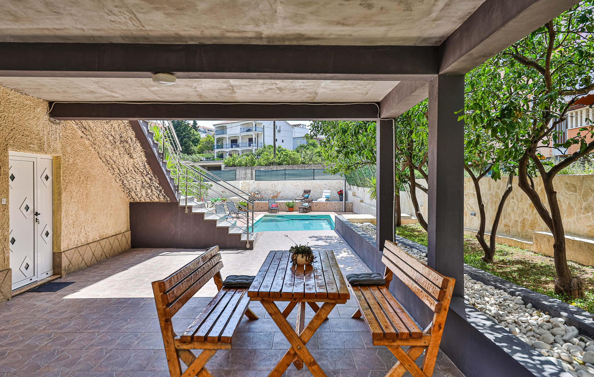 Tilbring afslappende timer udendørs, enten med en kop kaffe og en bog på en af ??terrasserne eller i poolen, som I deler med andre gæster. Tilbered en lækker middag på grillen.