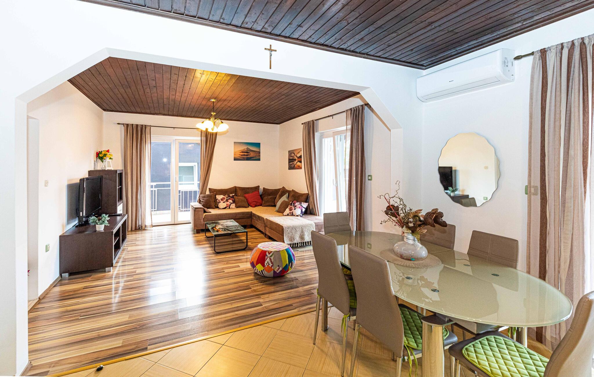 Denne komfortable lejlighed byder jer velkommen på en ideel beliggenhed, kun få skridt fra havet. Nyd smukke dage nær stranden, og brug de indbydende værelser med varme trægulve og -lofter som base for sjov på stranden og udforskning af området.