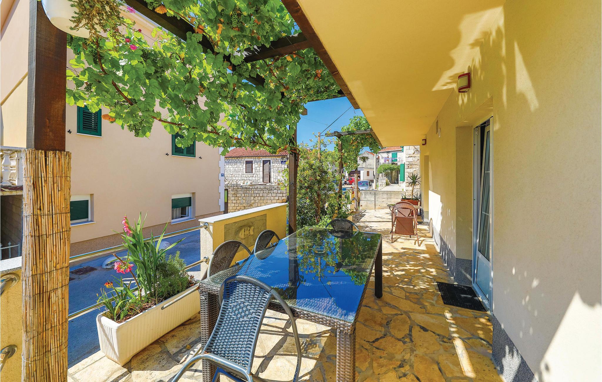 I et roligt kvarter i det gamle fiskerleje Slatine, i attraktive omgivelser på øen Ciovo, ligger dette skønne feriehus med pool. Det er fordelt på første sal og stueplan, der er forbundet med ydre trapper. Svøm en bane eller to i poolen og slap af i solen bagefter med en god bog. Til huset hører cykler, som er fine at udforske området på. I kan også bade i havet, fra en af de nærliggende kiesstrande. Der er få kilometer til de historisk interessante byer: Split, Trogit og Soline. Da øen er forbundet med fastlandet med bro, er der nem adgang. Skønne strande, ro og en behageligt klima gør ferie i Slatine helt perfekt.