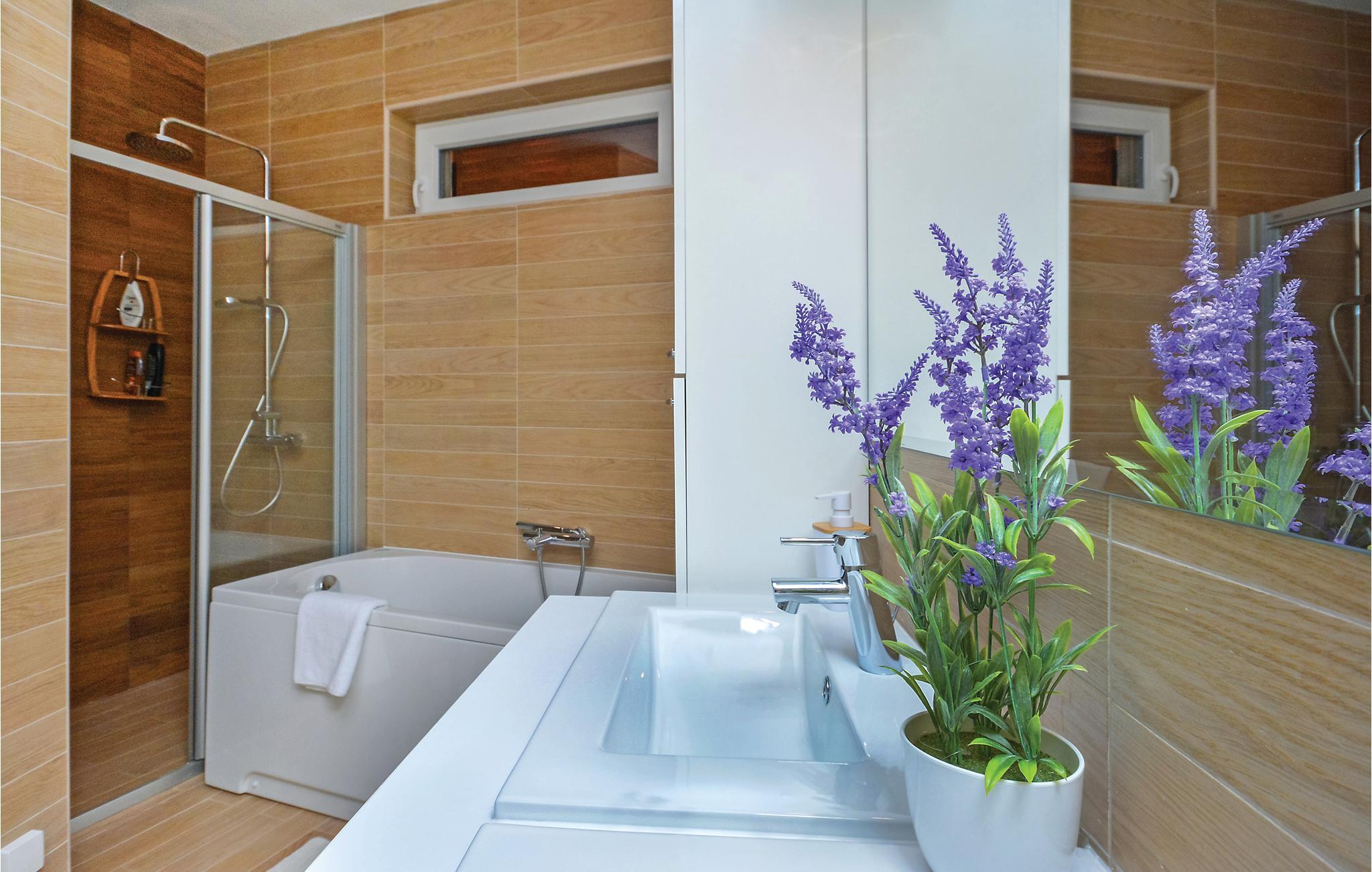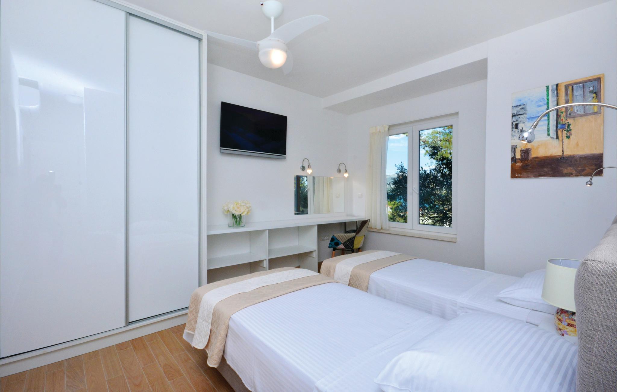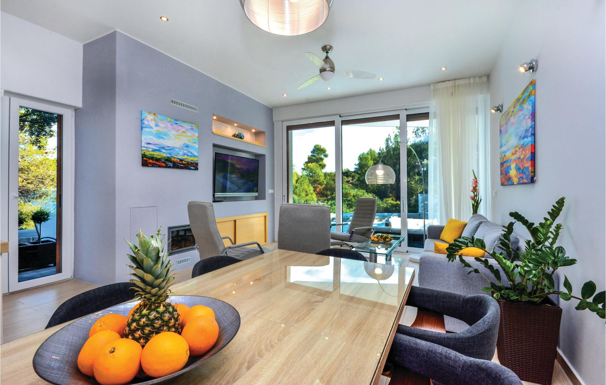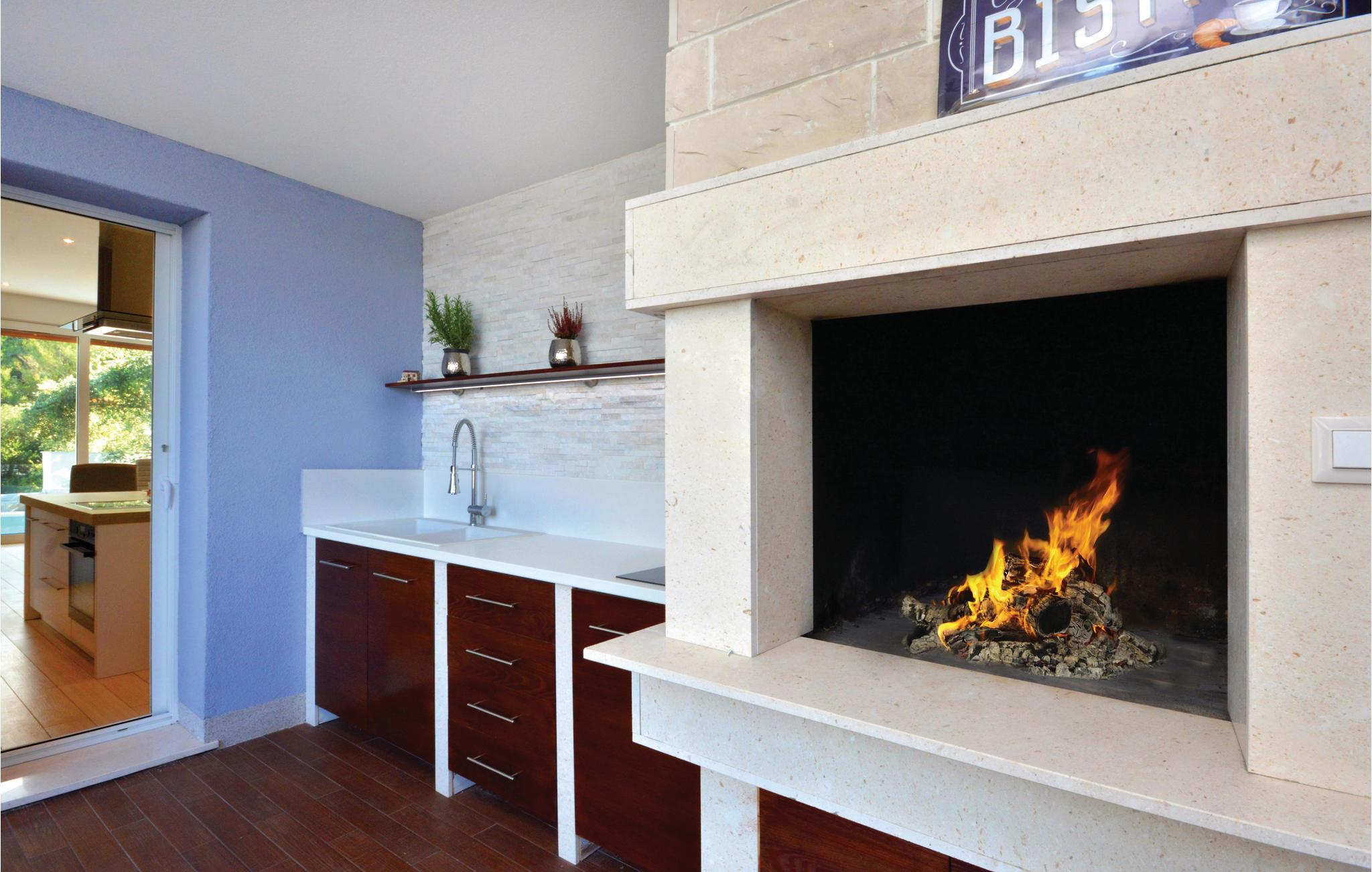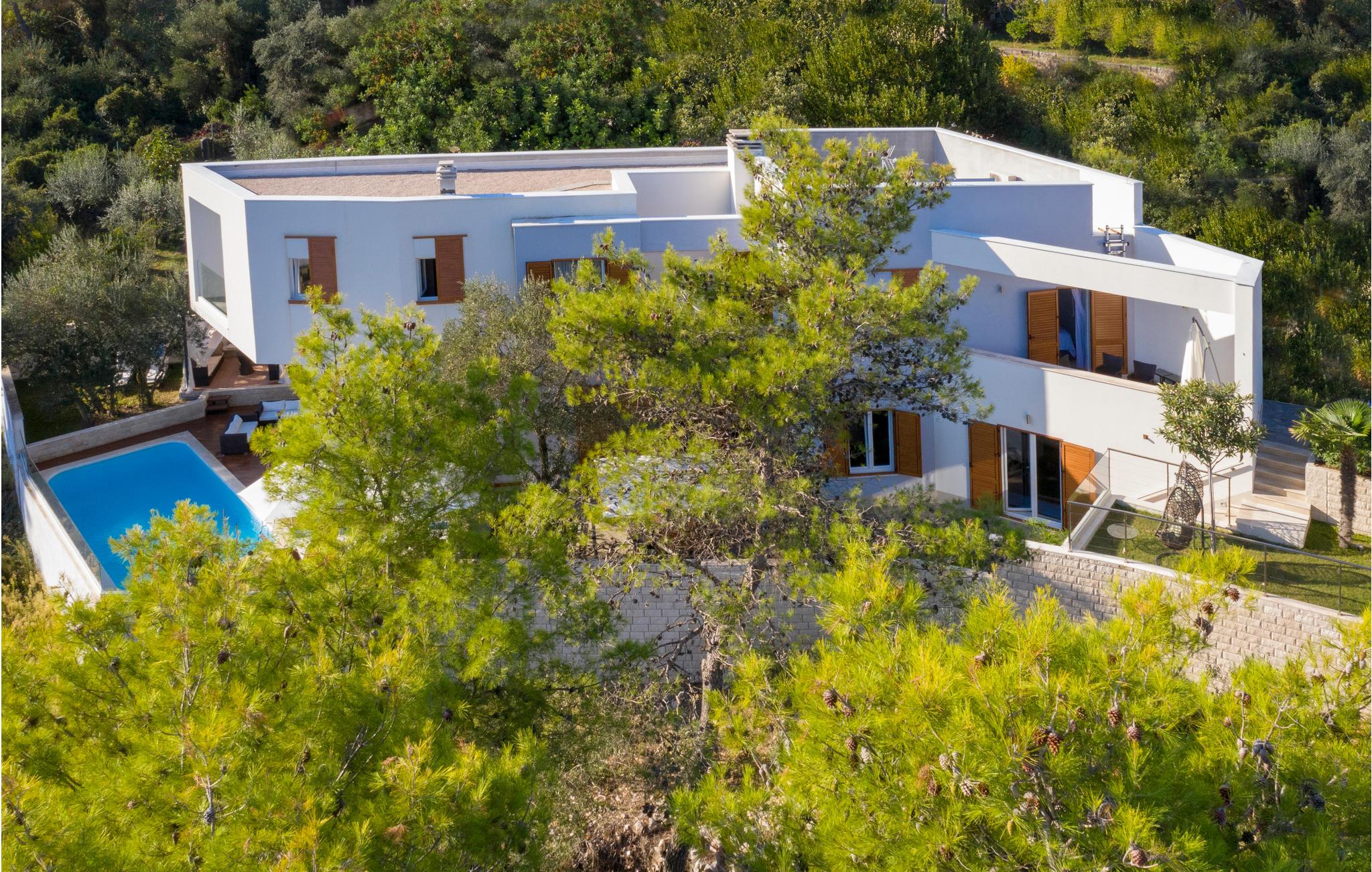 Dette stilfulde feriehus med pool ligger ved siden af en fyrreskov, kun ca. 100 m fra havet. I stueetagen er der: et rummeligt køkken, dagligstue med spiseområde og udgang til terrassen, sommerkøkken med grill, fritidsrum med lille bar og fitnessrum. På 1. sal er der fire soveværelser med bad en suite. Nyd den dejligt anlagte og fuldstændig inhegnede grund med herlig udsigt over landskabet og slap af på en af terrasserne. Opdag mange dejlige strande på øen og besøg den historiske by Trogir, der hører til UNESCOs verdenskulturarv og byder på underholdning og gastronomiske tilbud.