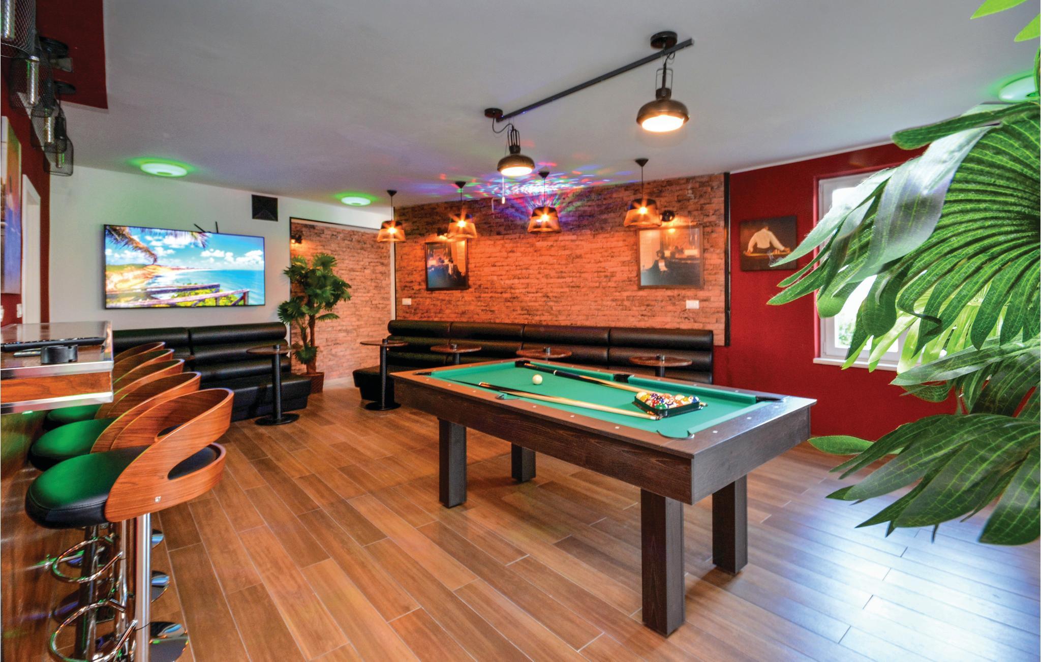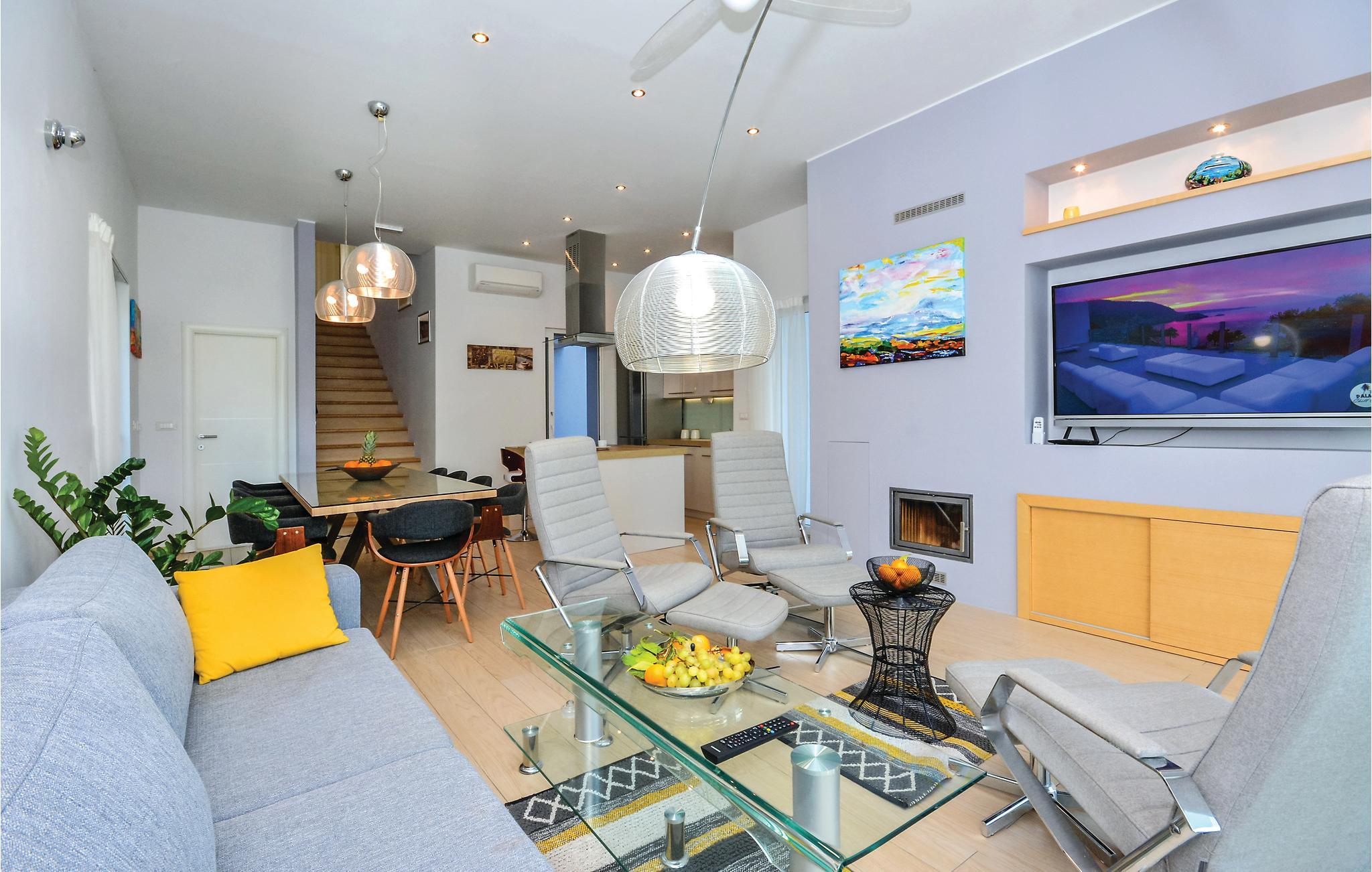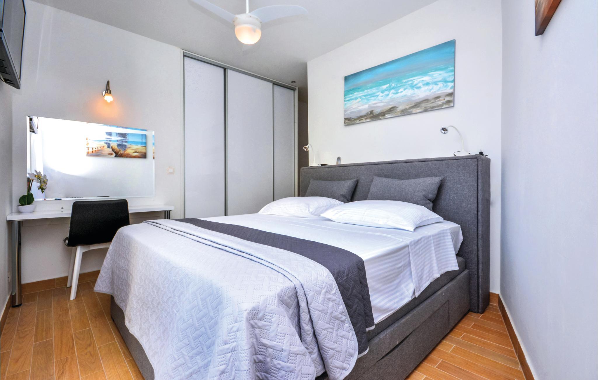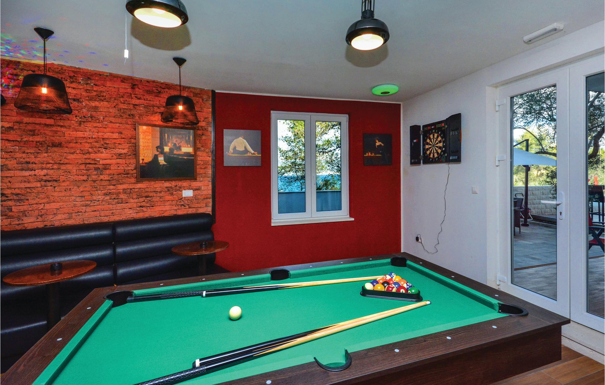 Dette stilfulde feriehus med pool ligger ved siden af en fyrreskov, kun ca. 100 m fra havet. I stueetagen er der: et rummeligt køkken, dagligstue med spiseområde og udgang til terrassen, sommerkøkken med grill, fritidsrum med lille bar og fitnessrum. På 1. sal er der fire soveværelser med bad en suite. Nyd den dejligt anlagte og fuldstændig inhegnede grund med herlig udsigt over landskabet og slap af på en af terrasserne. Opdag mange dejlige strande på øen og besøg den historiske by Trogir, der hører til UNESCOs verdenskulturarv og byder på underholdning og gastronomiske tilbud.