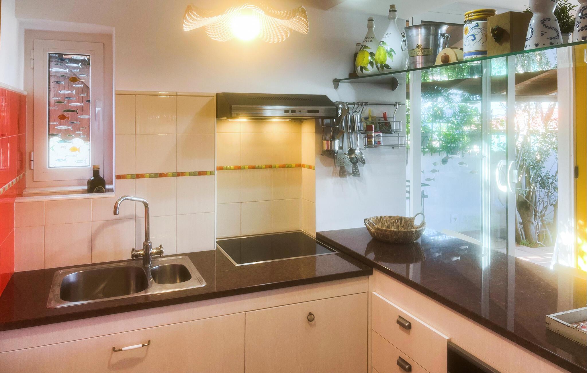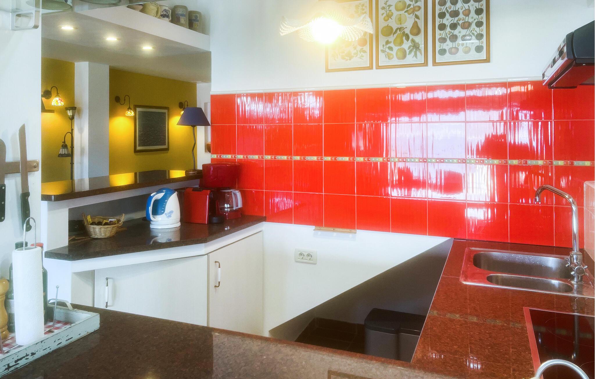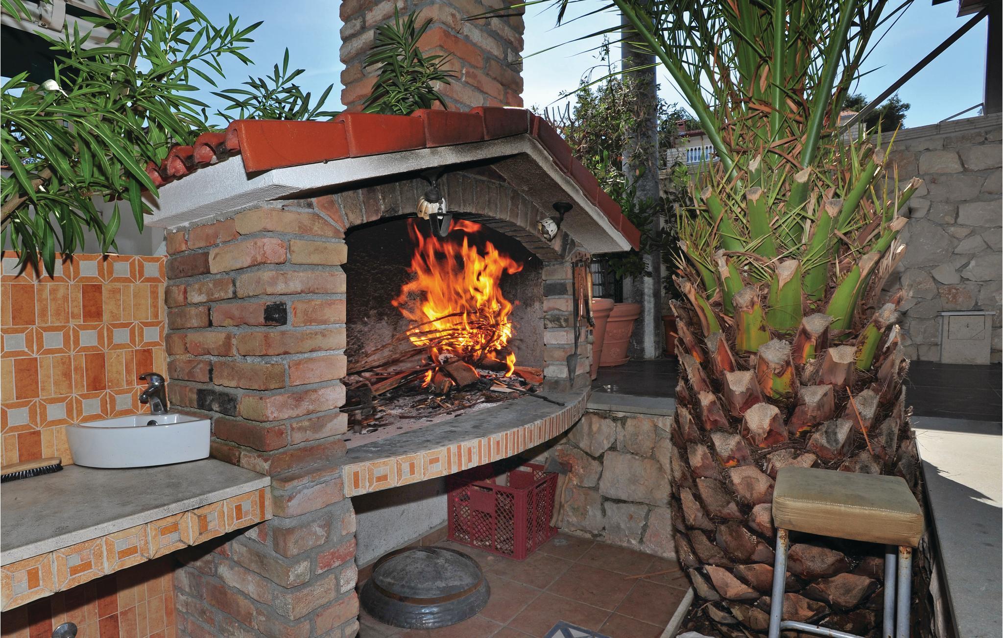 Der er et udendørs boblebad til 6 personer og et sommerkøkken med grill.