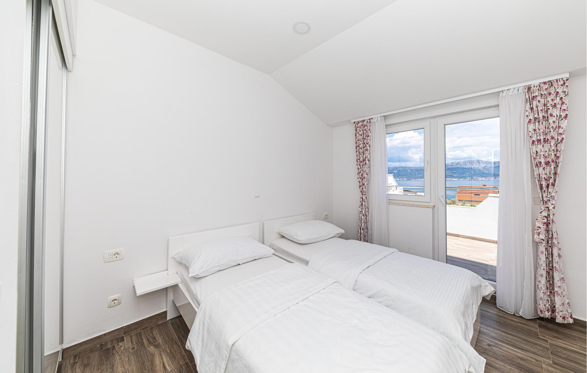 Beliggenheden er virkelig dejlig. I bor kun få meter fra stranden og halvvejs mellem Trogir, som I kan køre til, og Split, som I kan sejle til. Øen Ciovo er virkelig charmerende med hyggelige små byer og lækre strande, hvor I kan lade jer glide ned i det glasklare vand.